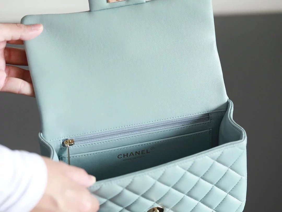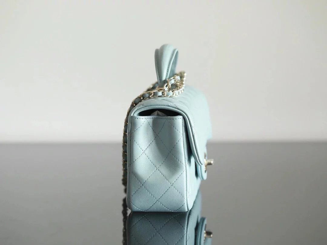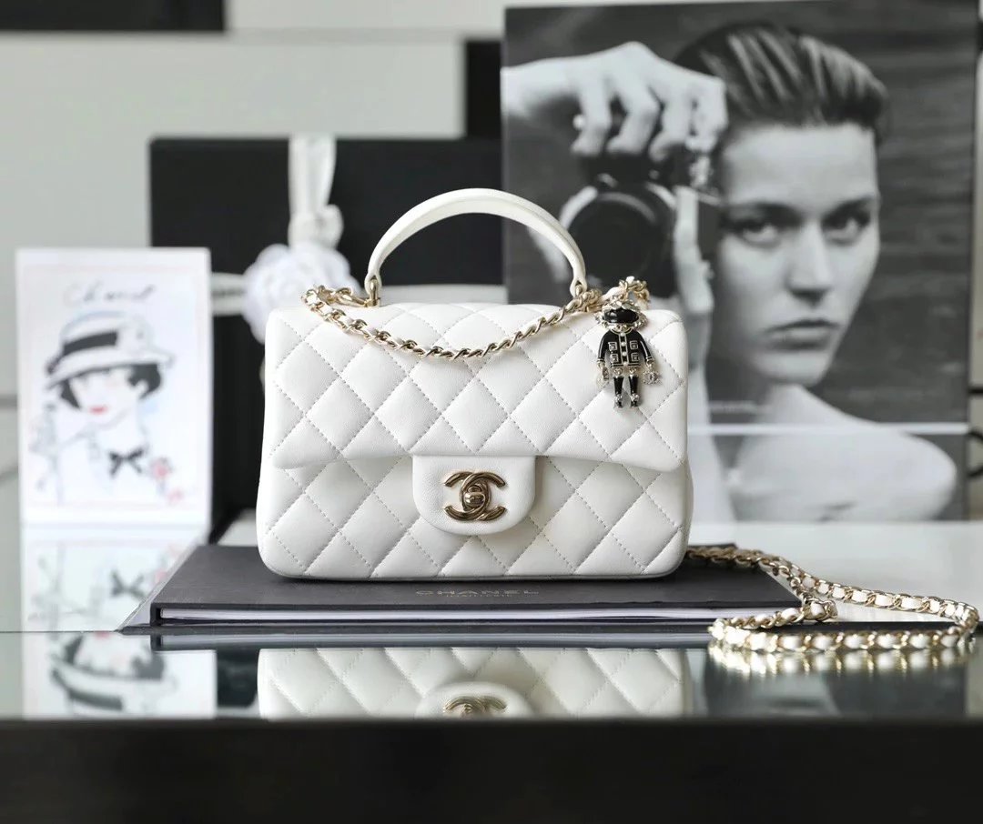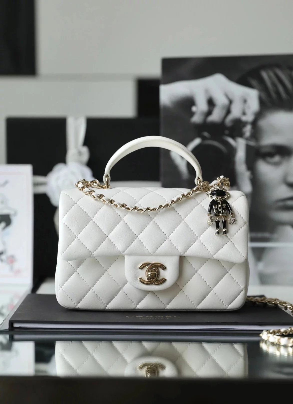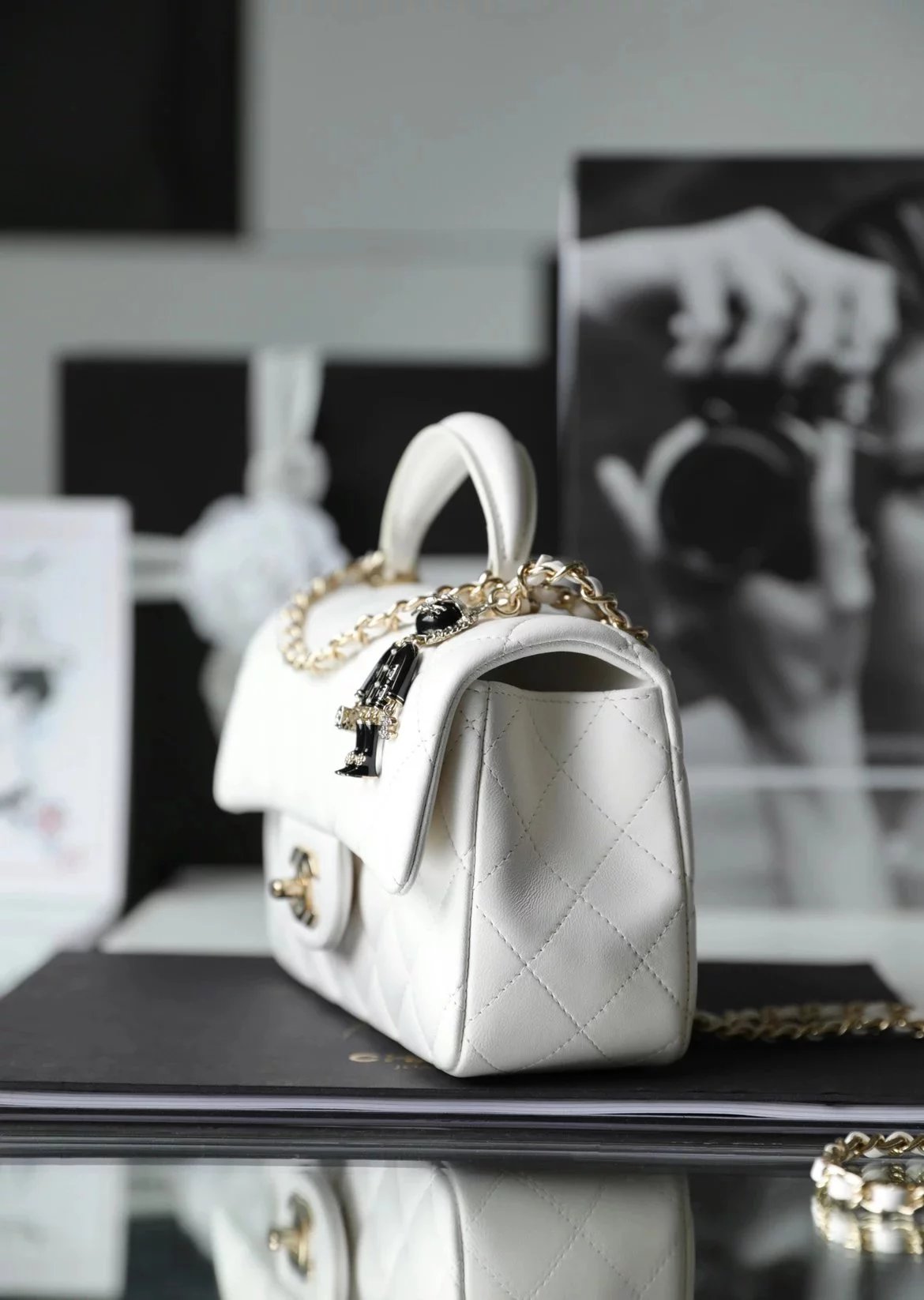 香奈-儿 Classic Flap CF 22S 狮子吊饰手柄款 小羊皮 口盖包单肩包斜挎包手提包 迷你 女款 黑色(HH)