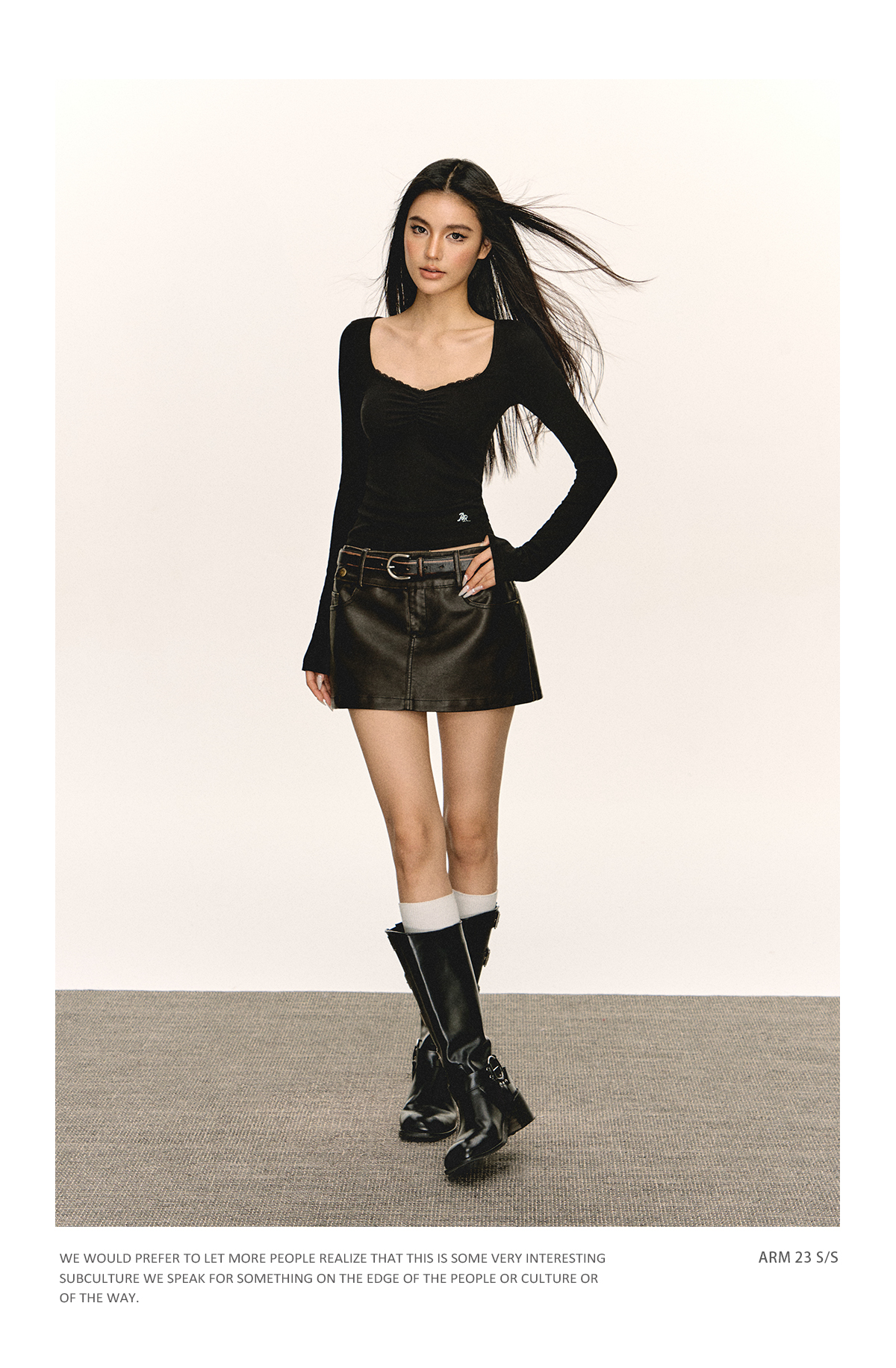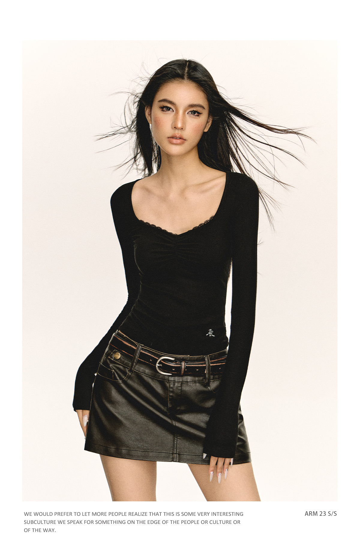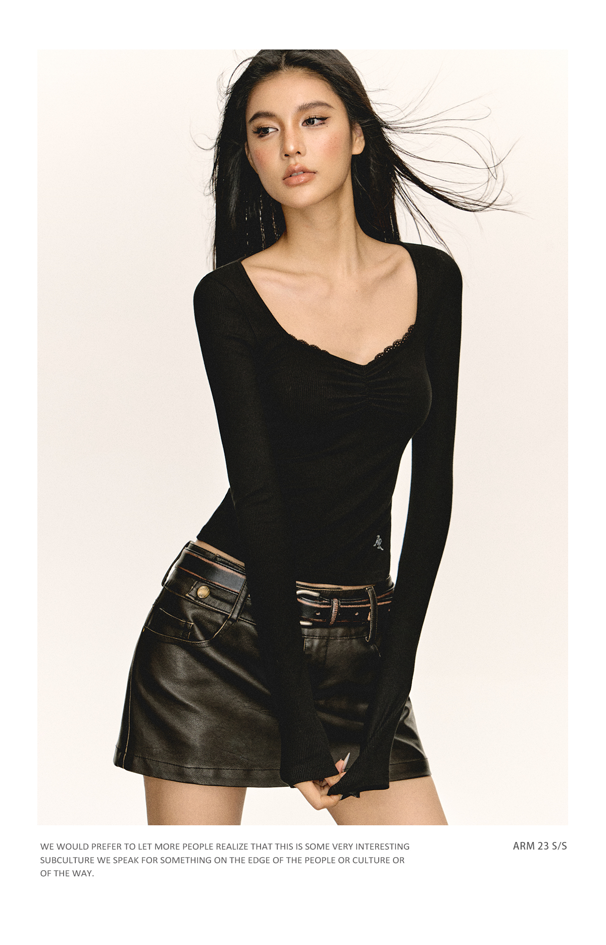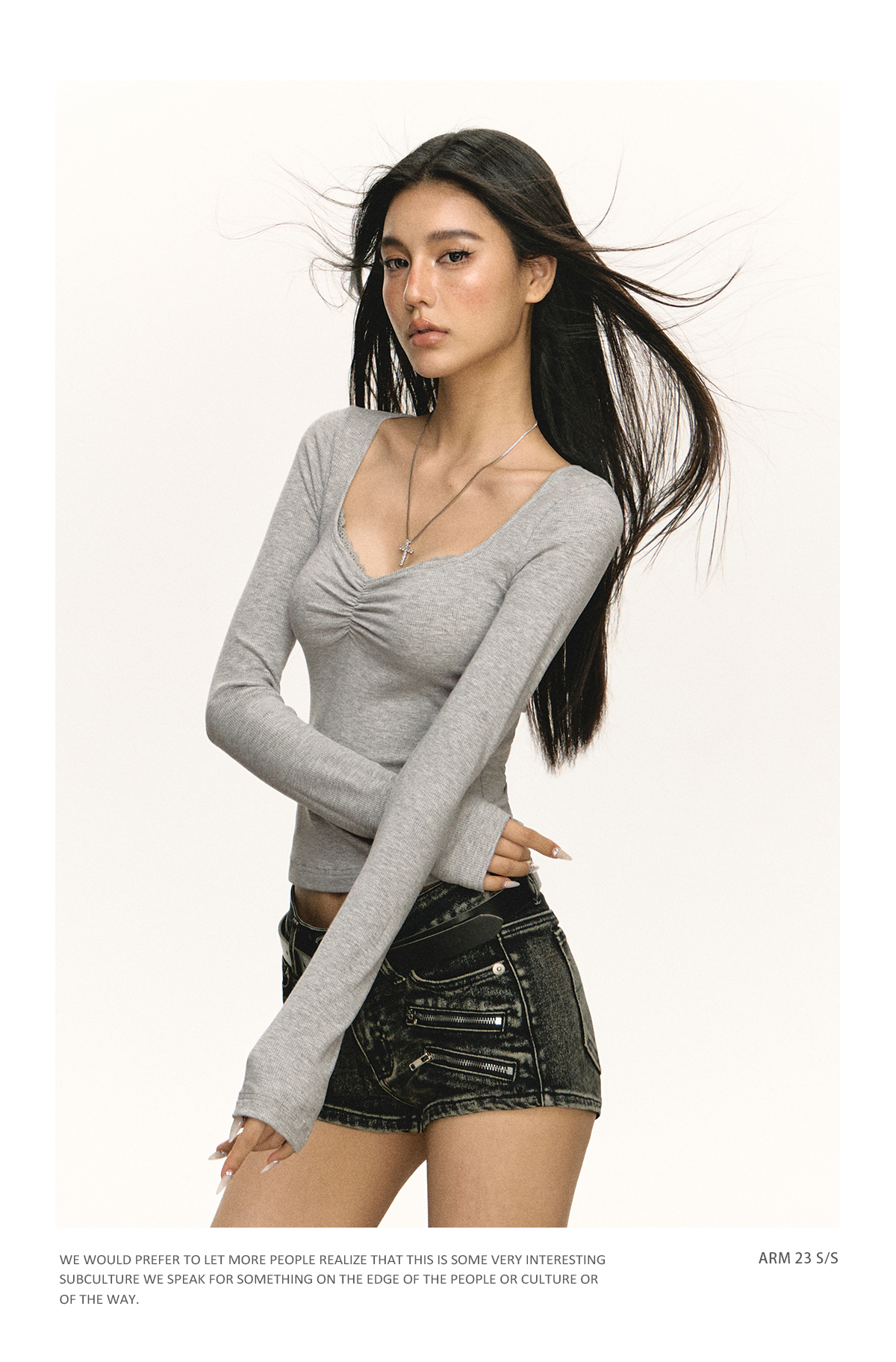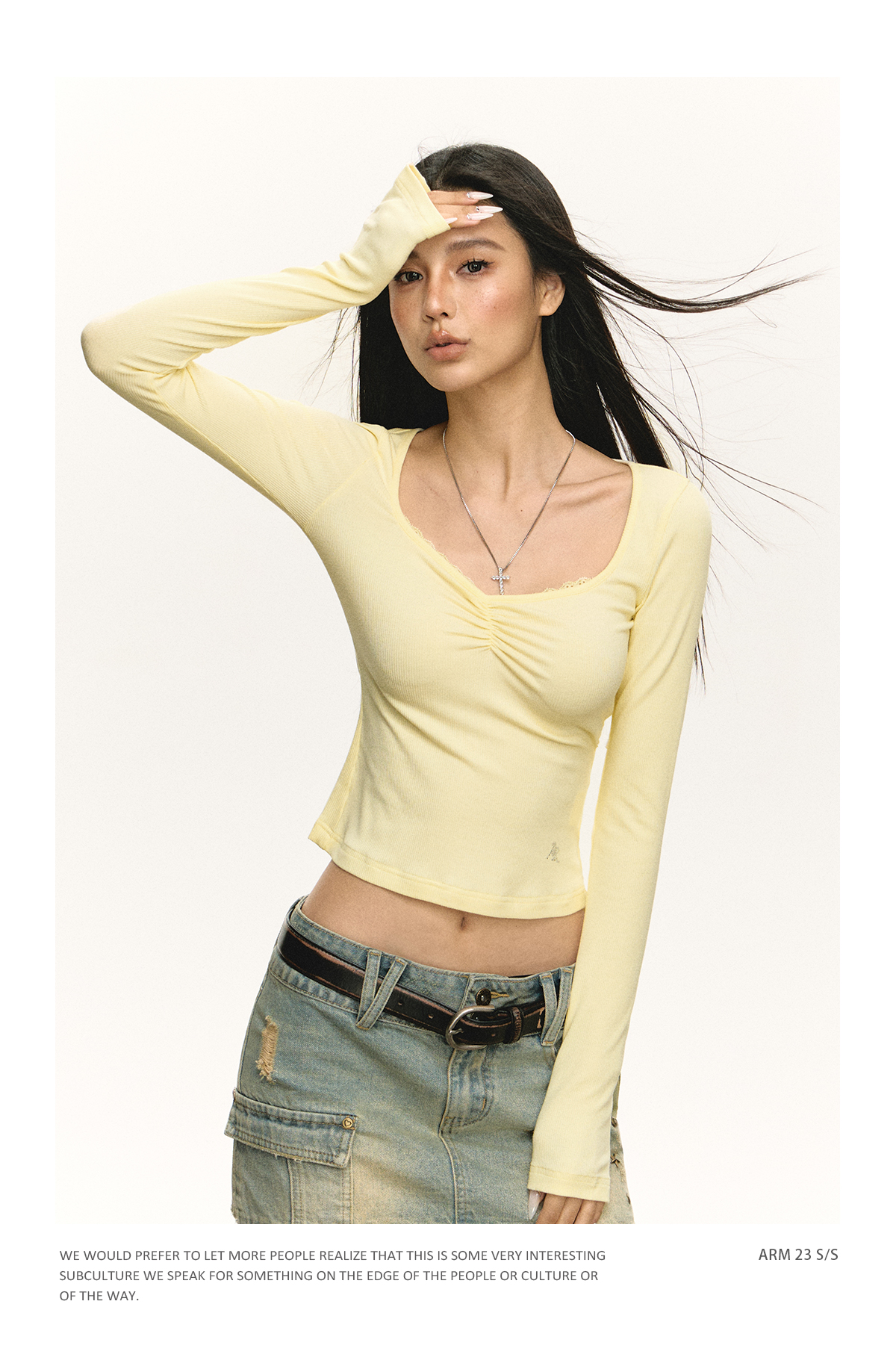 Ariseism 美式复古长袖T恤女2025春秋新款内搭上衣修身打底衫