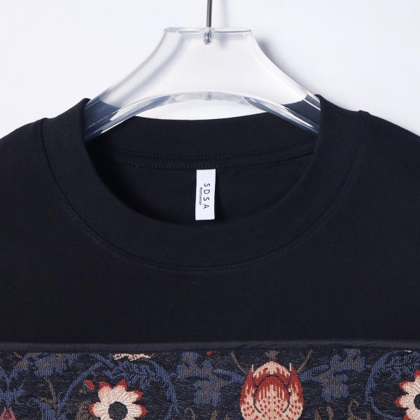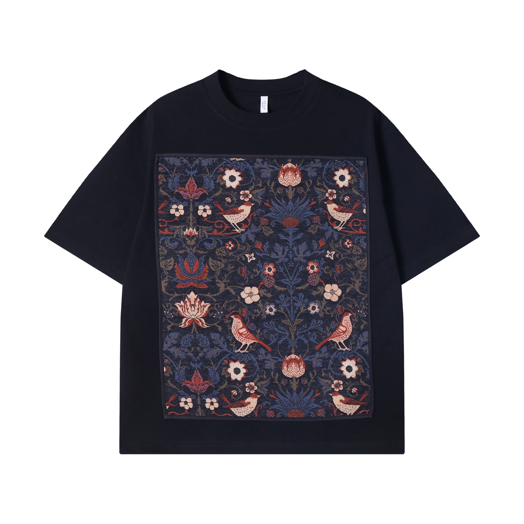 T2828夏季高级感新款国风小鸟花卉刺绣圆领短袖T恤宽松情侣复古上衣
