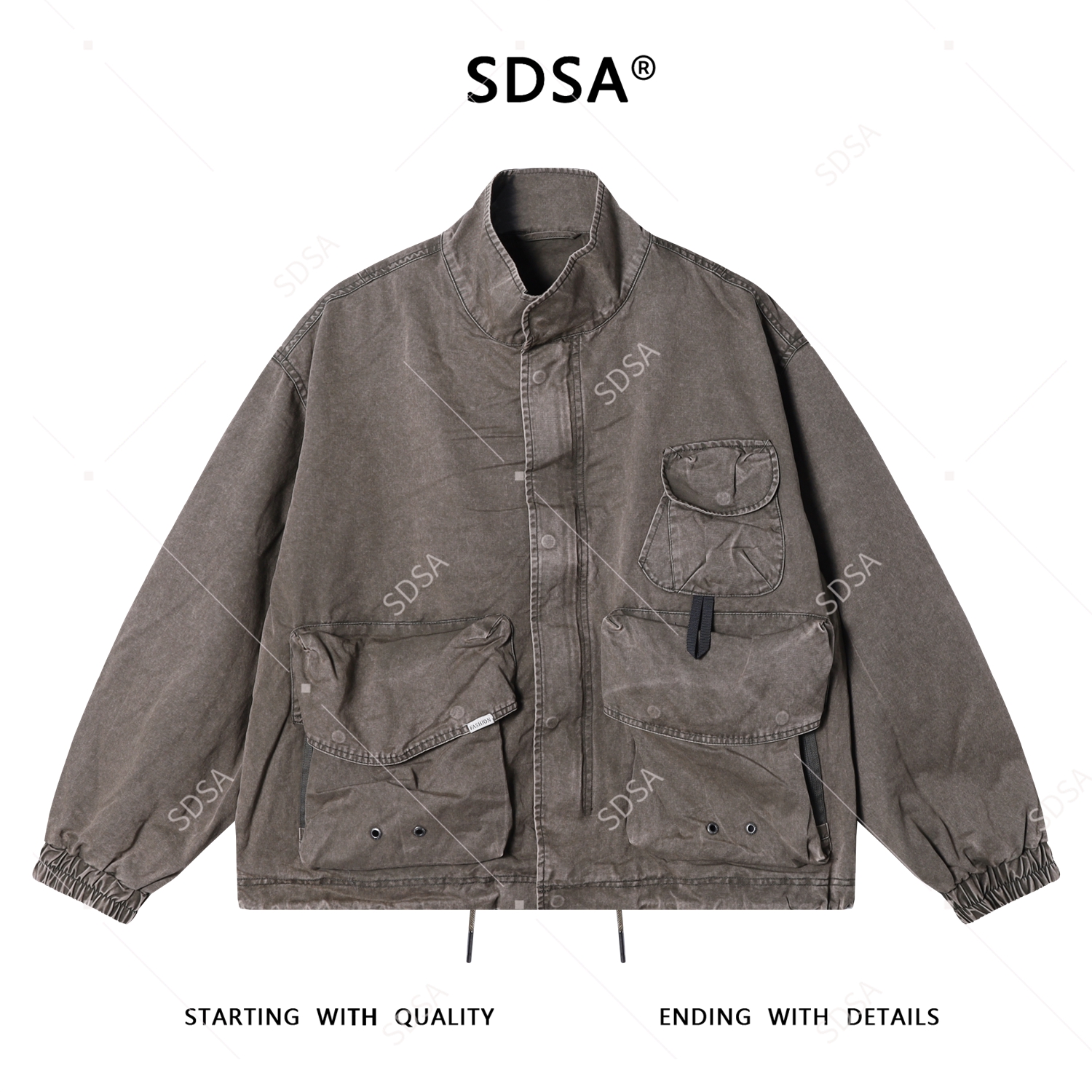 6225SDSA男士秋冬新款痞帅男装老钱风工装按扣拉链立领夹克复古百搭