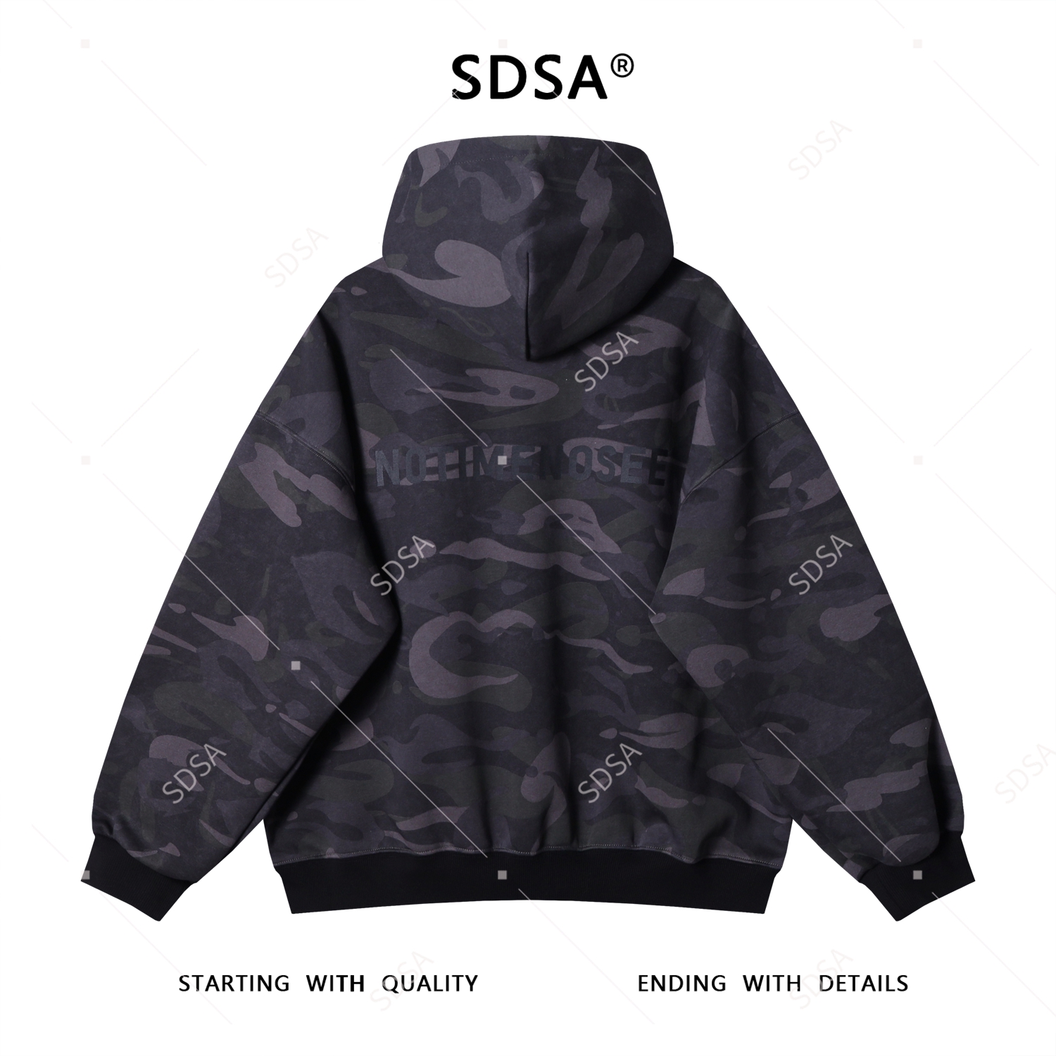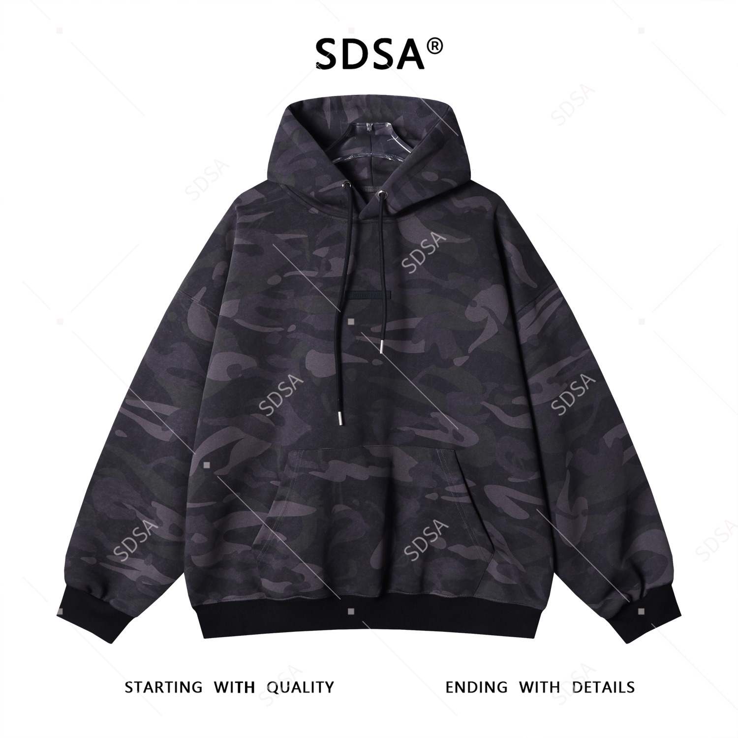SDSA男士秋冬新款痞帅男装轻奢迷彩抽绳连帽卫衣字母潮牌经典上衣