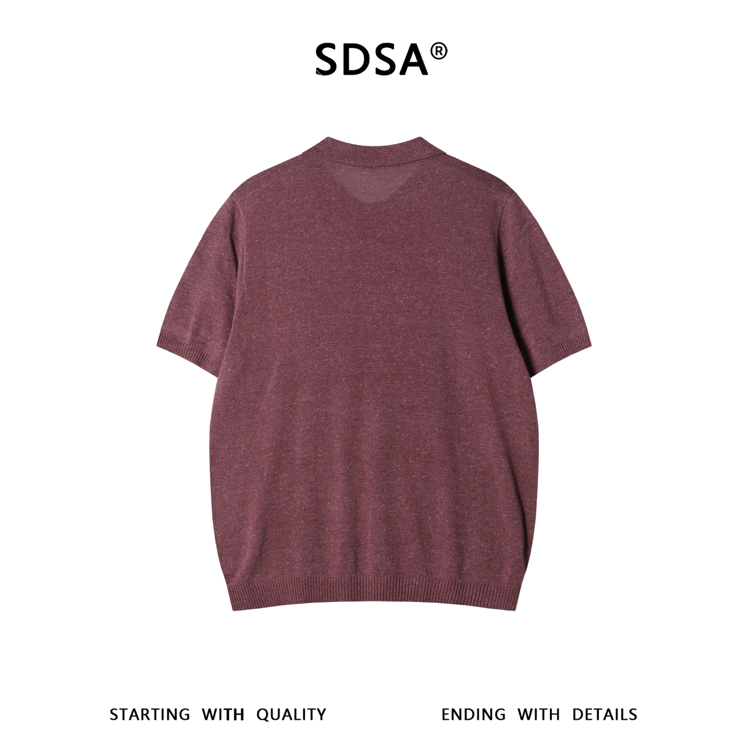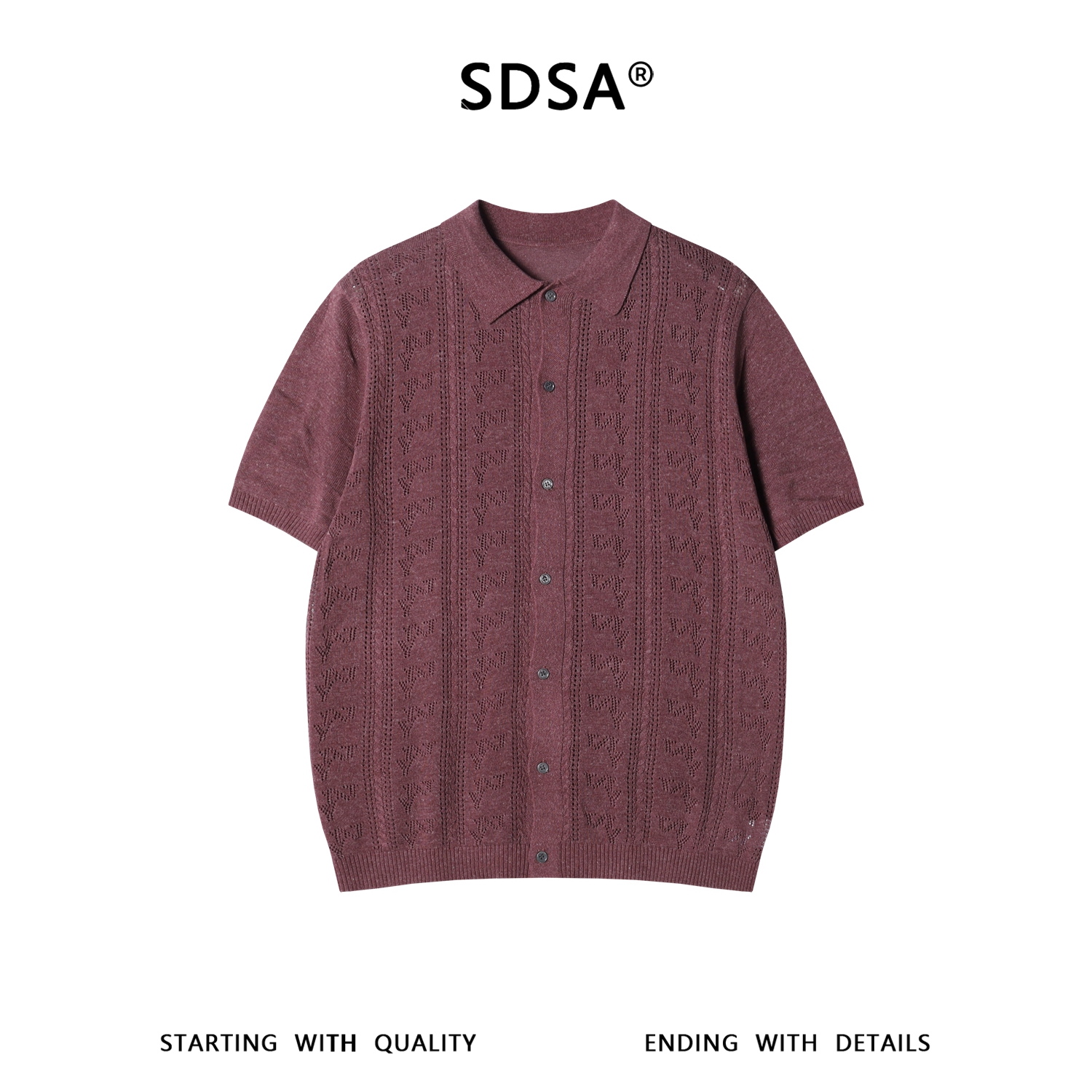 SDSA男装2026新款高贵轻奢复古镂空针织纽扣翻领短袖T恤百搭休闲