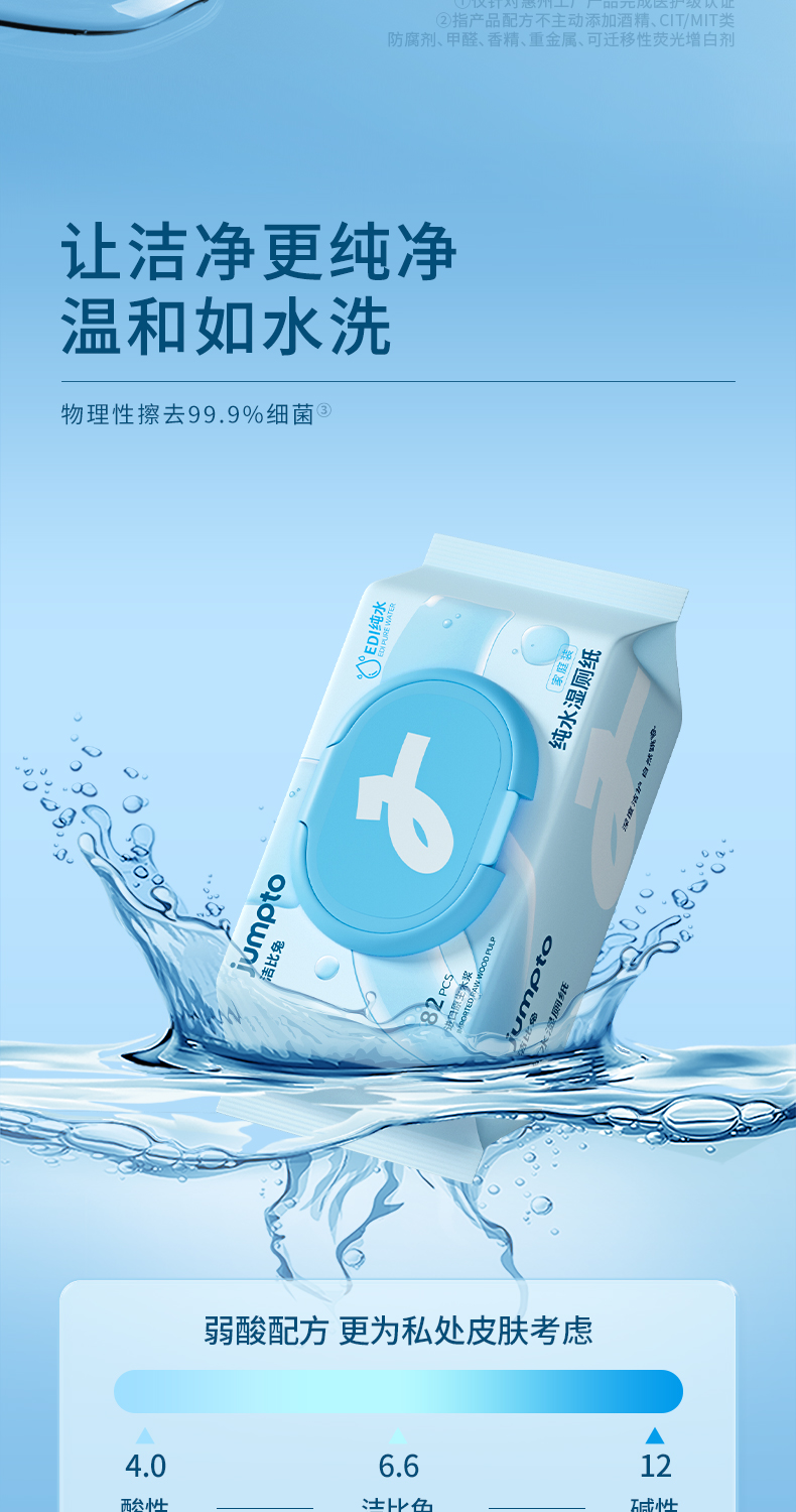洁比兔纯水湿厕纸家庭装医护级认证0杀菌剂可冲散湿厕纸