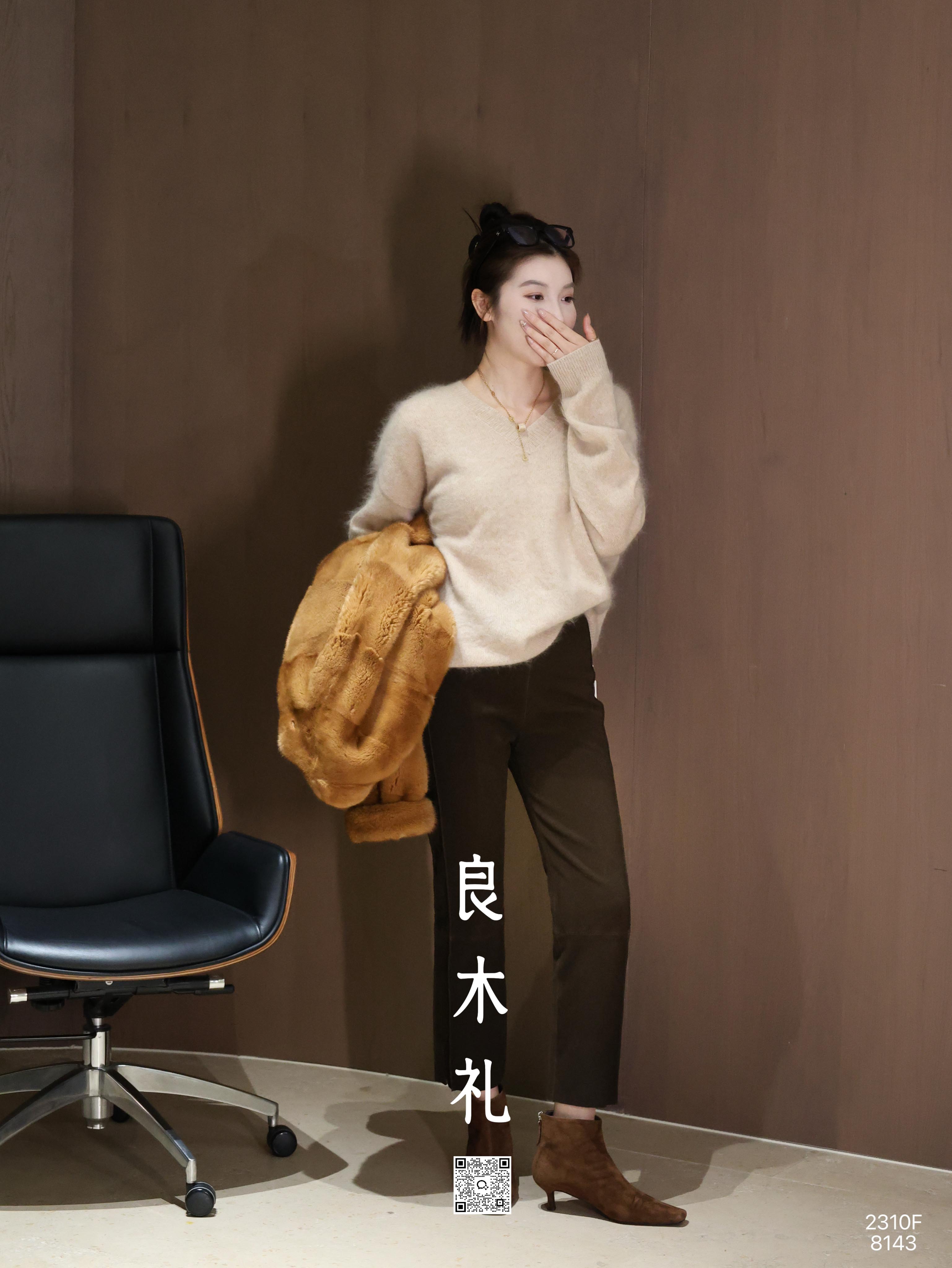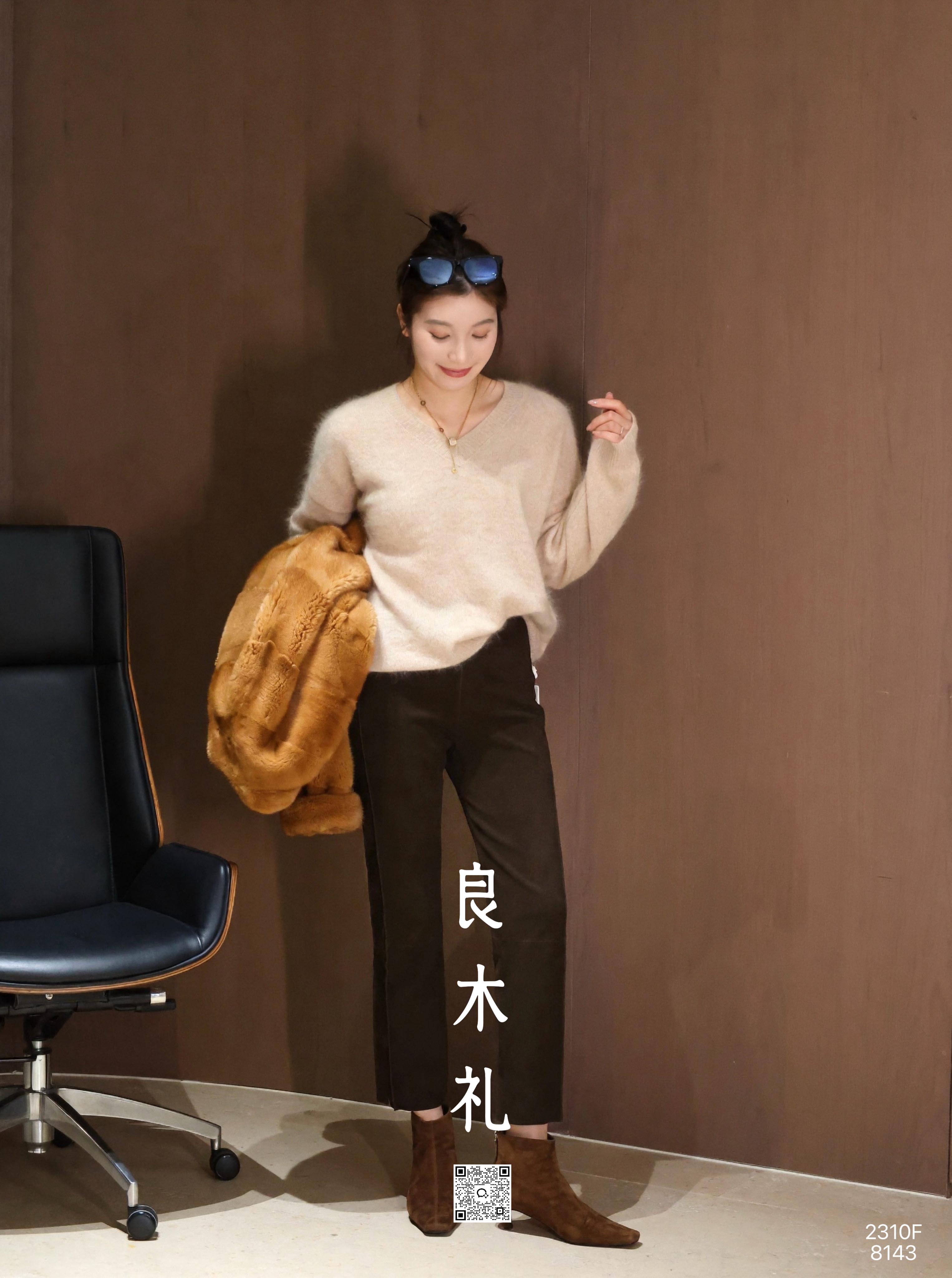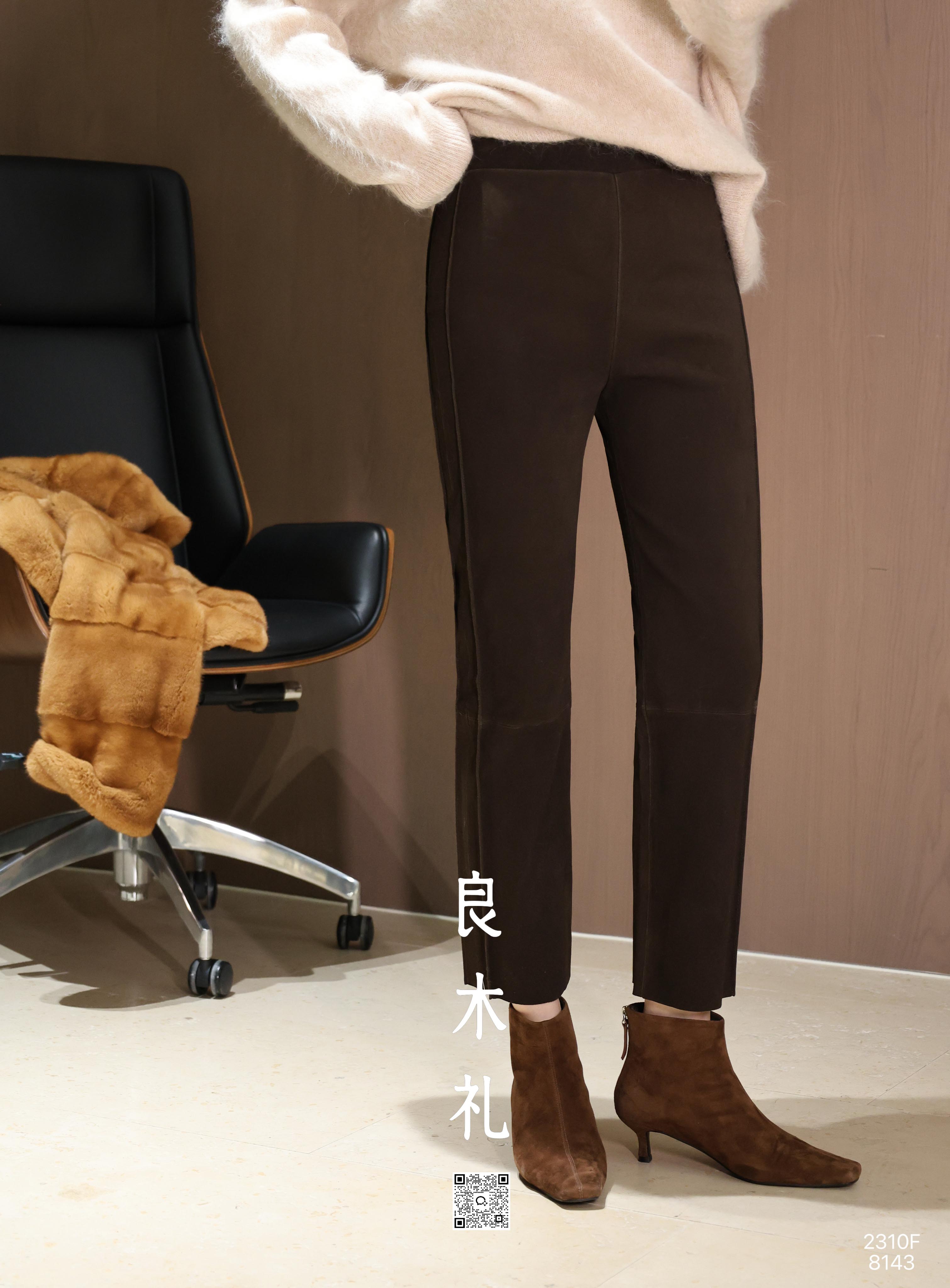 【预售7天】良木礼羊皮烟管裤(绒面)(Q259302)