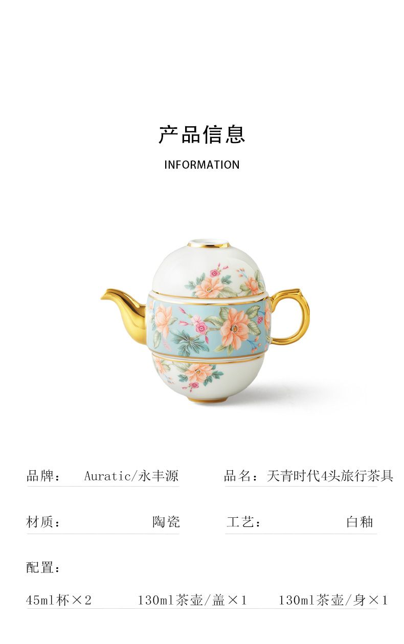 永丰源 天青时代4头旅行茶具130ml 高档陶瓷欧式描金套装 瓷器商品不支持七天无理由