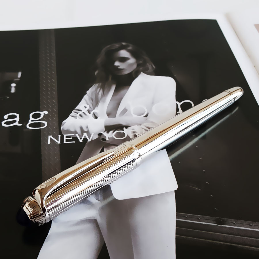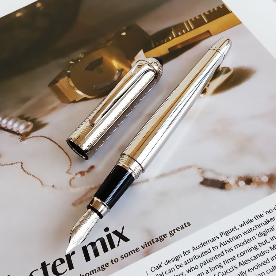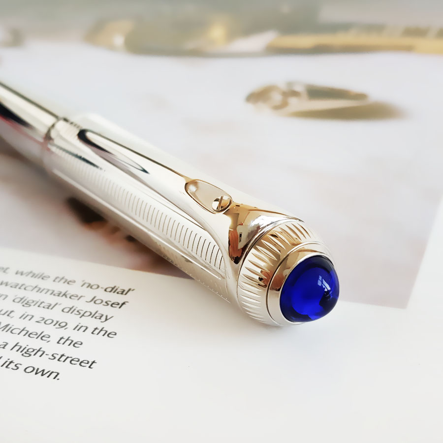 款式 | 镀钯饰面顶端镶嵌蓝色树脂款18K金笔尖墨水笔钢笔(墨囊款) |