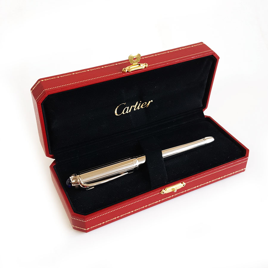 【95新】CARTIER卡地亚镀钯饰面顶端镶嵌蓝色树脂款18K金笔尖墨水笔钢笔(墨囊款)090226NJS44