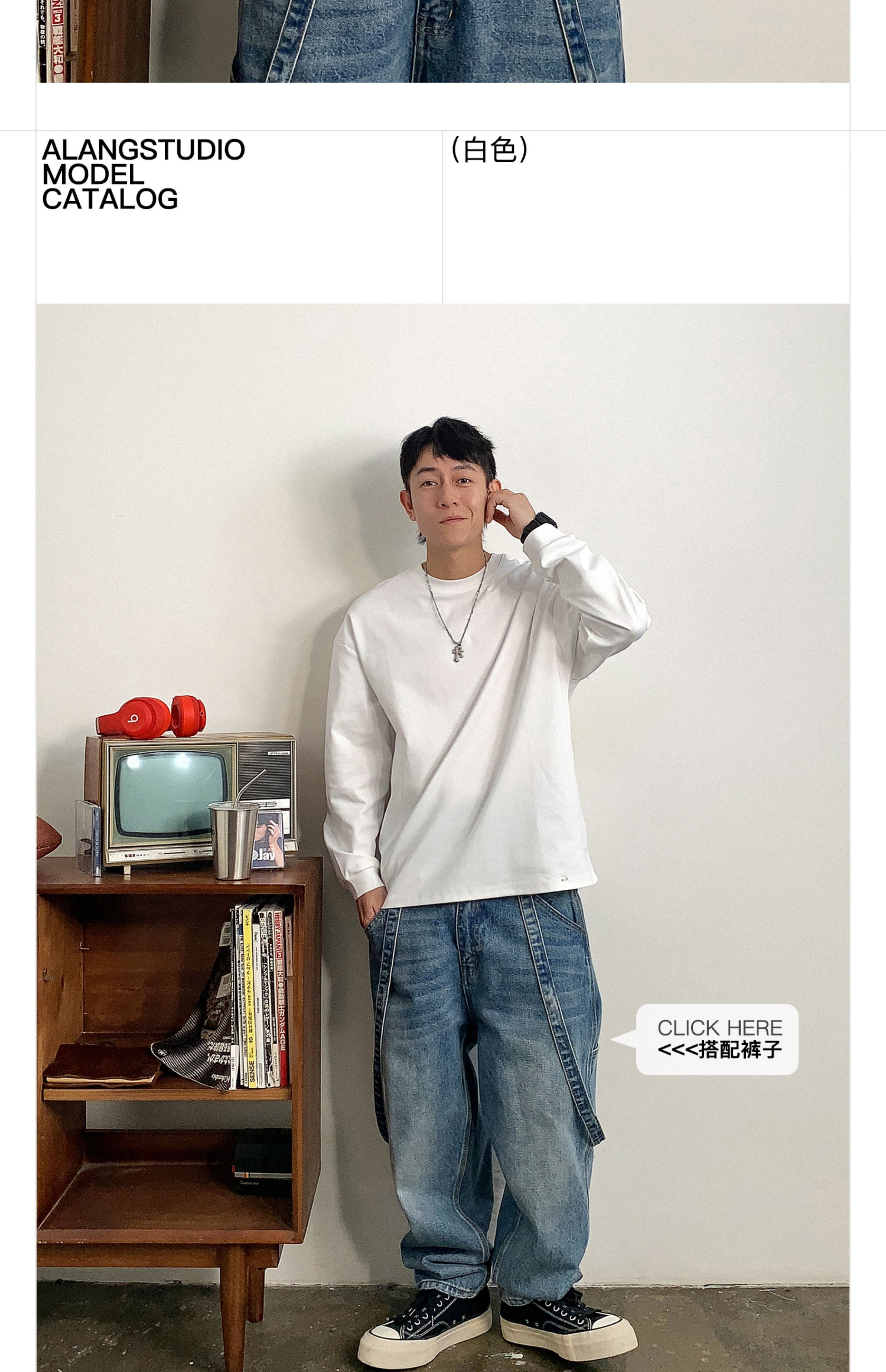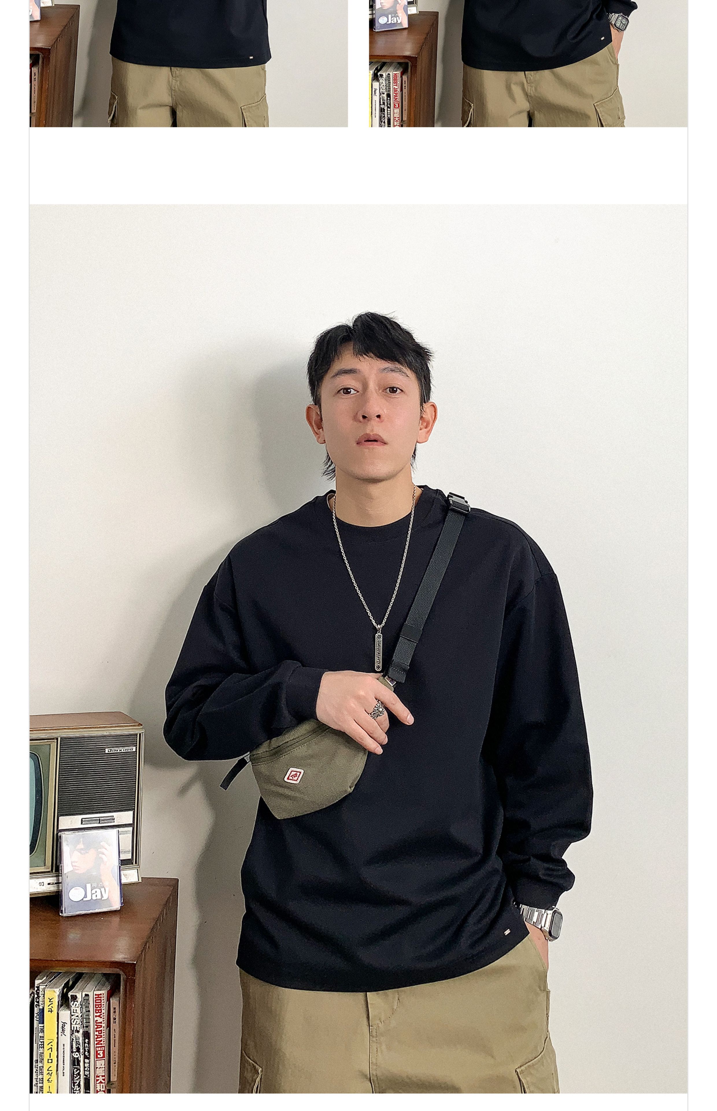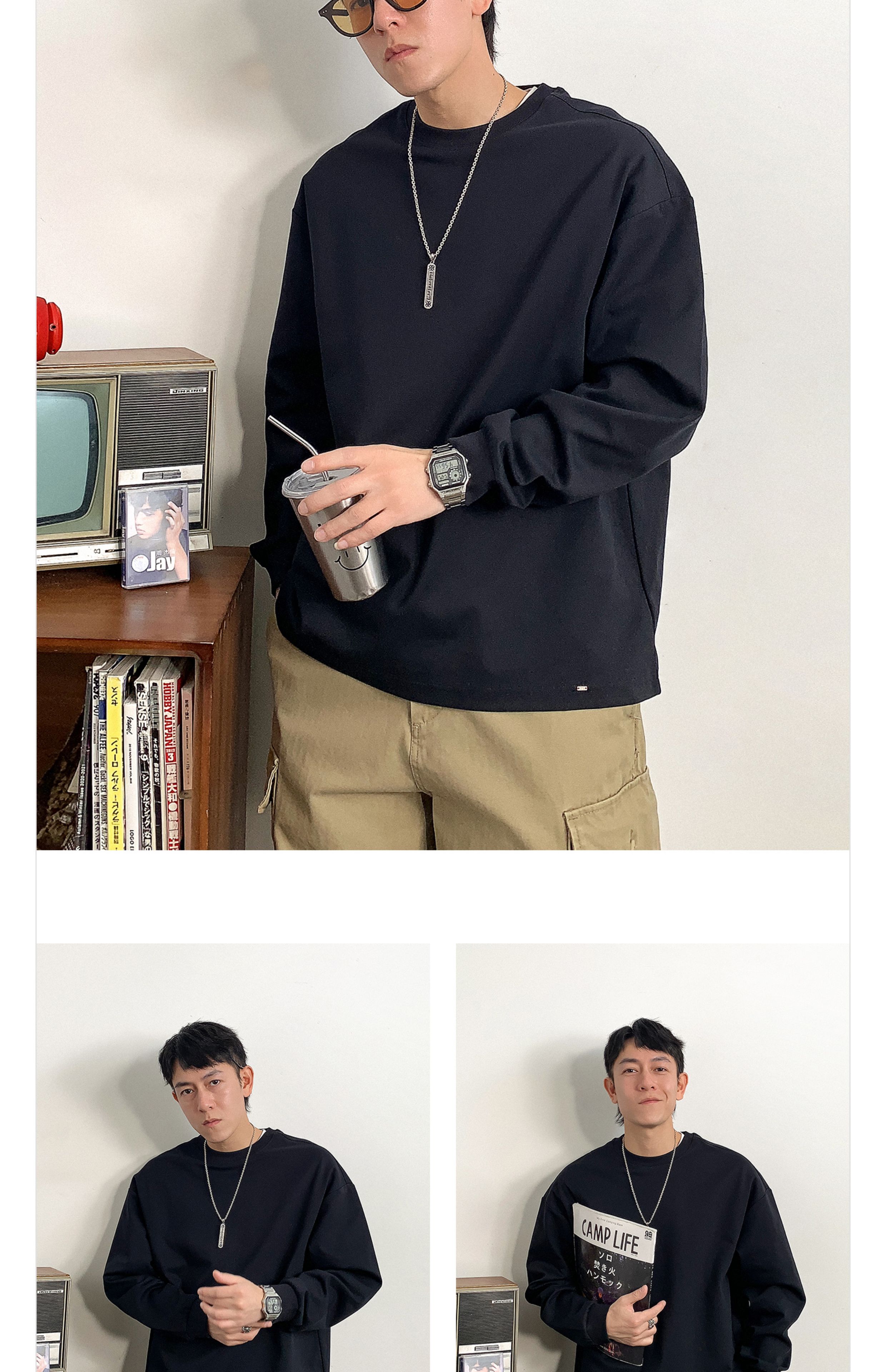 徐太浪简约百搭纯色长袖T恤男春秋新款大码男装宽松内搭打底上衣