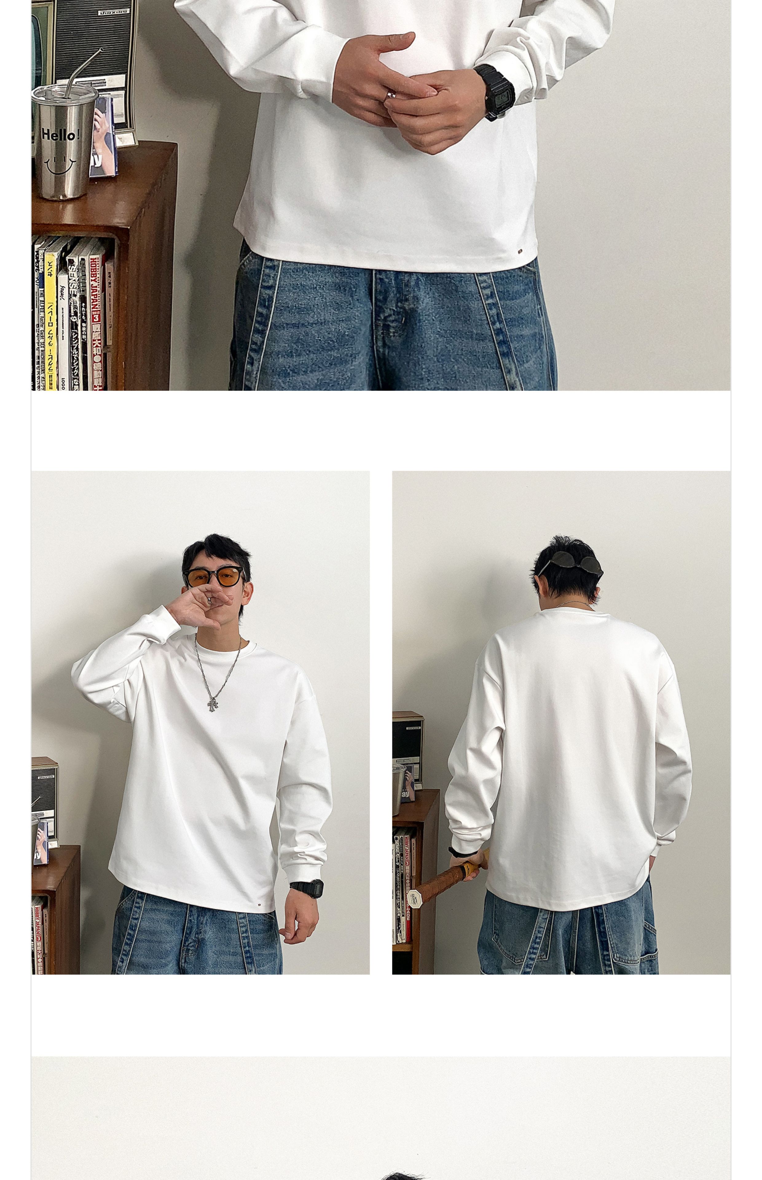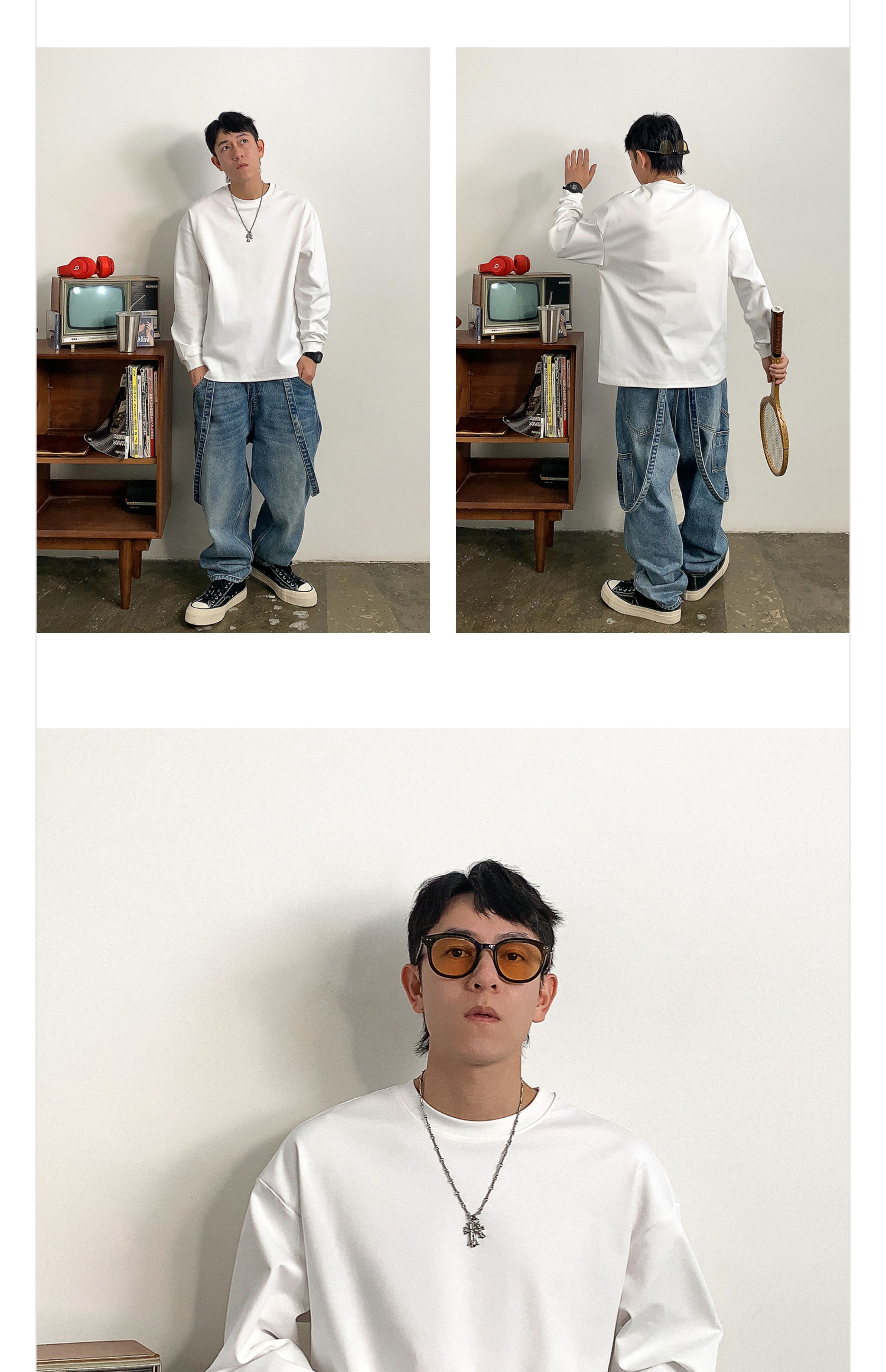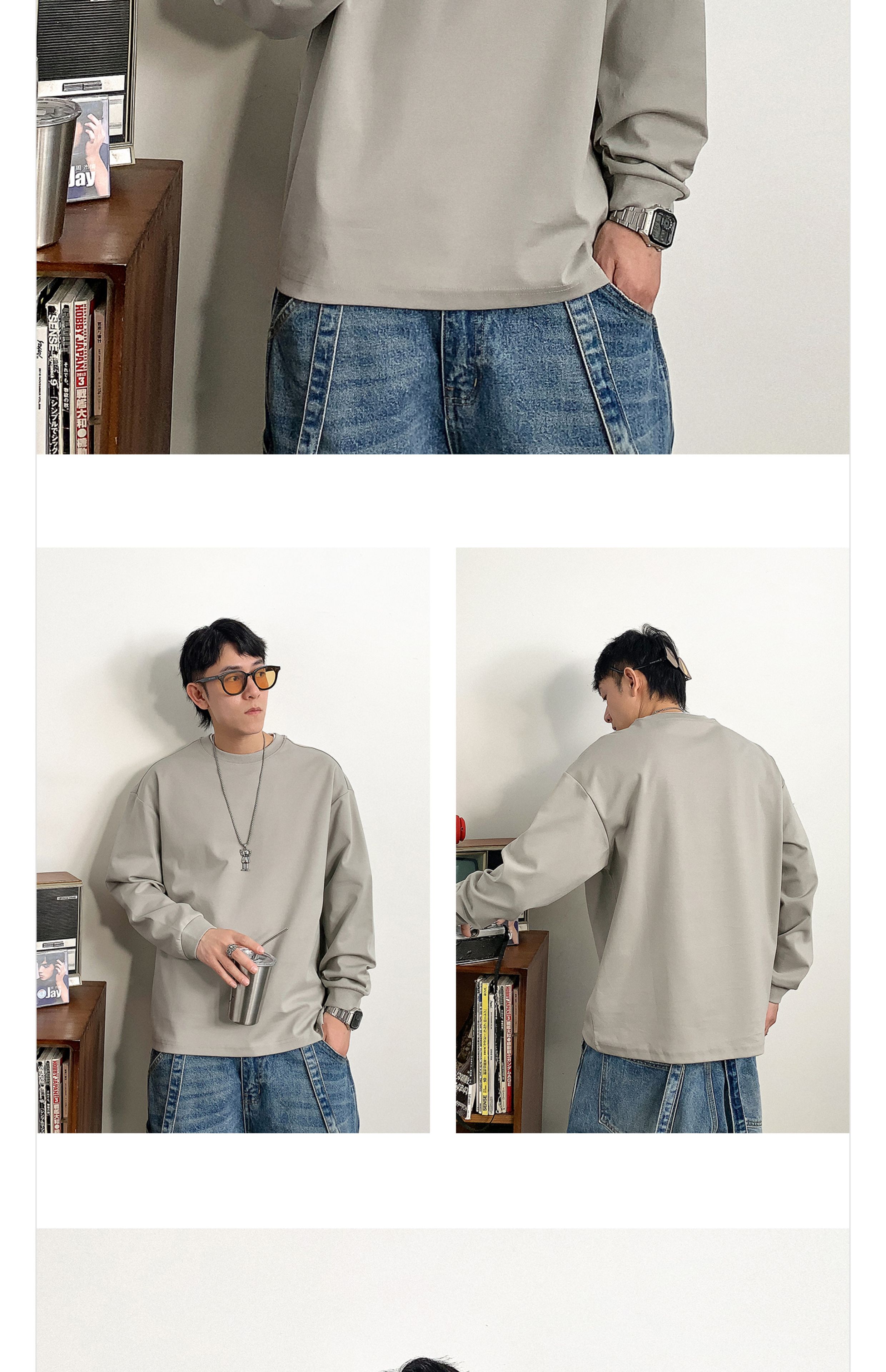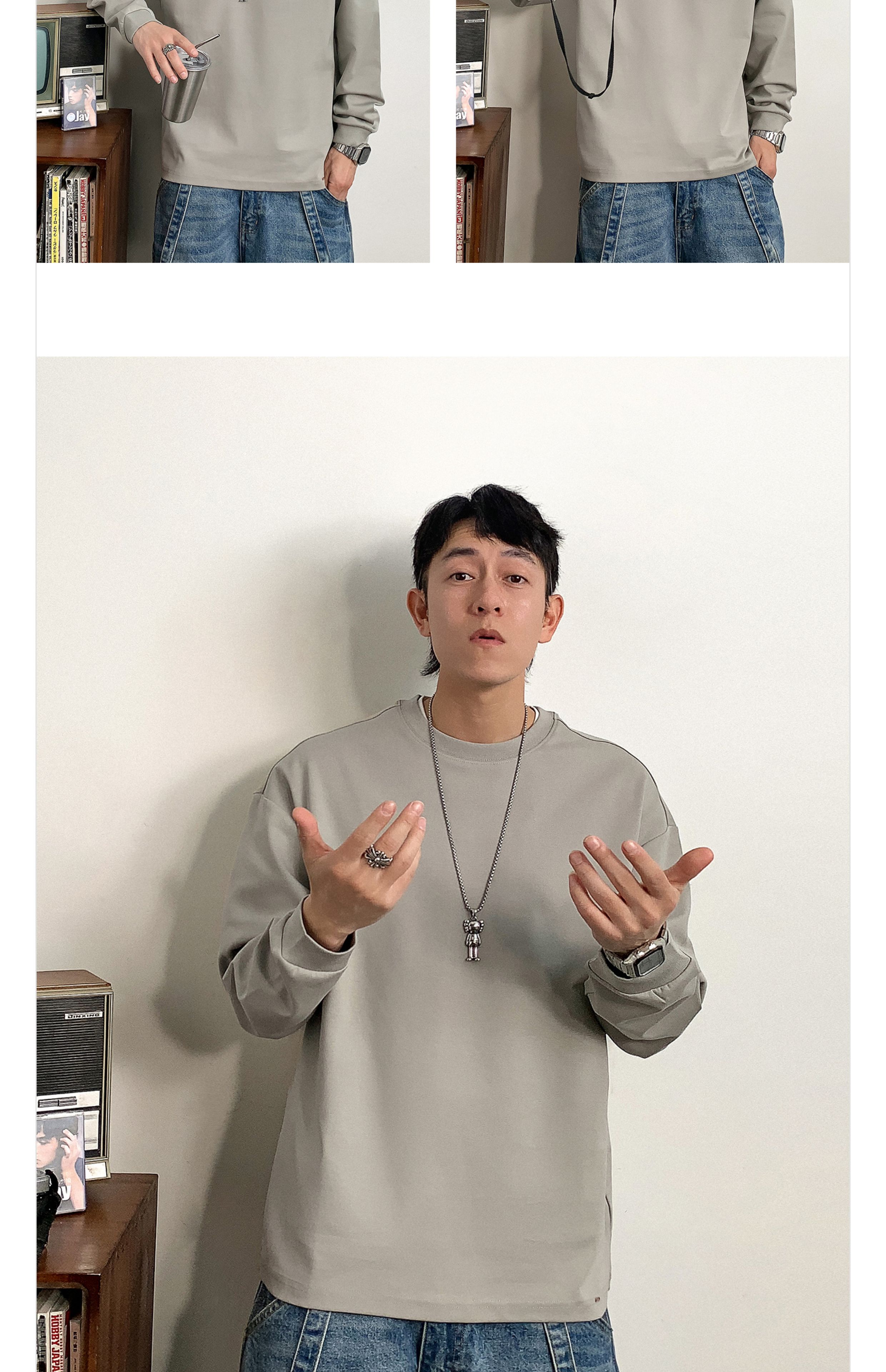 徐太浪简约百搭纯色长袖T恤男春秋新款大码男装宽松内搭打底上衣