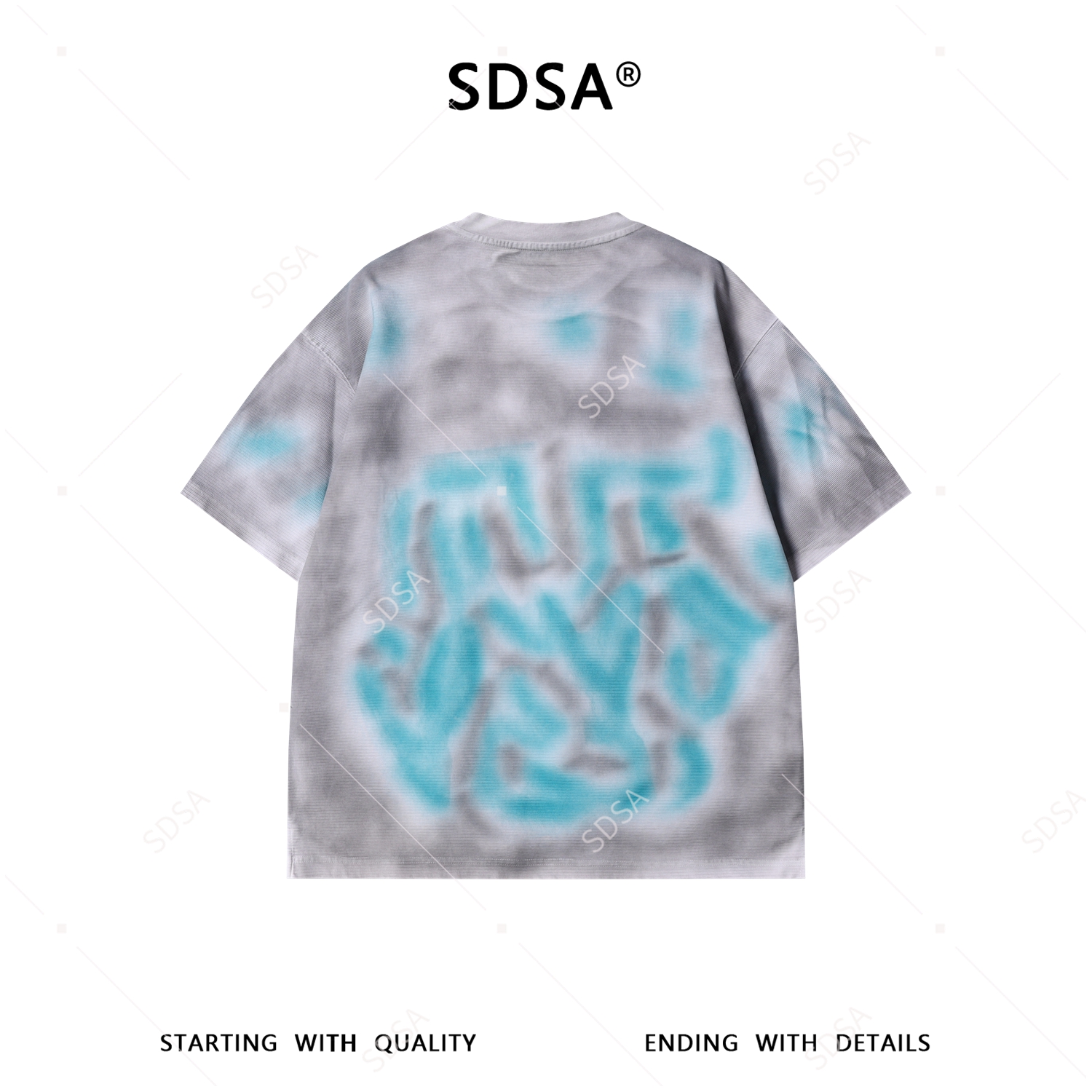 SDSA男装2026新款重磅做旧扎染短袖T恤蓝灰涂鸦设计感圆领上衣