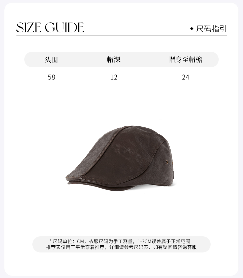 ROMI STUDIO“个性英伦”皮质立体感文艺复古做旧贝雷帽 RWCAP36112