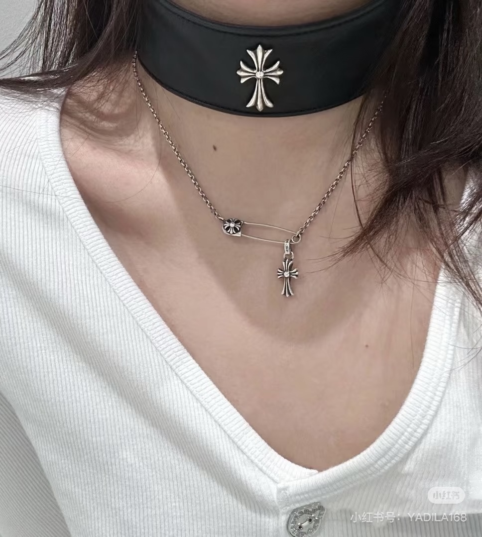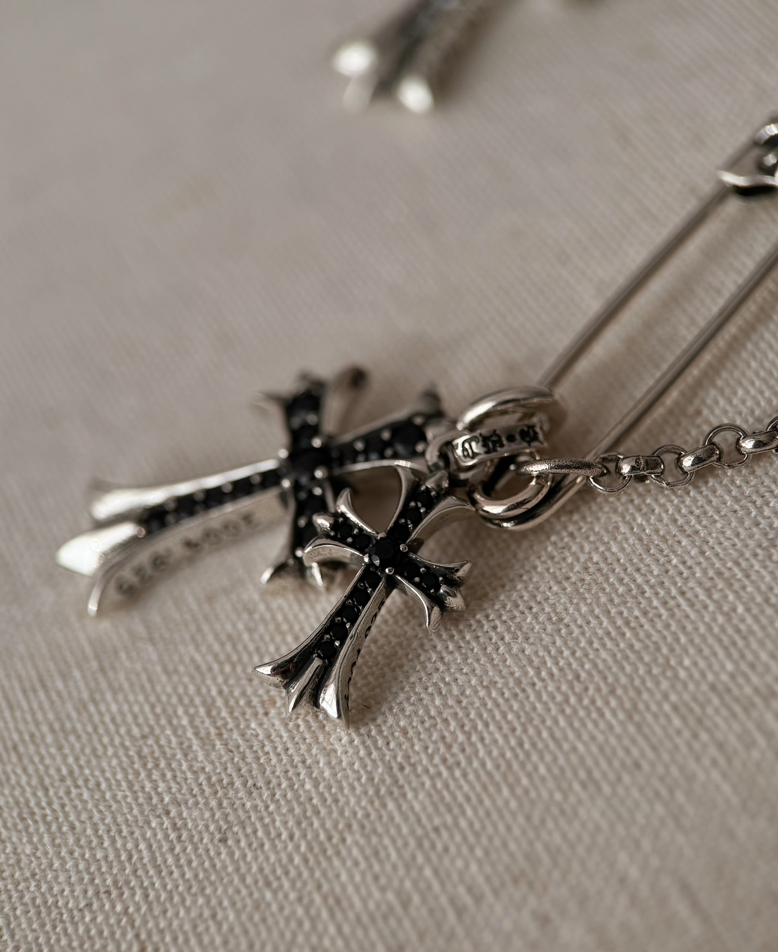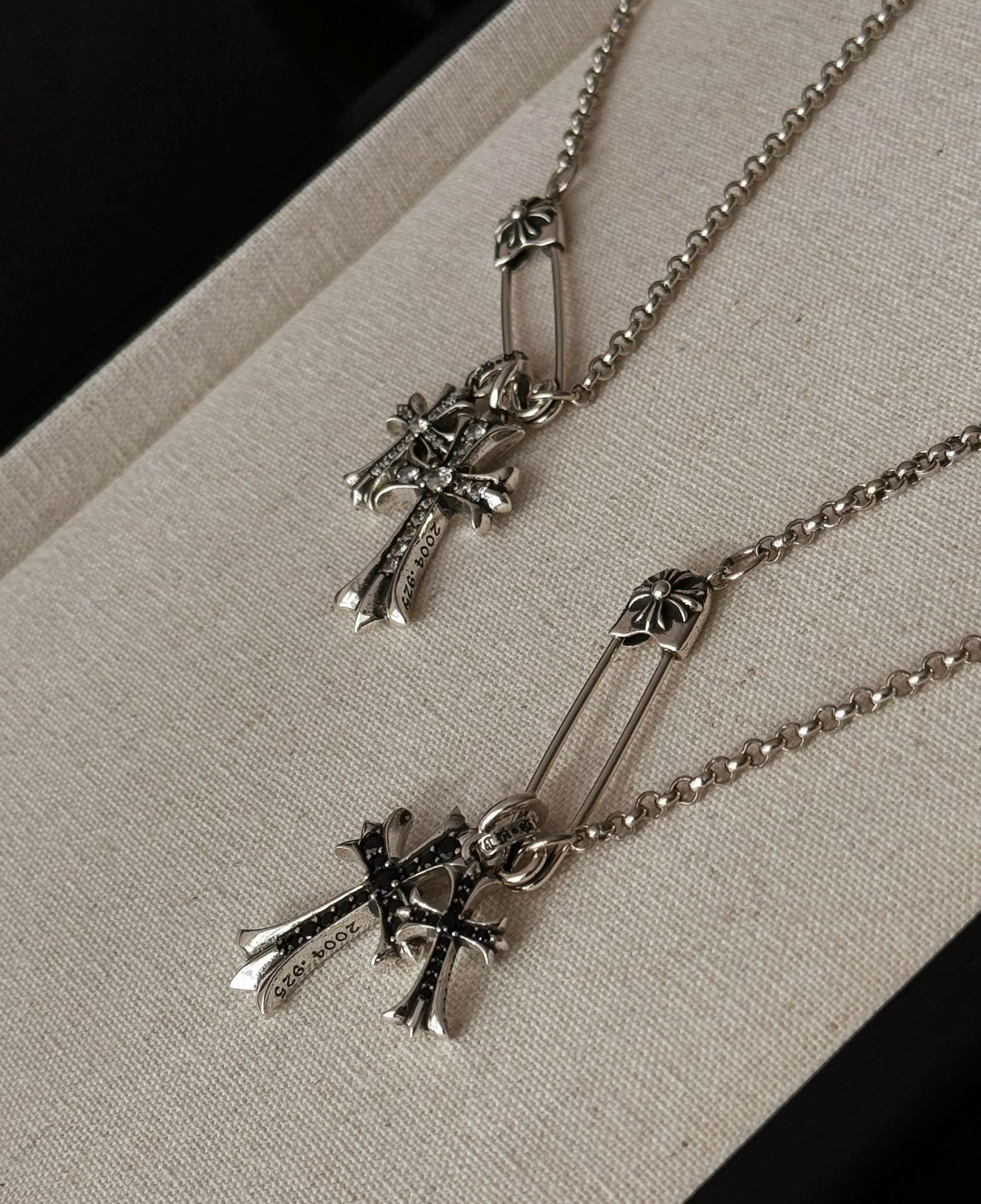 Chrome Hearts 克罗心封神之作!别针款双十字架项链,这样的组合简直绝了,它的颜值真的超高,925铜镀银搭配白钻,在光线下闪闪发光~