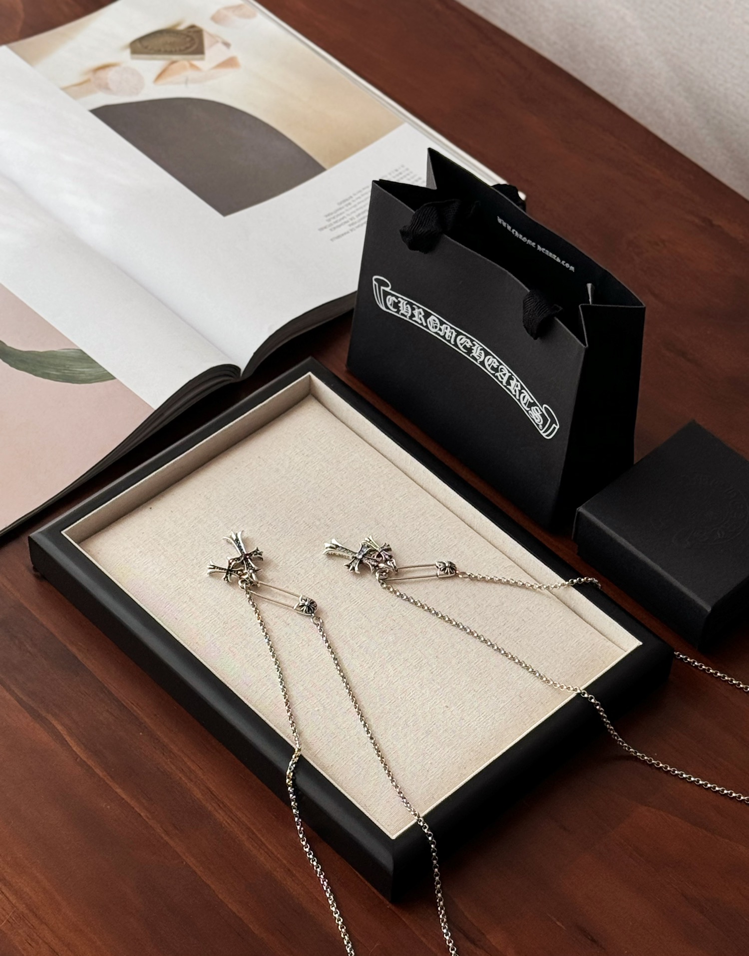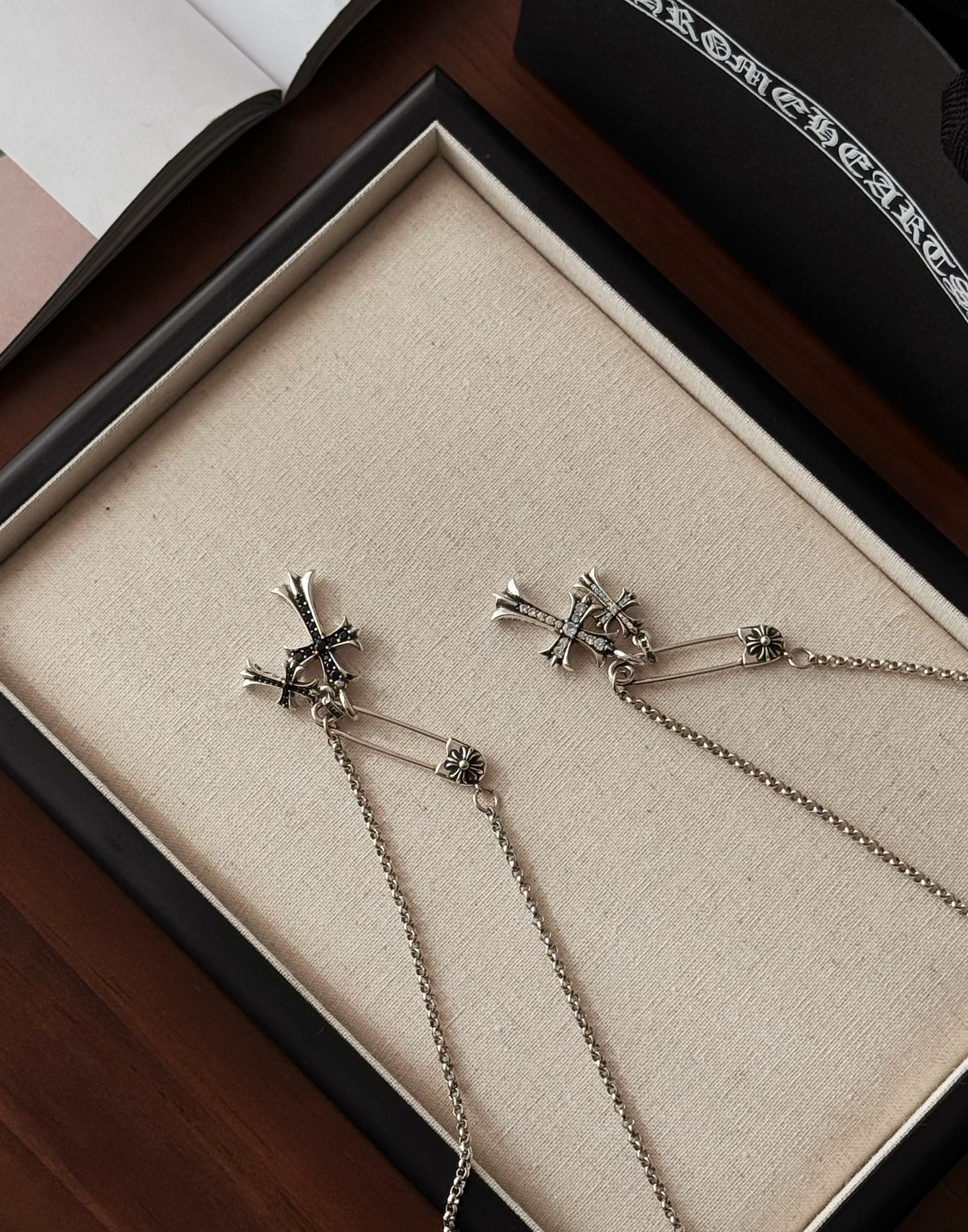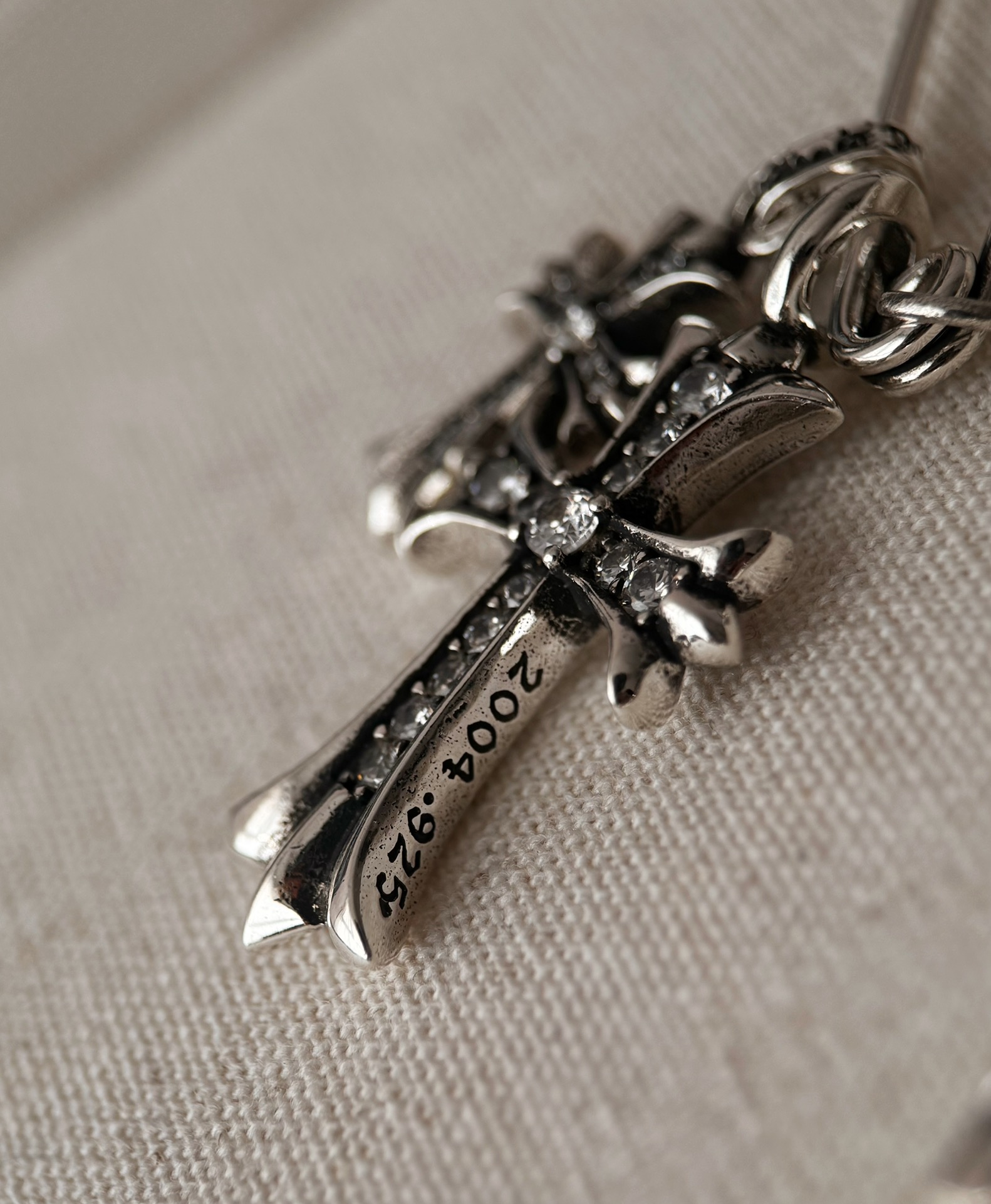 Chrome Hearts 克罗心封神之作!别针款双十字架项链,这样的组合简直绝了,它的颜值真的超高,925铜镀银搭配白钻,在光线下闪闪发光~