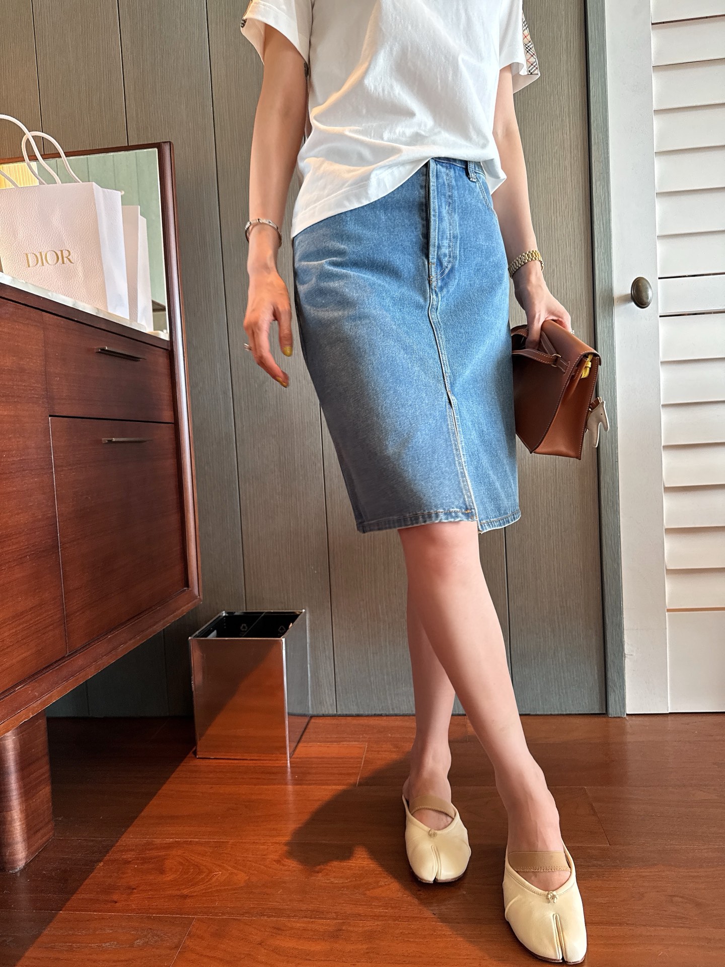 25年最最最新款牛仔半裙,极简质感➕舒适松弛,立挺有型⛓️ 很遮肉显瘦,裙长也恰到好处,自然垂坠感,开叉设计,视觉延伸双腿,笔直修长感觉,包容性强,上身减龄又俏皮😘真的是半裙中的YYDS, 时髦精BI备〰️放心冲😜码数SML