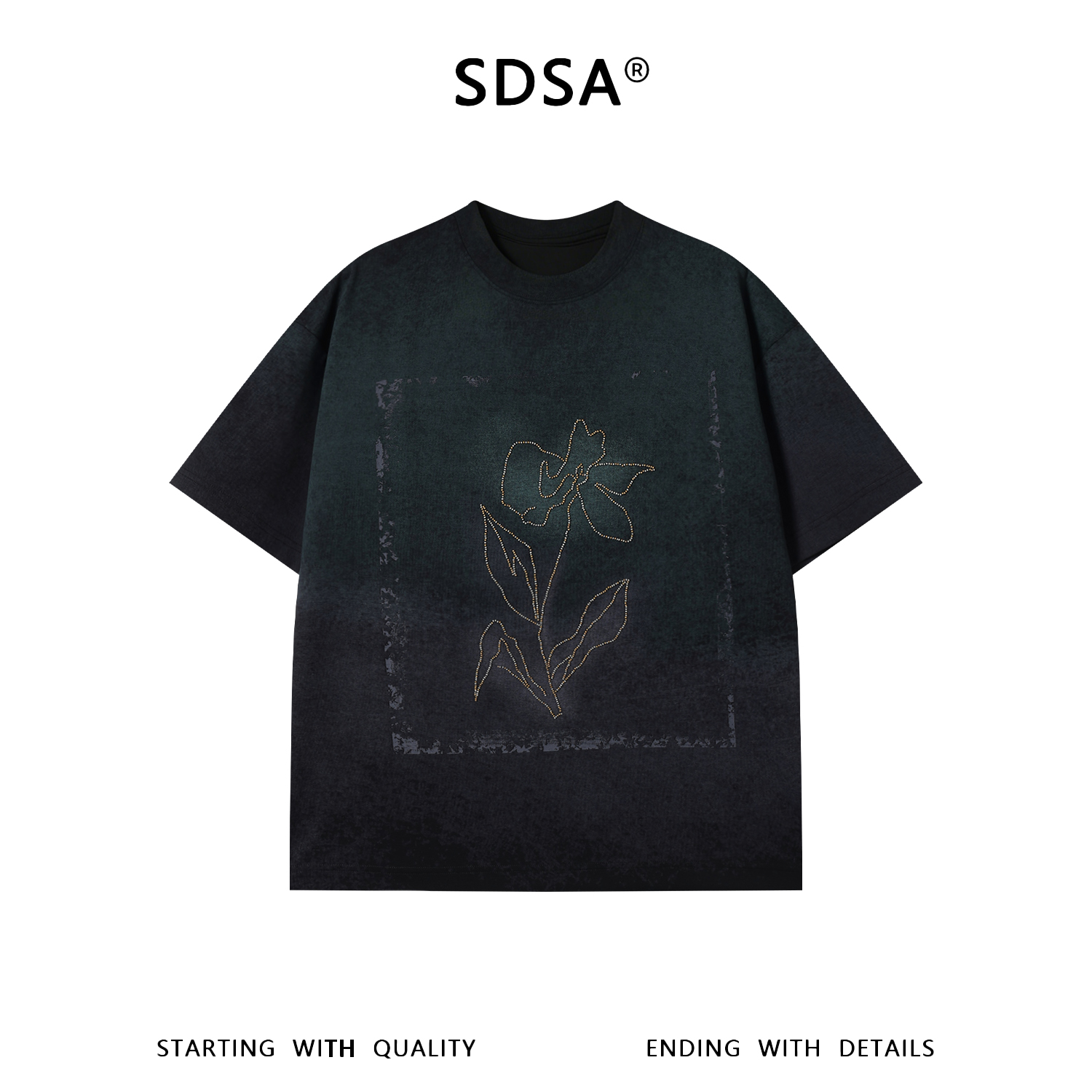 SDSA男装2026新款高贵轻奢潮牌渐变珠子花朵设计圆领短袖T恤百搭