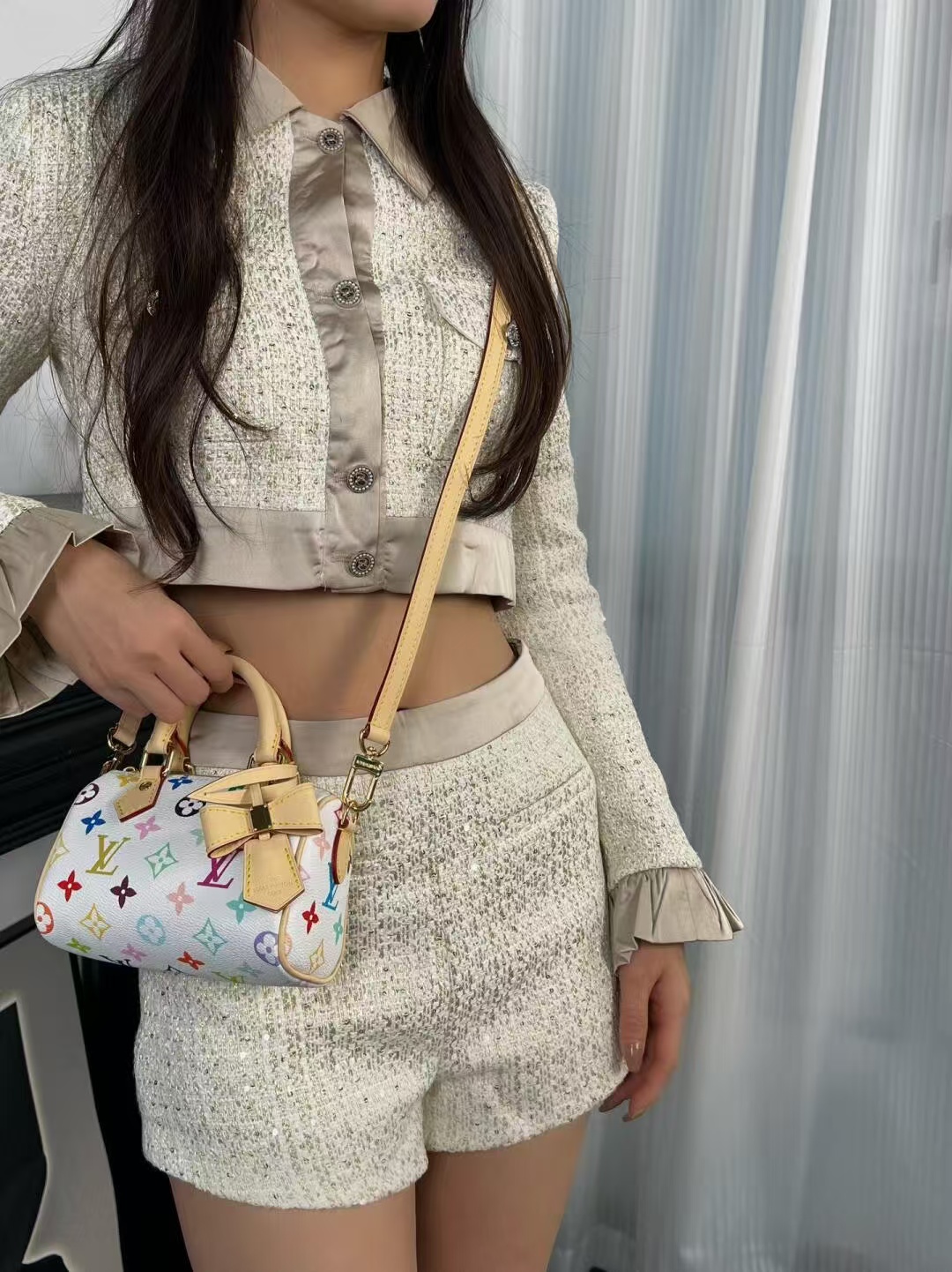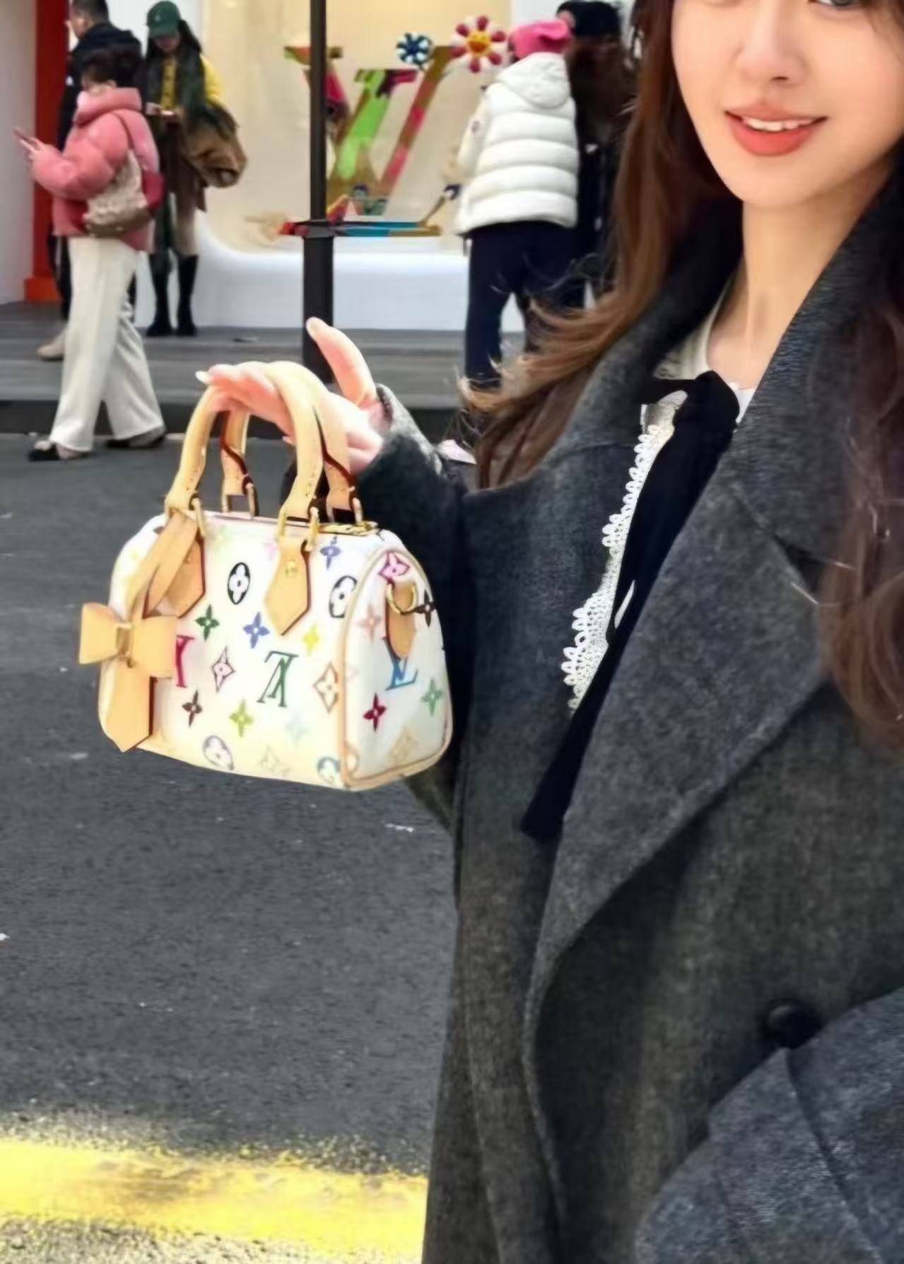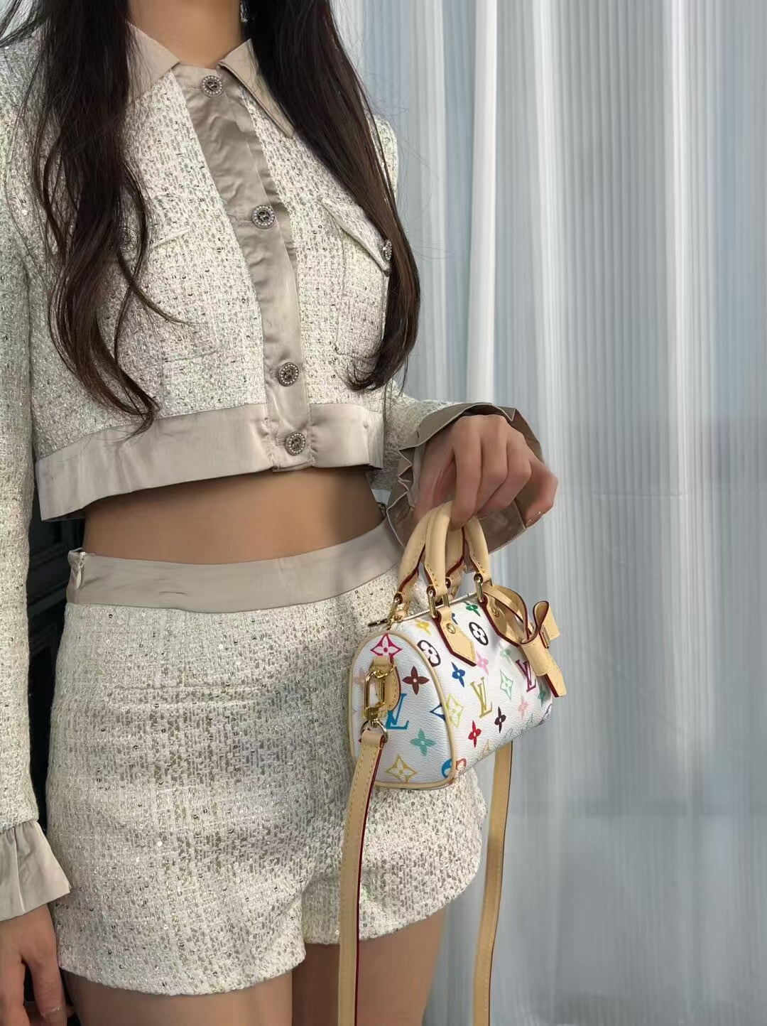 本款 Nano Speedy 手袋选用 Monogram 涂层帆布和牛皮革饰边塑造玲珑构型,以明丽色彩演绎路易威登 x 村上隆再版系列的灵动格调。Toron 手柄和耀目挂锁致敬品牌旅行传承,可拆卸并调节的肩带和别致 LV x TM 钥匙包完善整体。