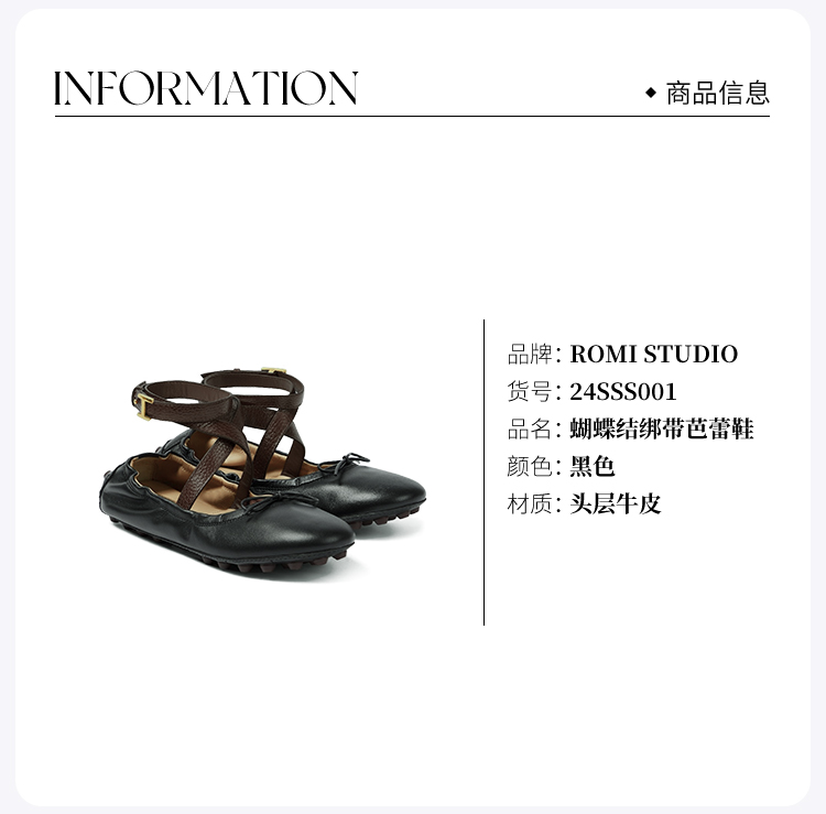 ROMI STUDIO”法式优雅“法国进口羊皮蝴蝶结绑带芭蕾鞋24SSS001