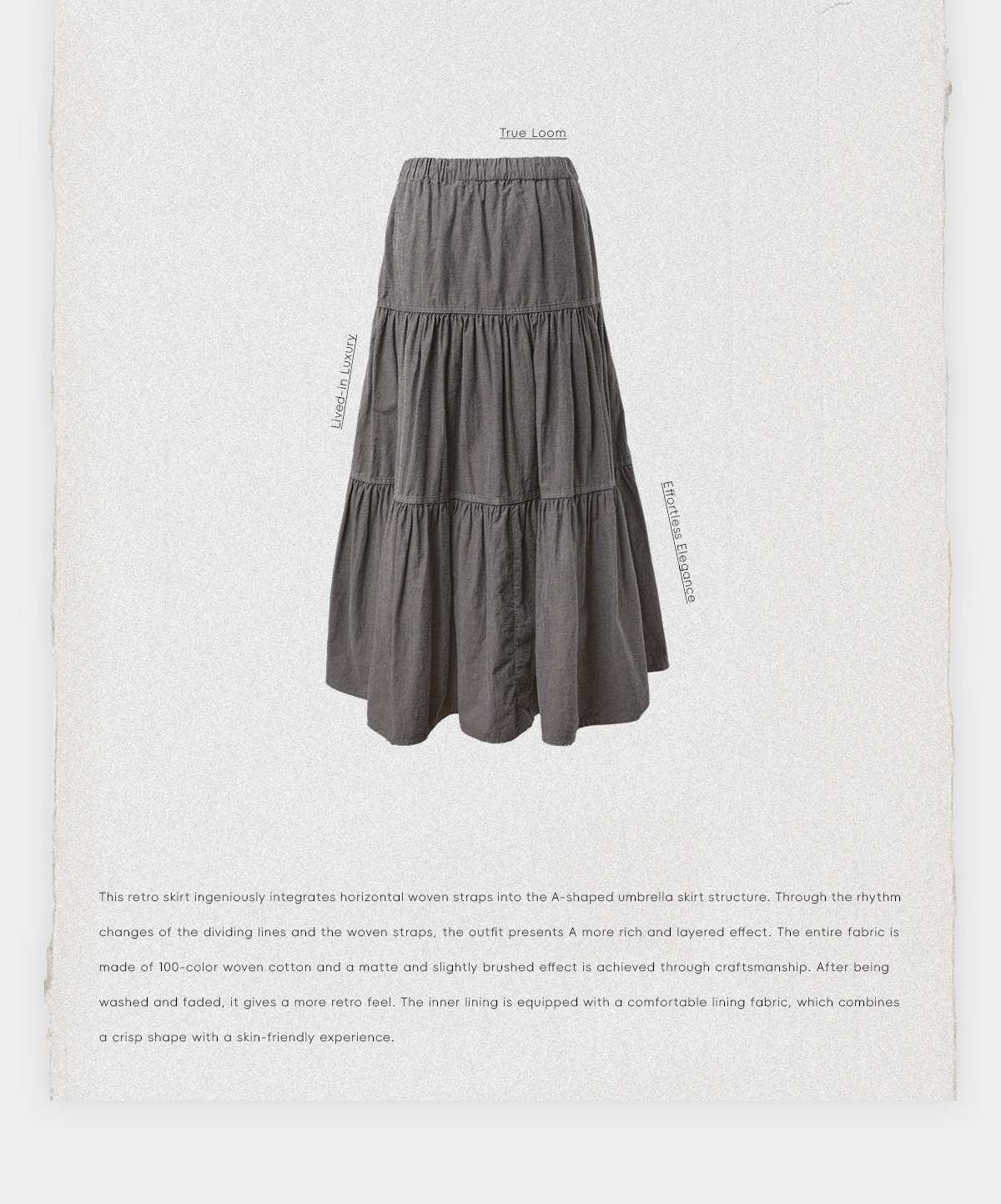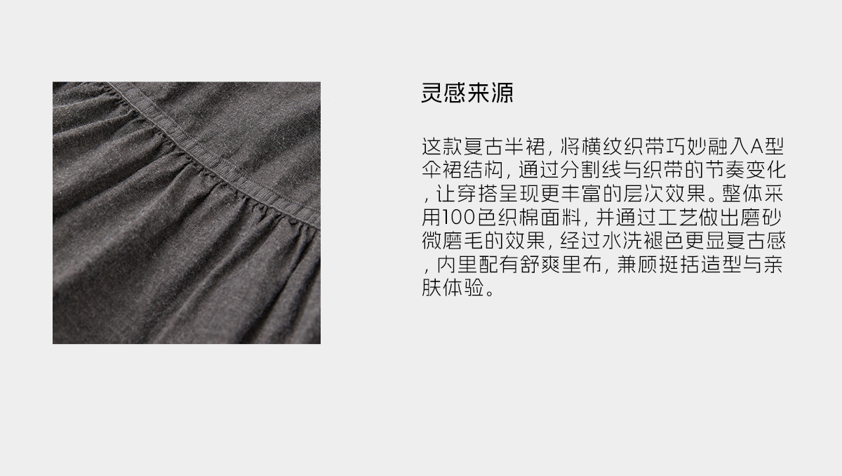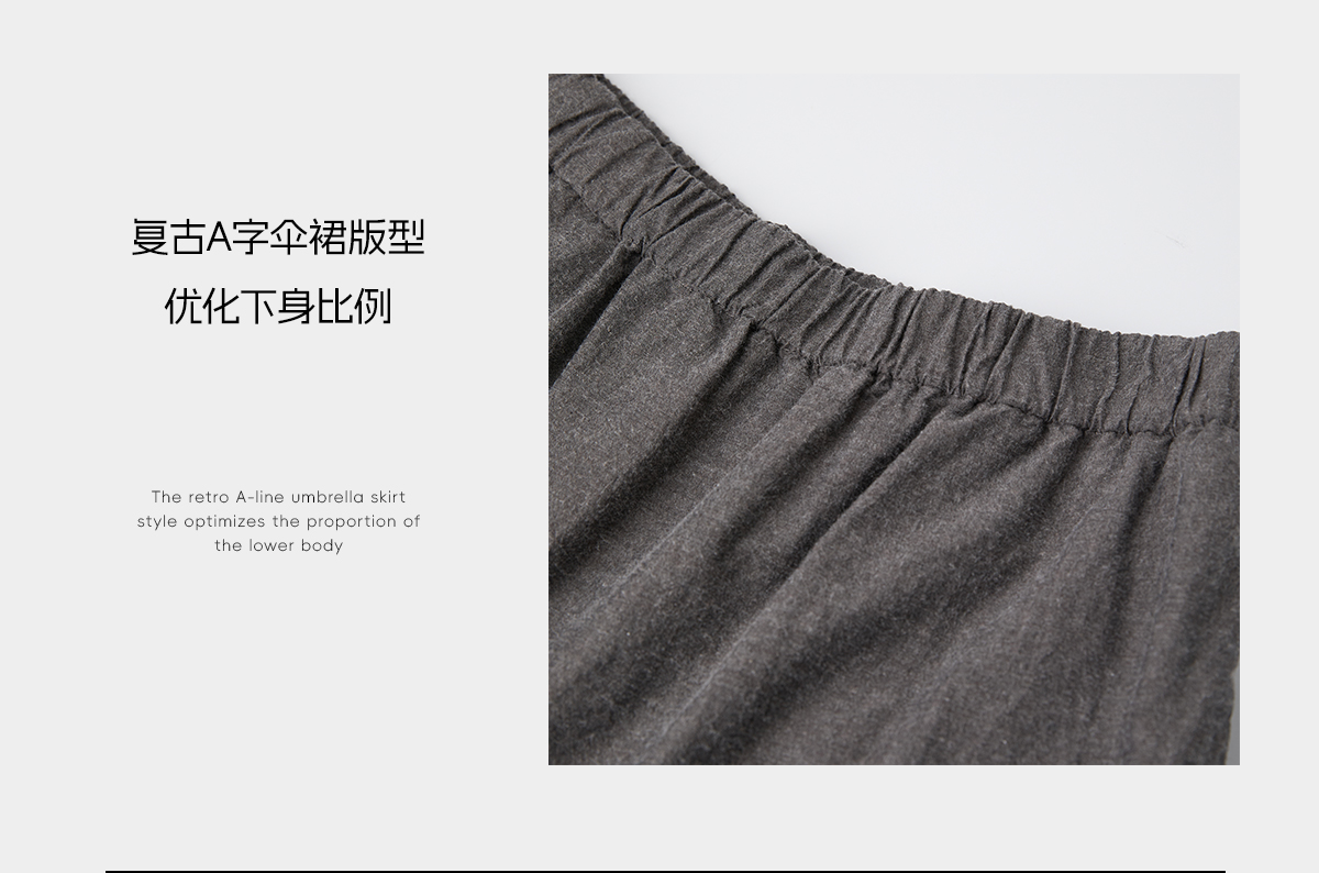 ROMI STUDIO磨砂微毛棉质复古洗水A摆松紧腰半身裙伞裙RWCAXG6171