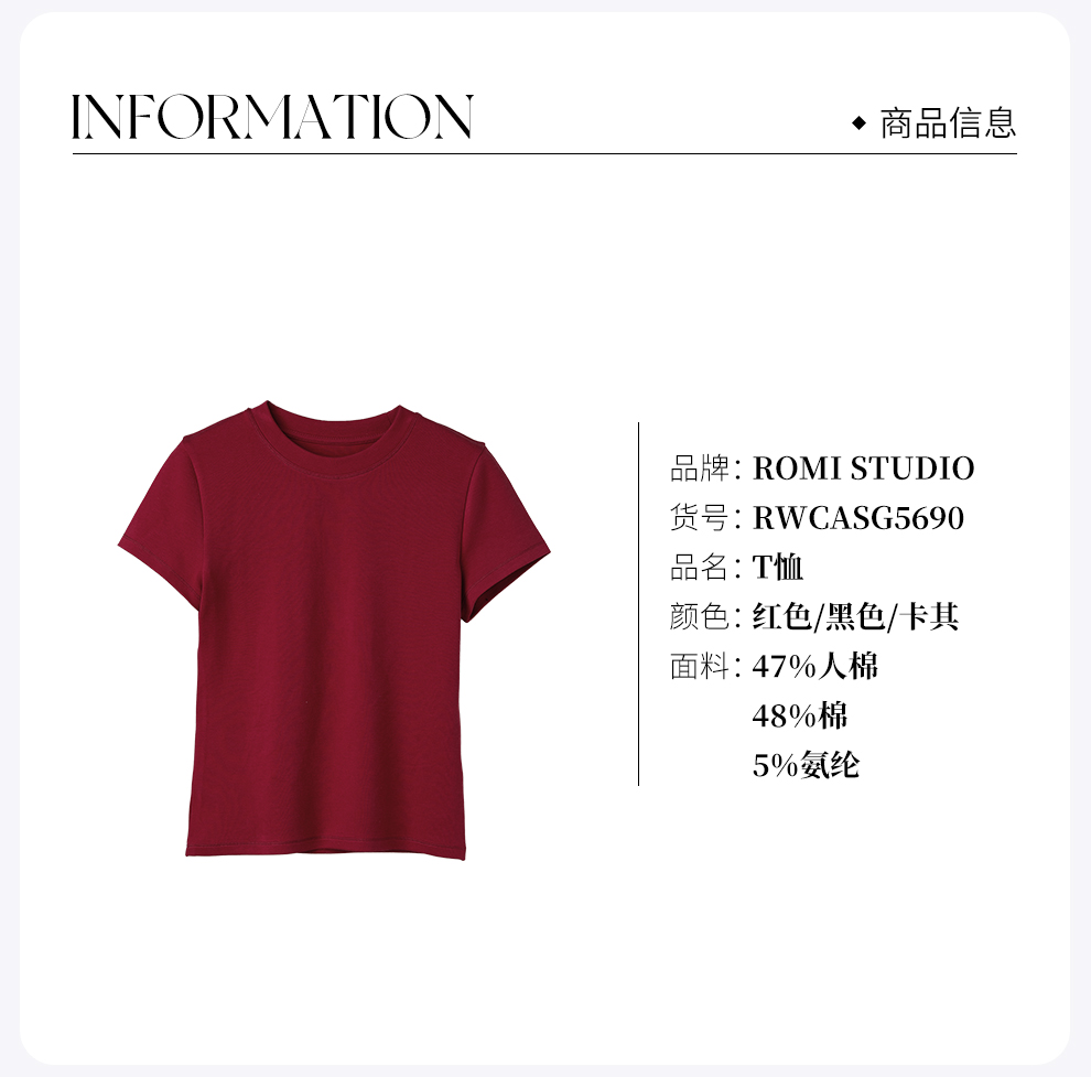 ROMI STUDIO“简约舒适”加绒磨毛贴身小版圆领T恤 RWCASG5690