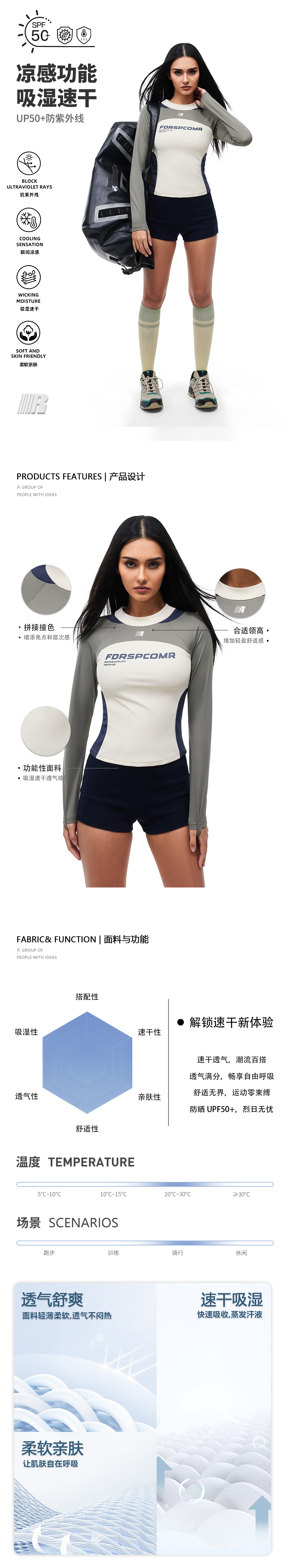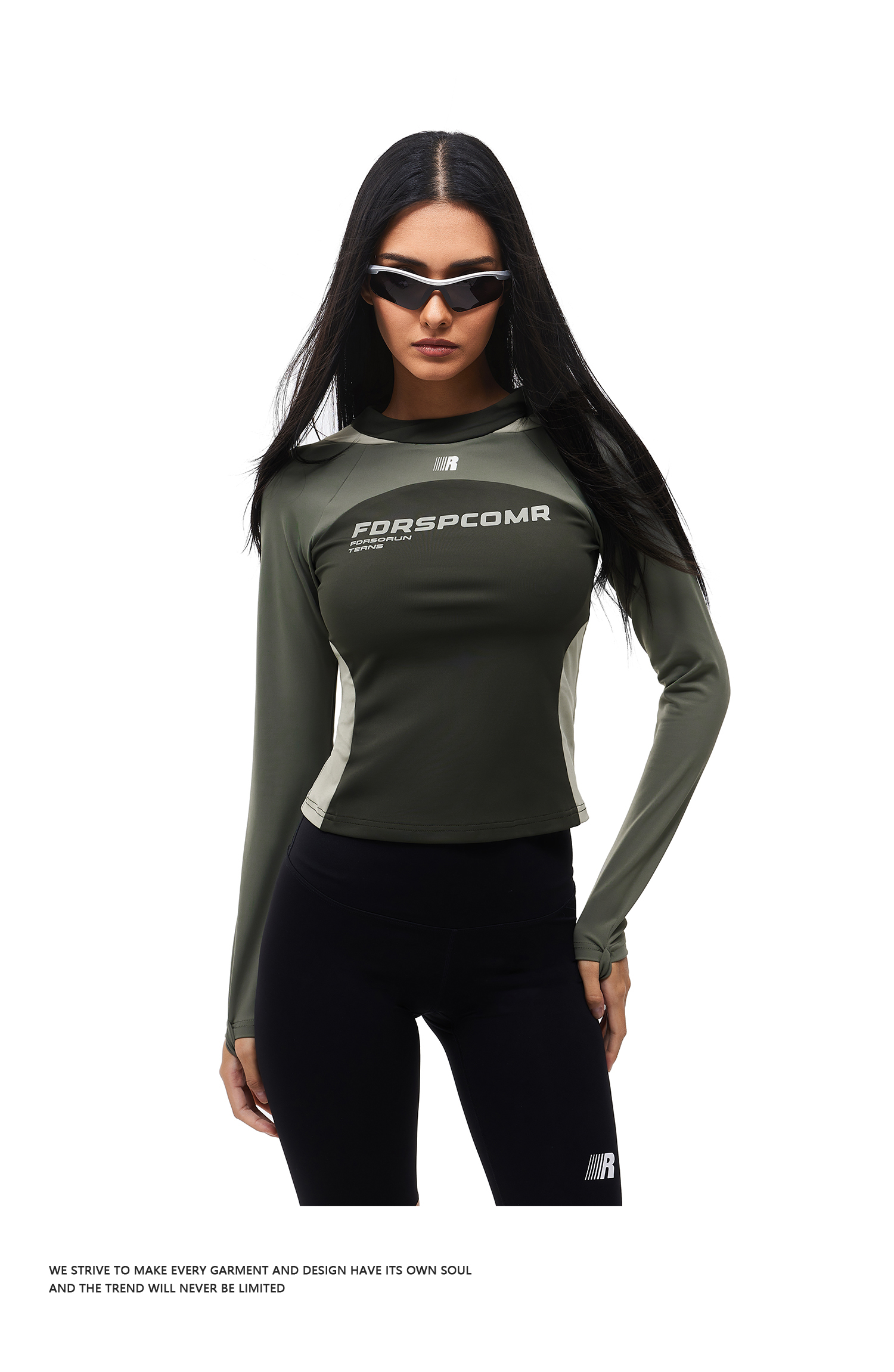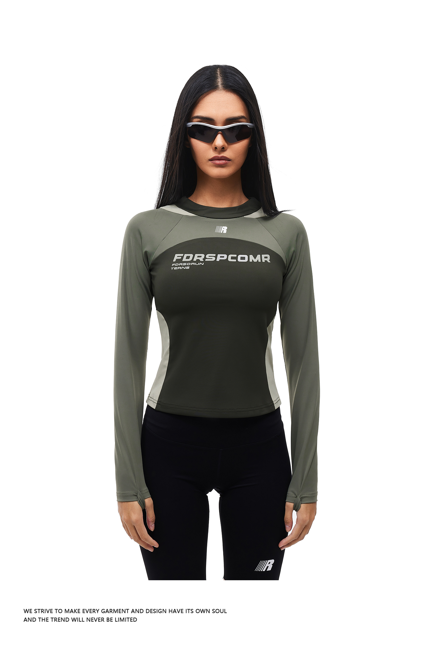 【178元任选3件】FDR官方店 R字撞色美式运动速干长袖t恤女秋季修身骑行上衣训练服