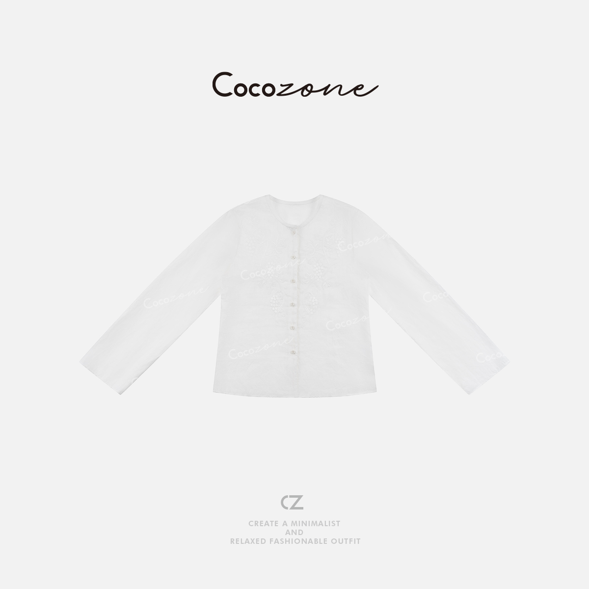 COCO ZONE 100亚麻新款设计感小众绣花长袖衬衫CD1A0382
