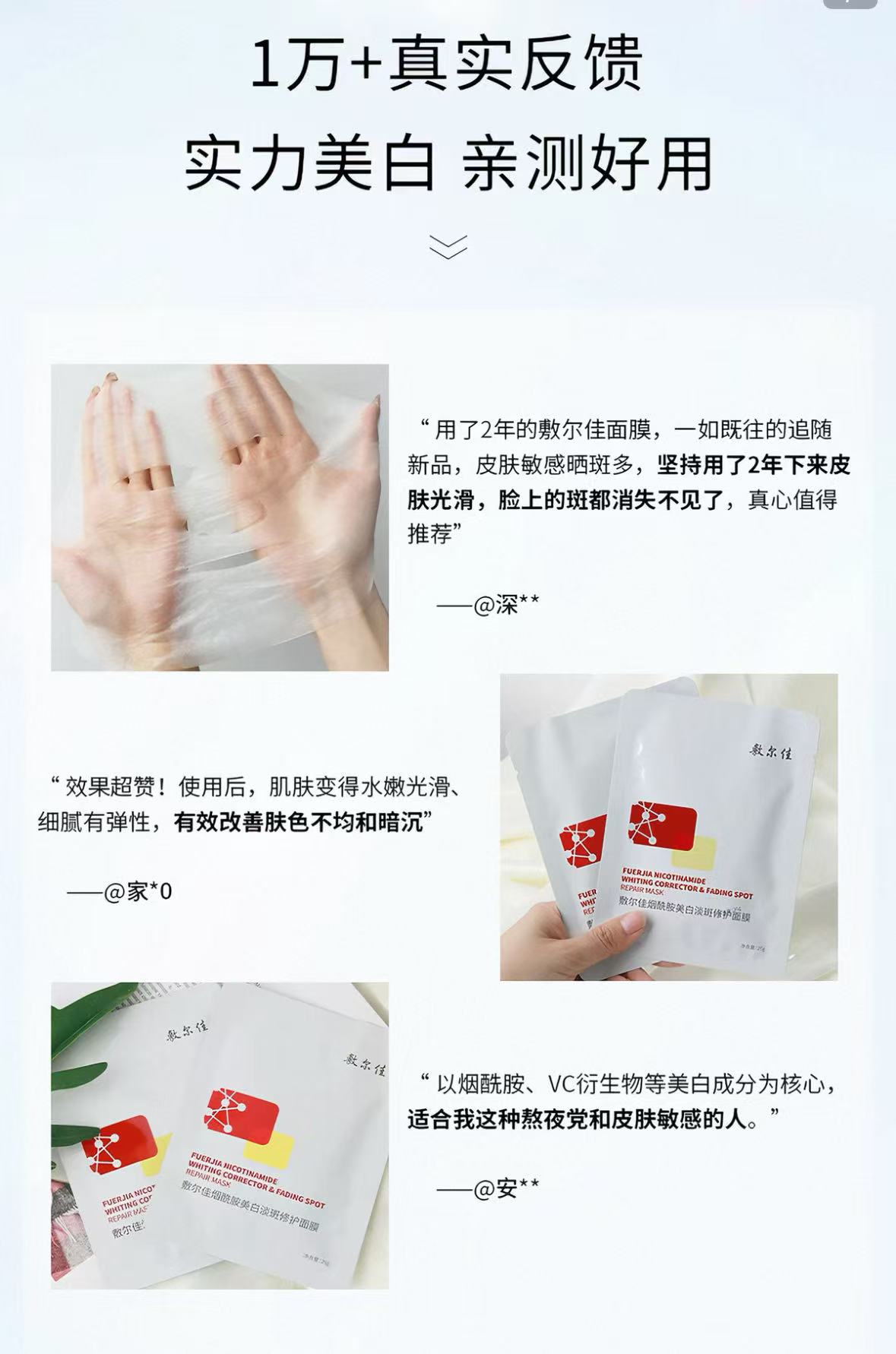 敷尔佳烟酰胺美白淡斑面膜补水美白褪黄暗沉提亮肤色温和保湿1盒/5片