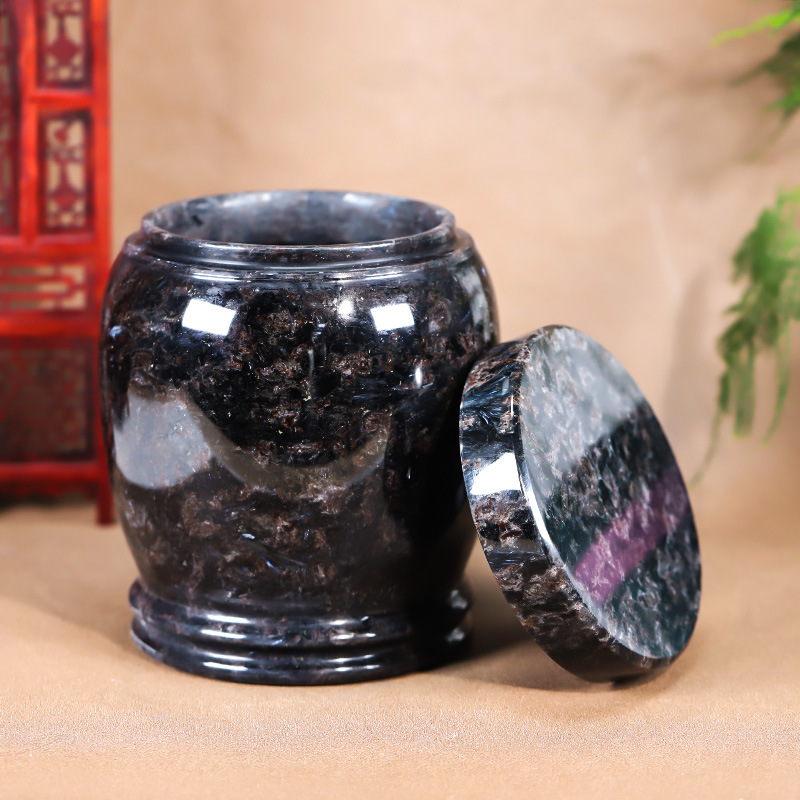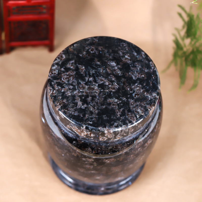 天然玉石骨灰坛黑色净面骨灰桶骨灰坛20*20cm