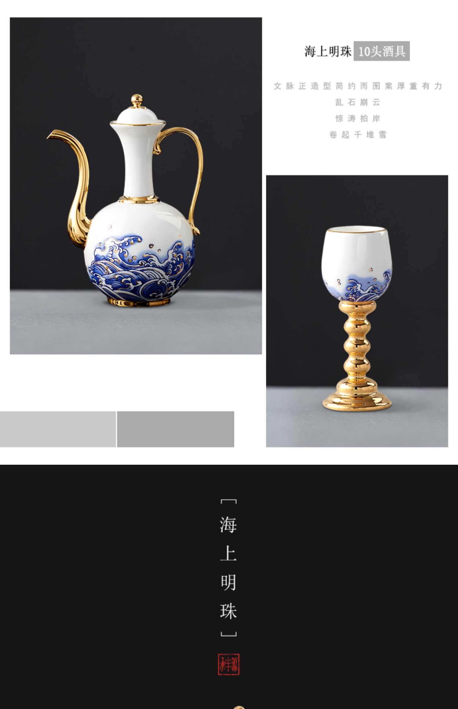 永丰源 先生瓷海上明珠 10头陶瓷白酒具套装烈酒高脚杯