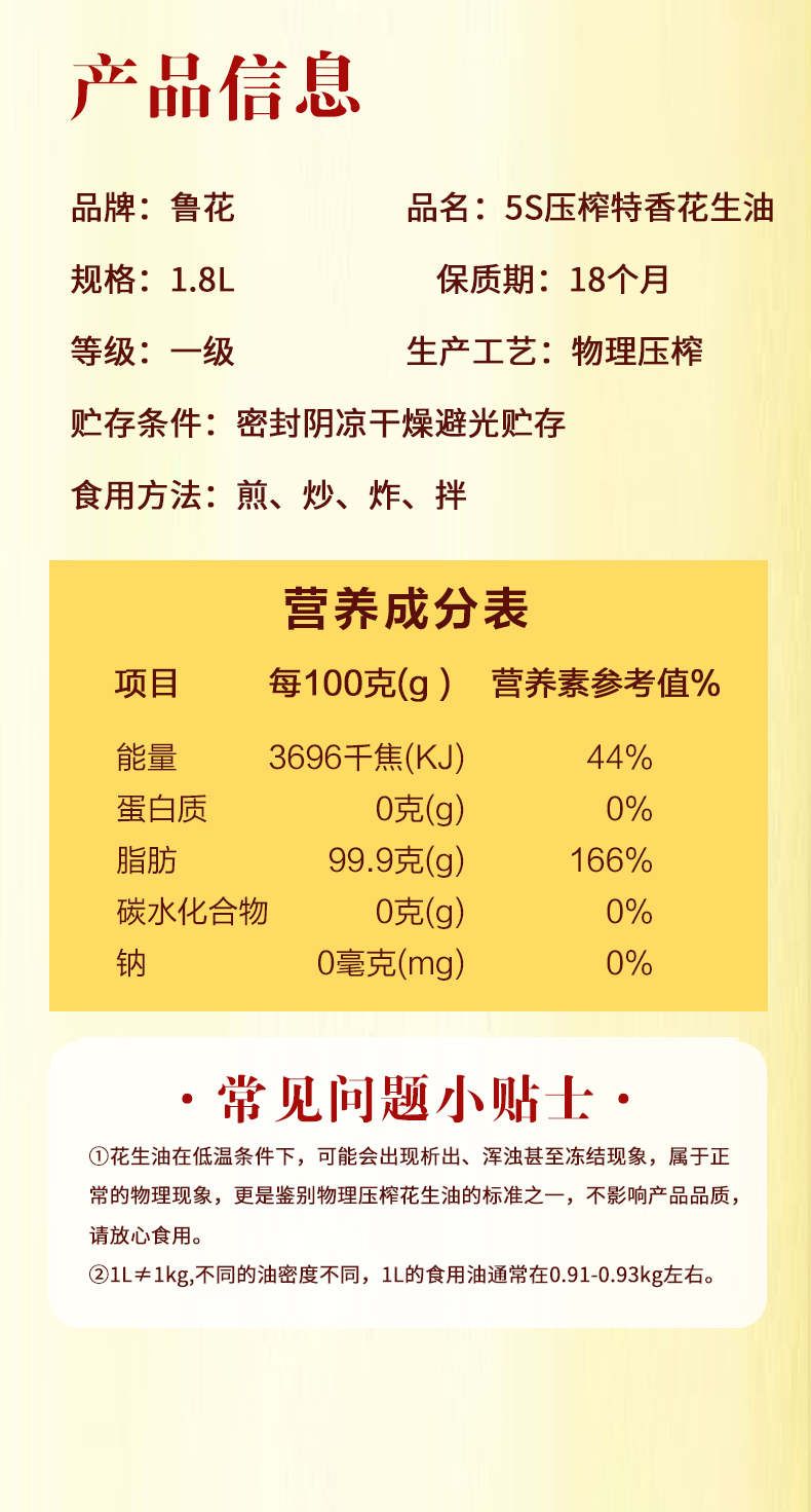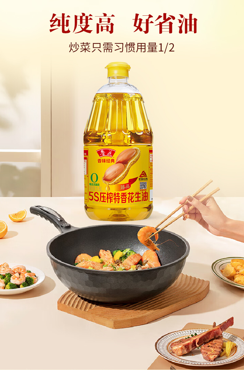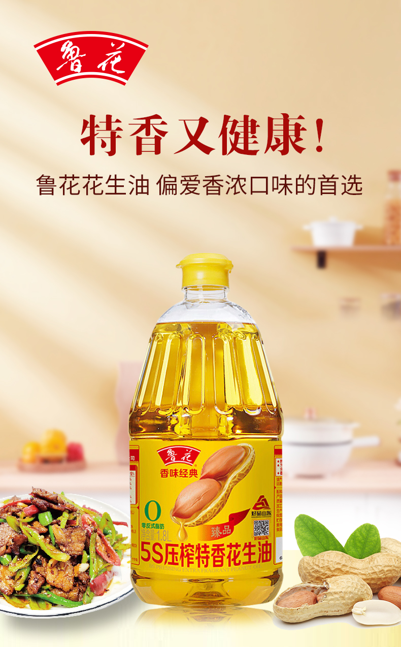 【绮】鲁花香味经典5S压榨特香花生油1.8L