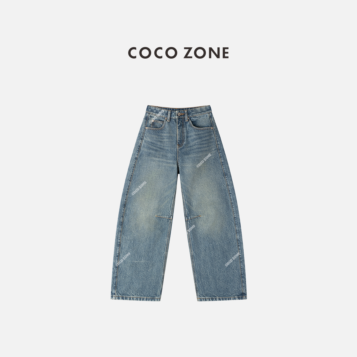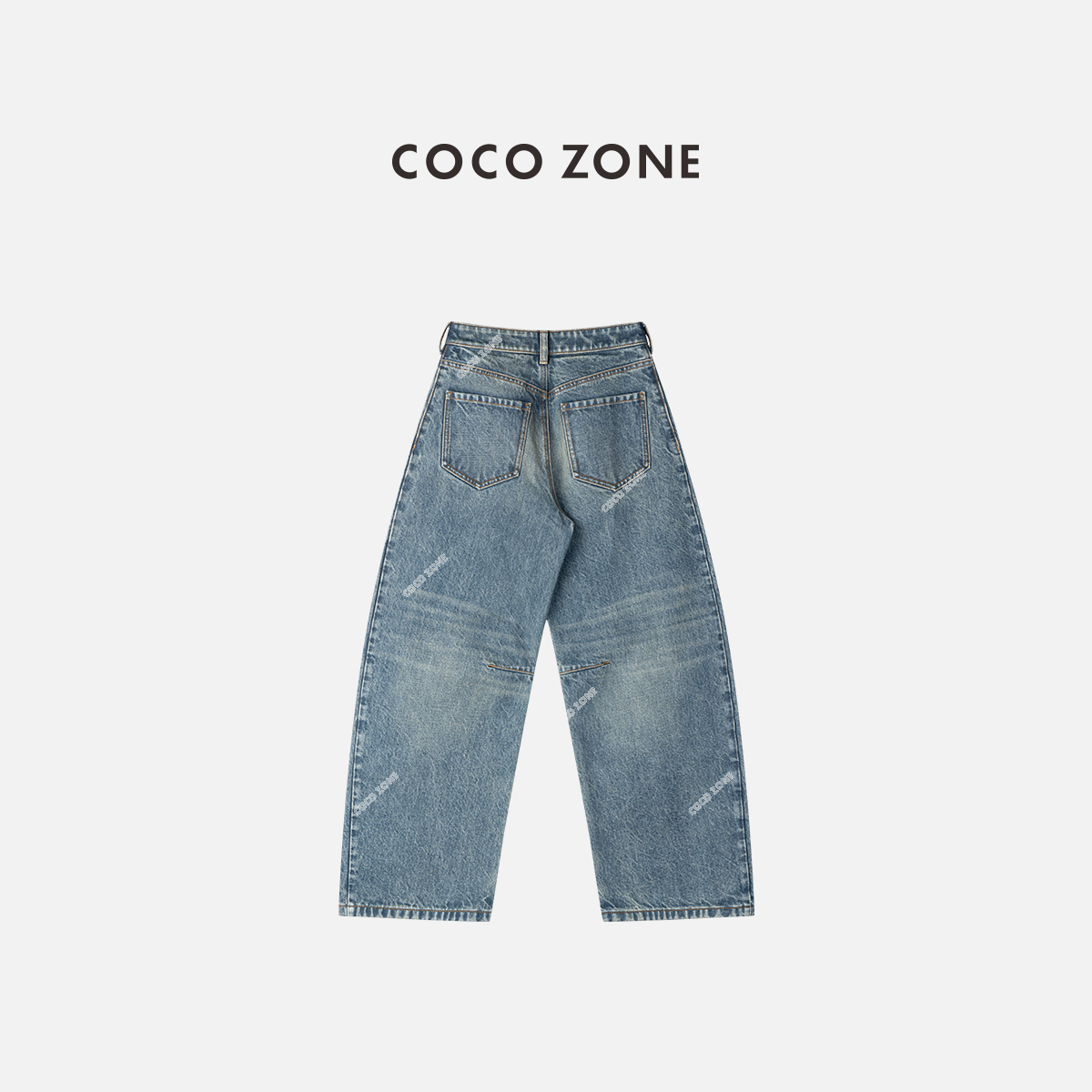 COCO ZONE 100棉美式复古显瘦水洗直筒牛仔裤ACD1A0102