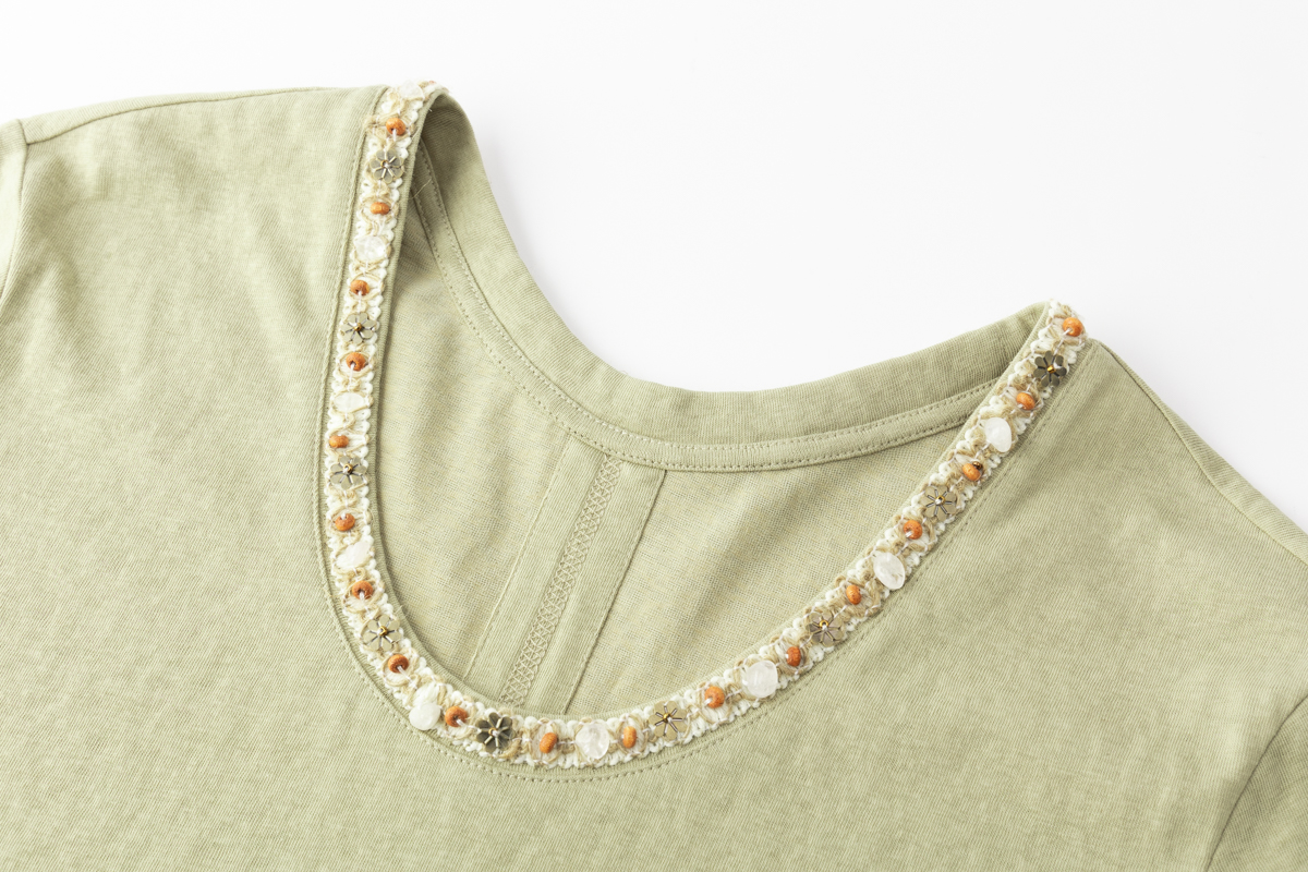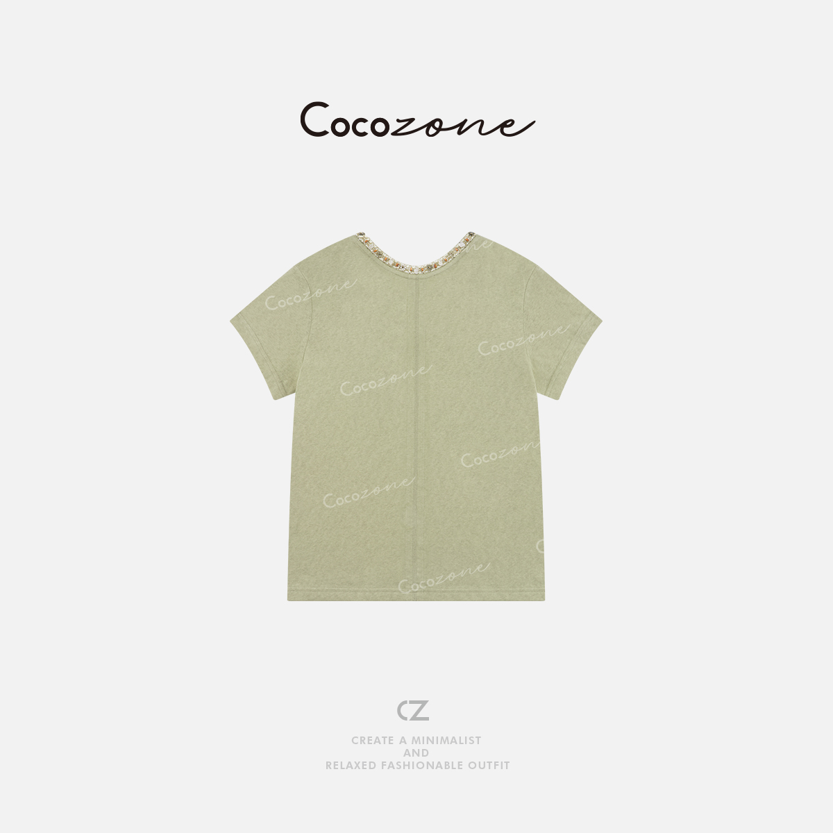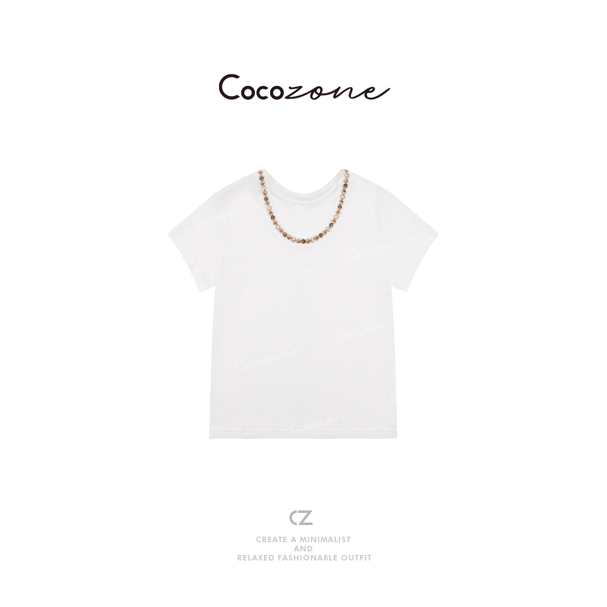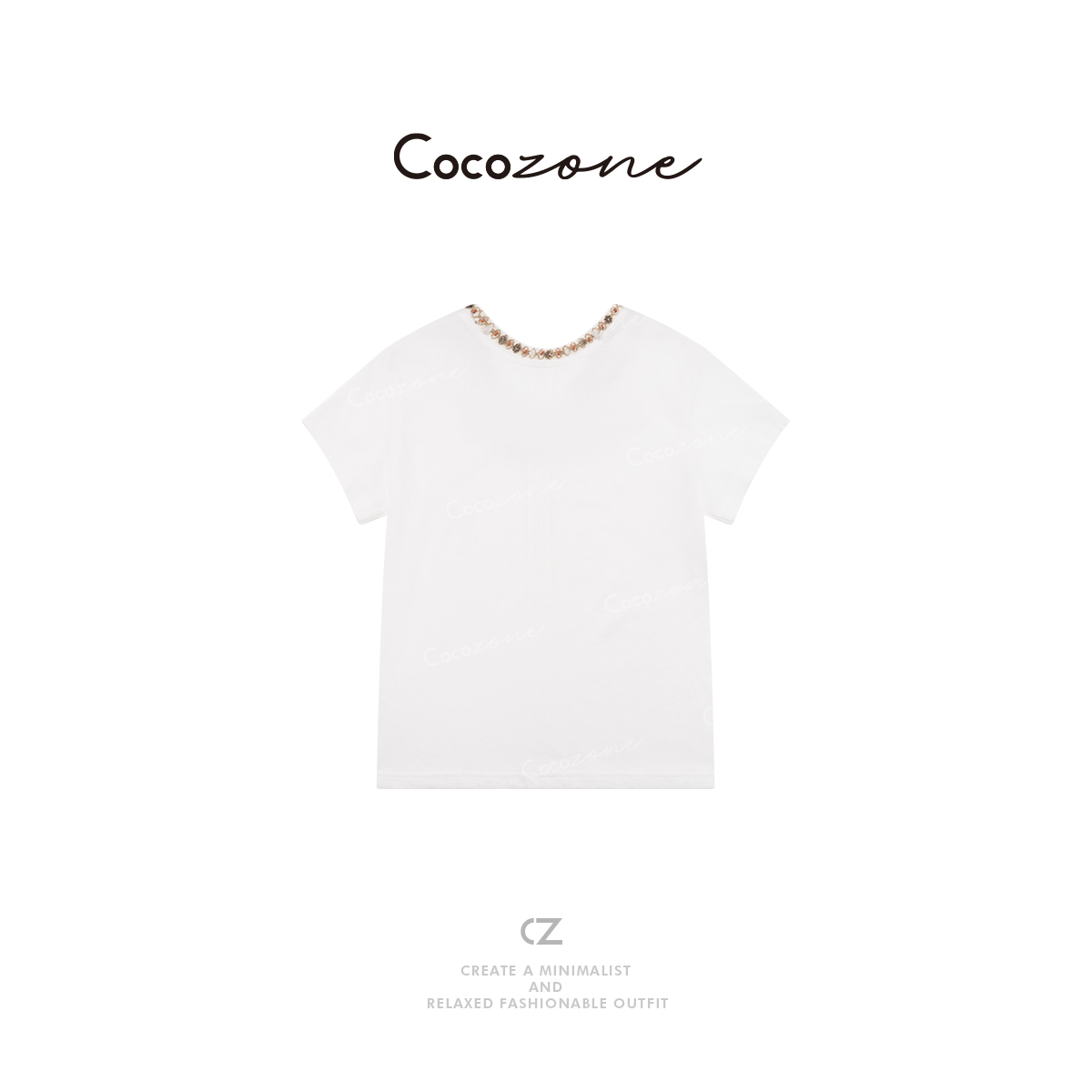 COCO ZONE 刘一一25新款圆领T恤钉珠打底圆领上衣CD1A0584