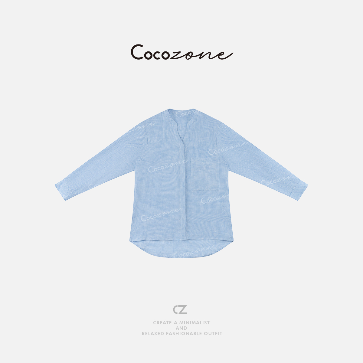 COCO ZONE 刘一一【100亚麻】简约V领暗扣舒适透气衬衣CD2A0616
