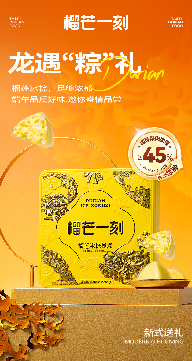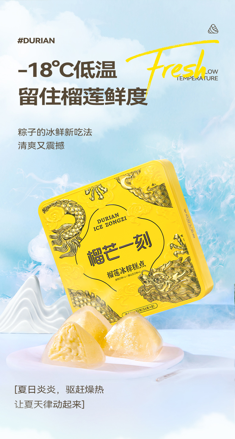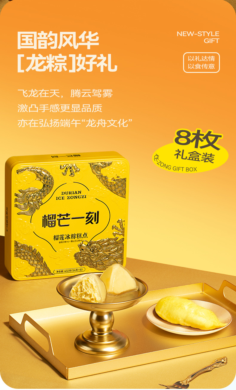 榴芒一刻榴莲冰粽铁盒装432g(金枕4枚+猫山王4枚)