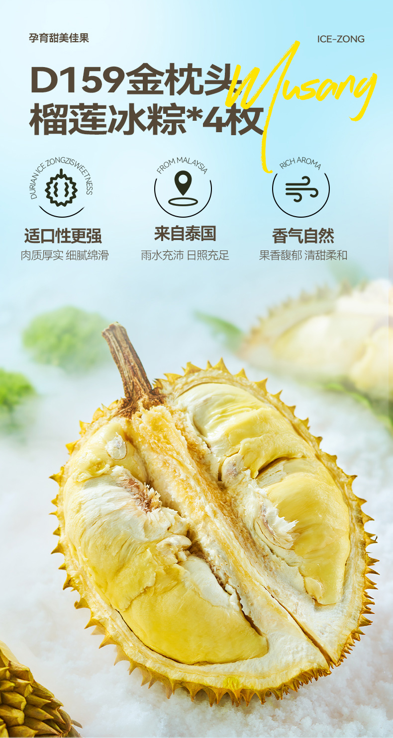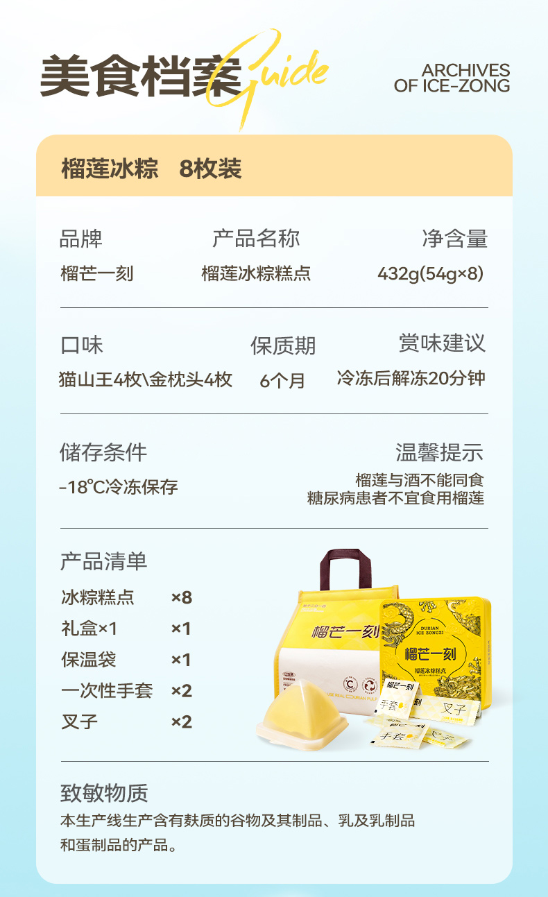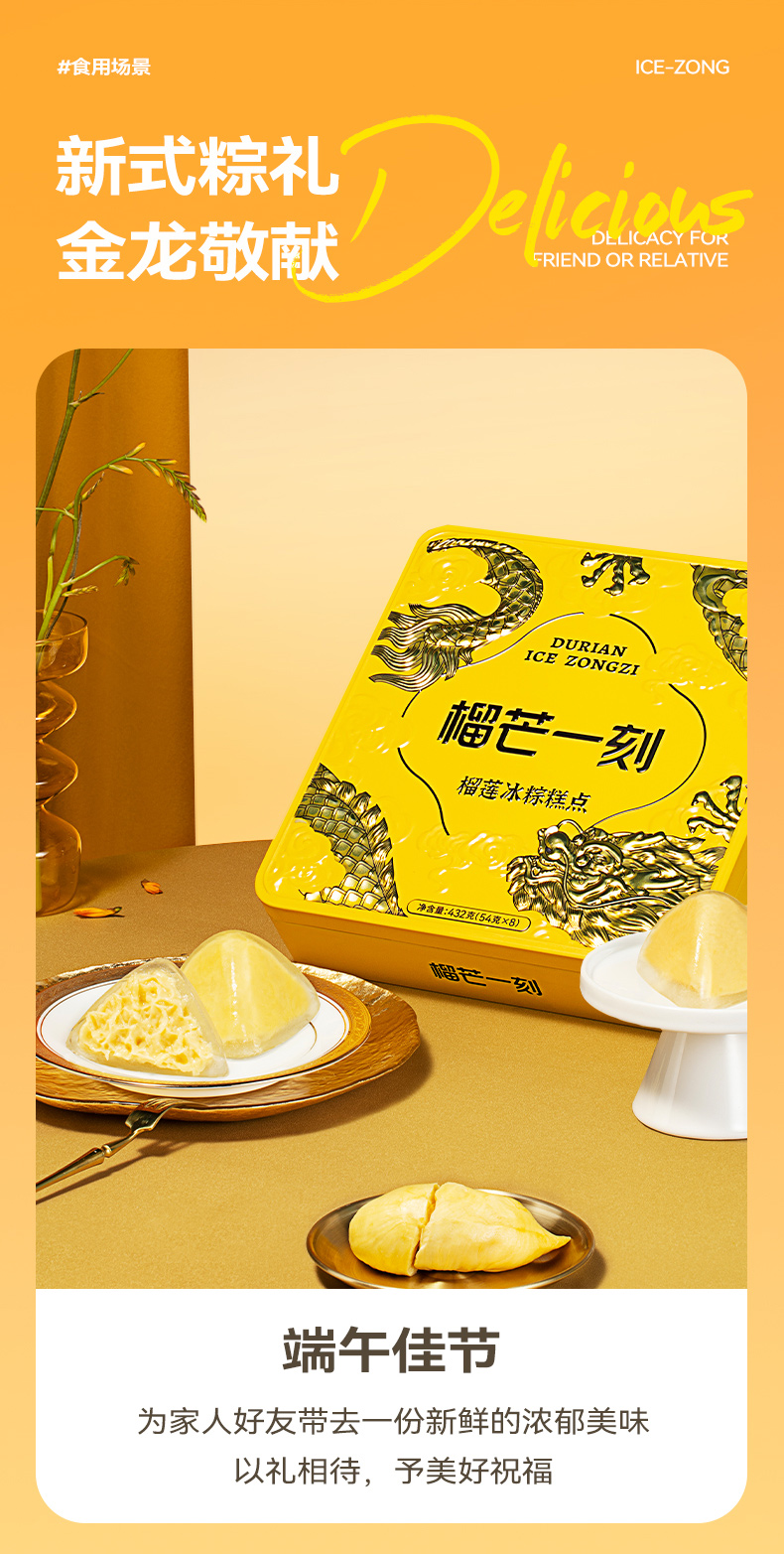 榴芒一刻榴莲冰粽铁盒装432g(金枕4枚+猫山王4枚)