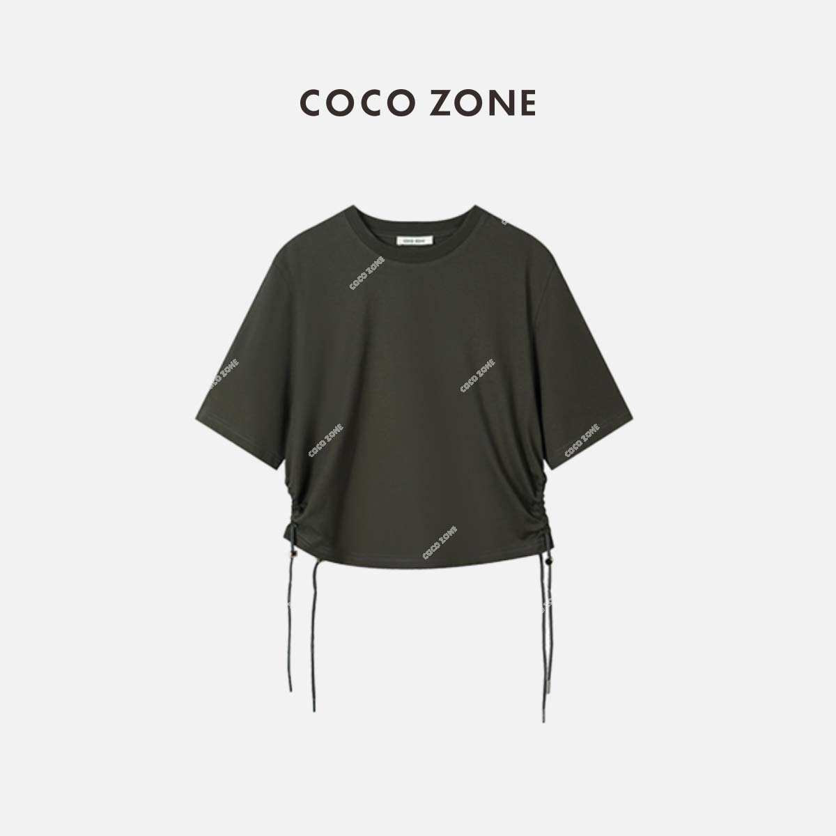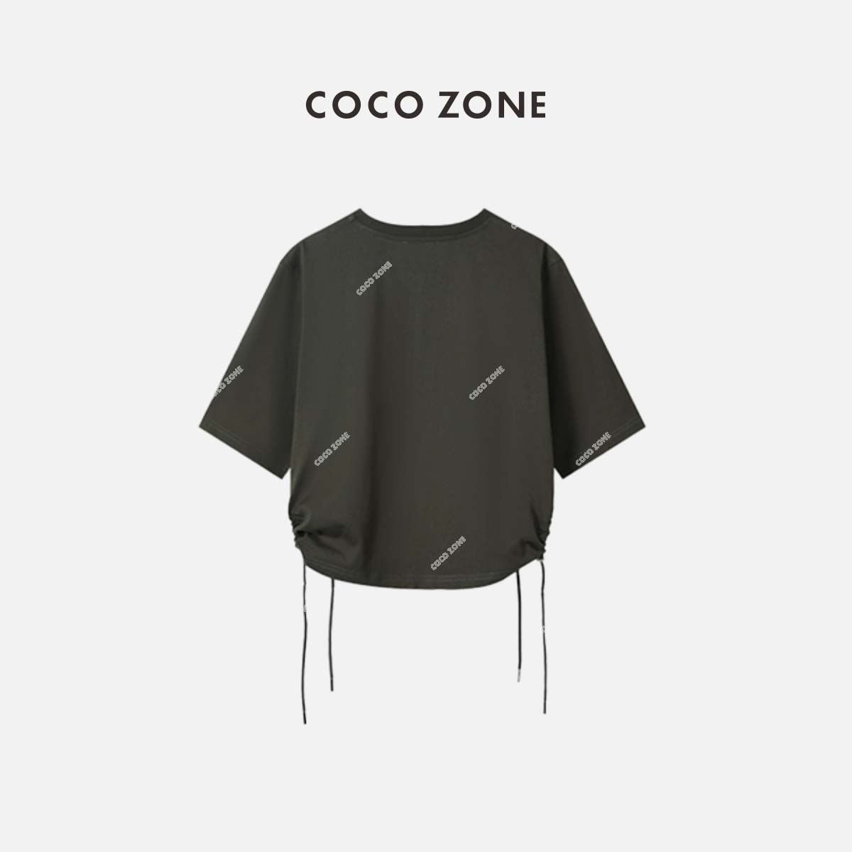 COCO ZONE 新款抽绳不规则收下摆设计圆领T恤 23C18423
