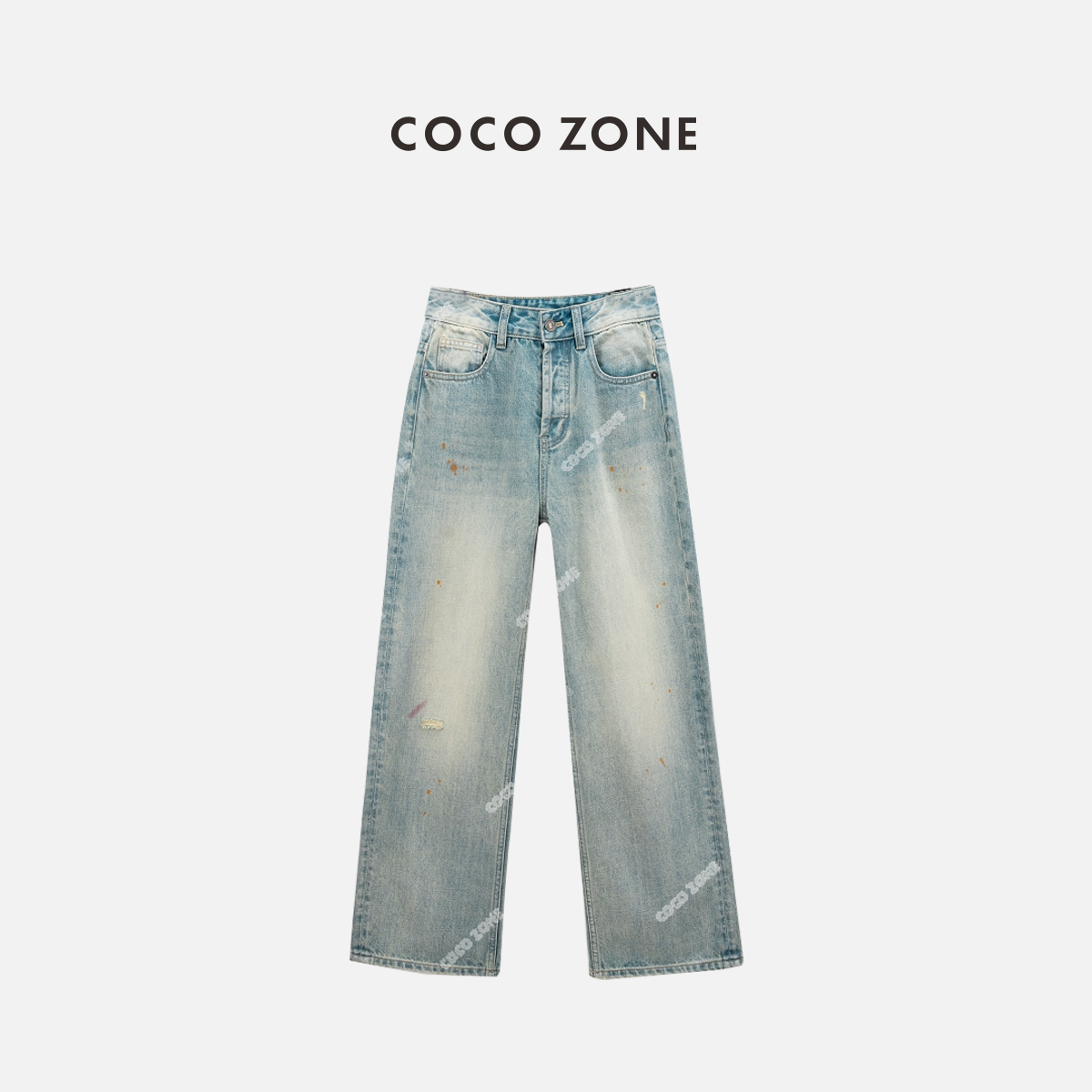 COCO ZONE”脏脏牛“ 复古水洗宽松牛仔裤百搭通勤阔腿裤CC2B1143