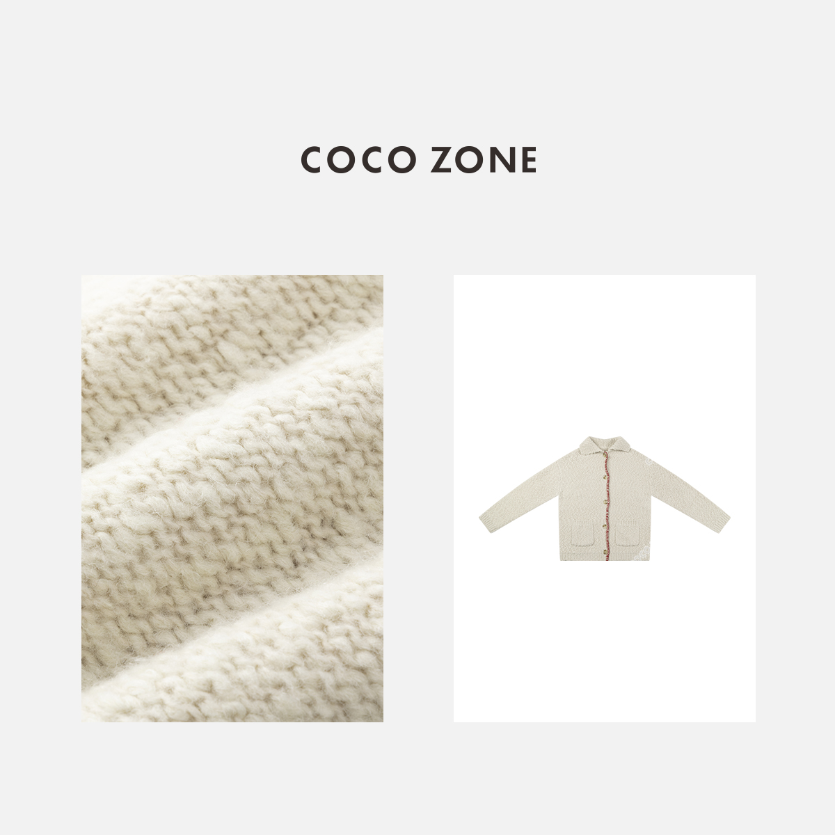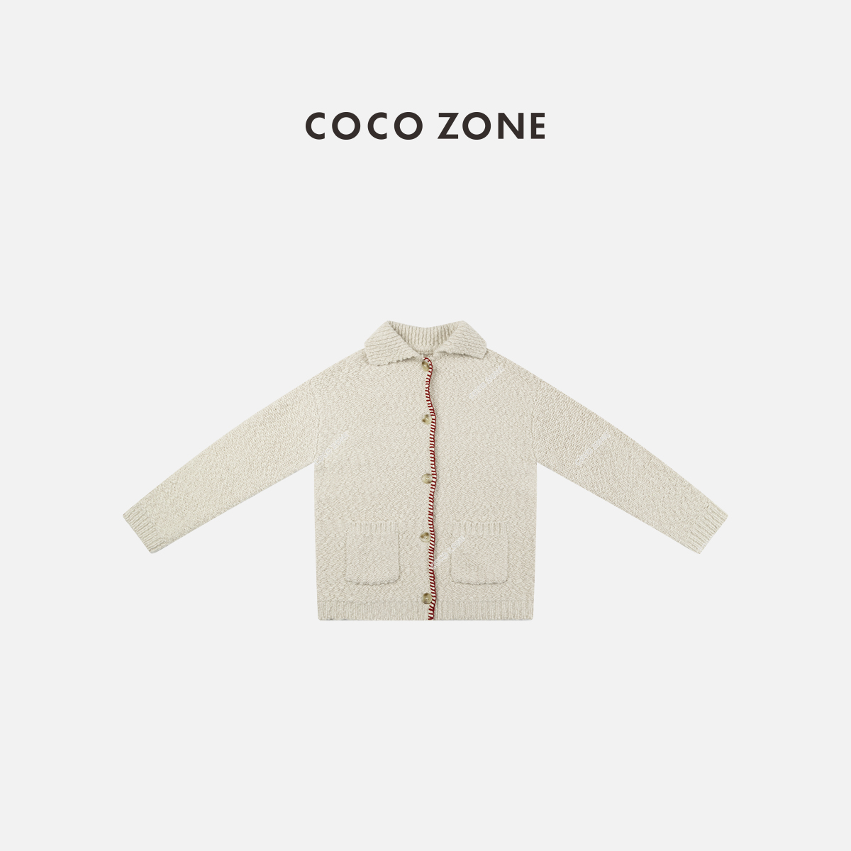 COCO ZONE 复古小香风翻领针织衫气质长袖上衣CC1C2141