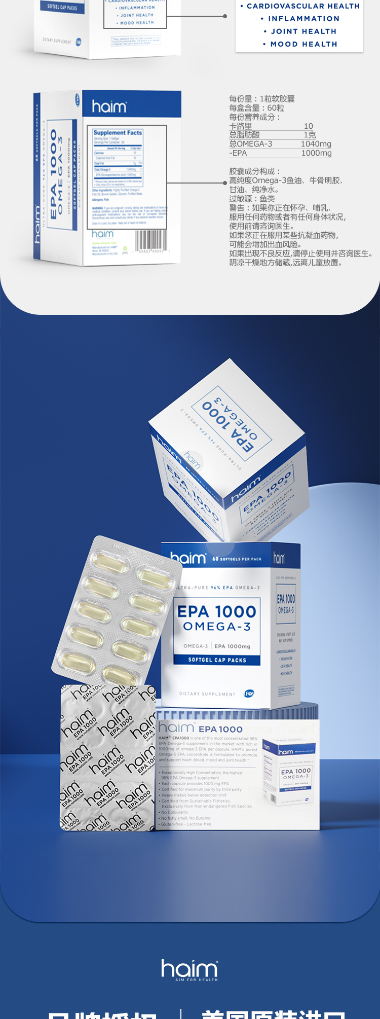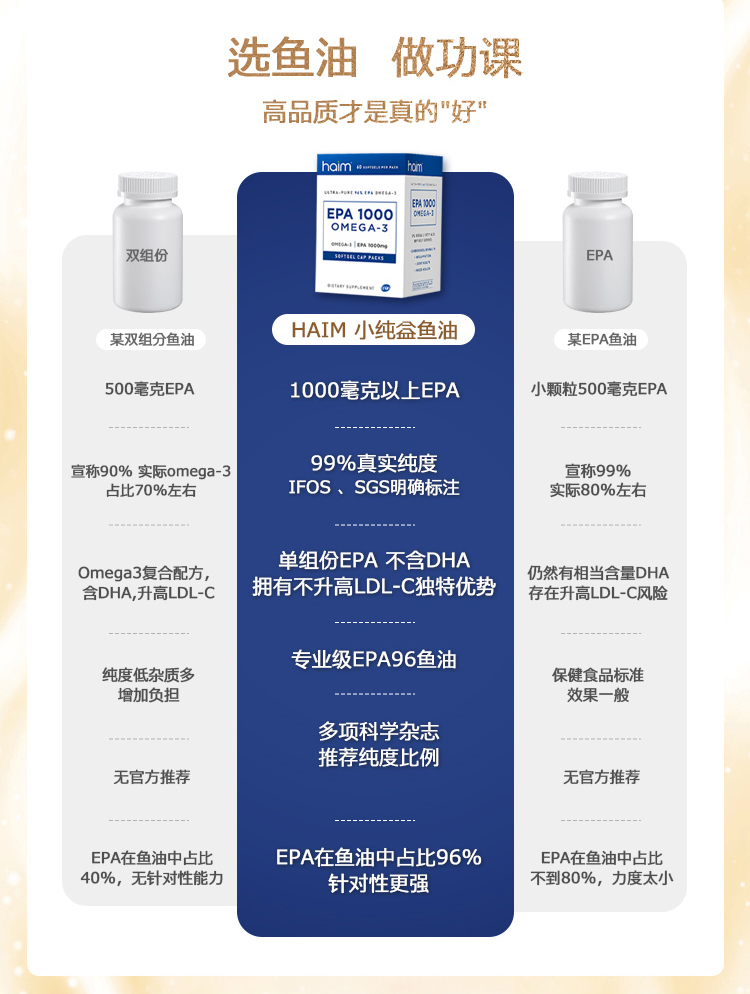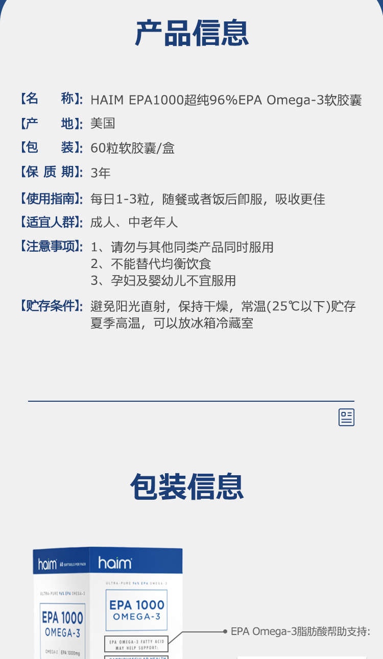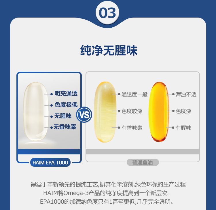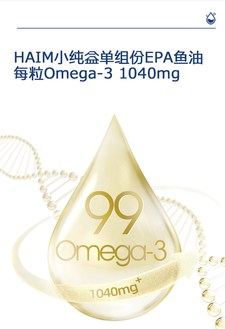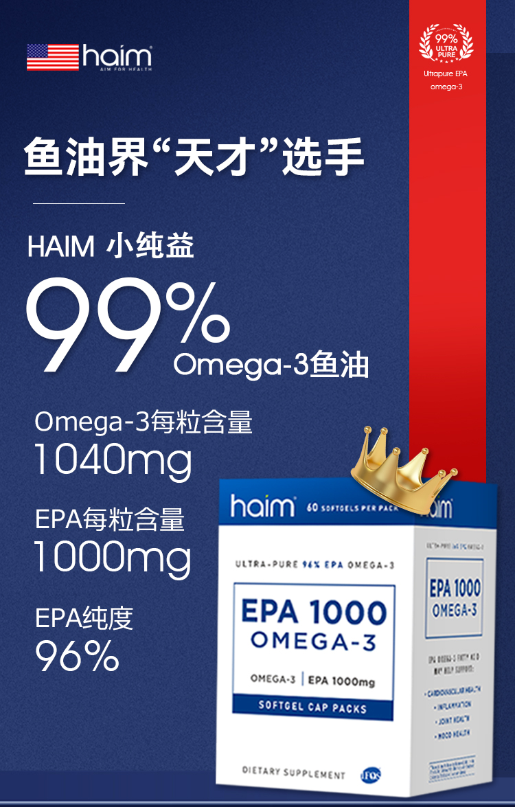 【品牌直发】HAIM小纯益EPA1000超纯96%EPA高纯度99Omega-3深海鱼油胶囊60粒