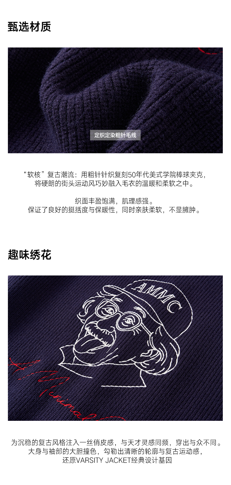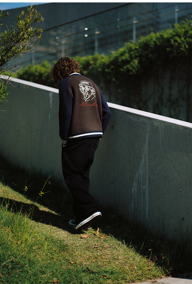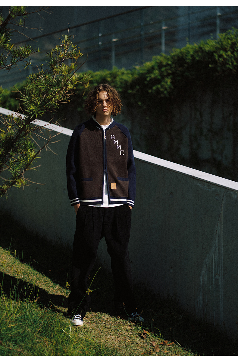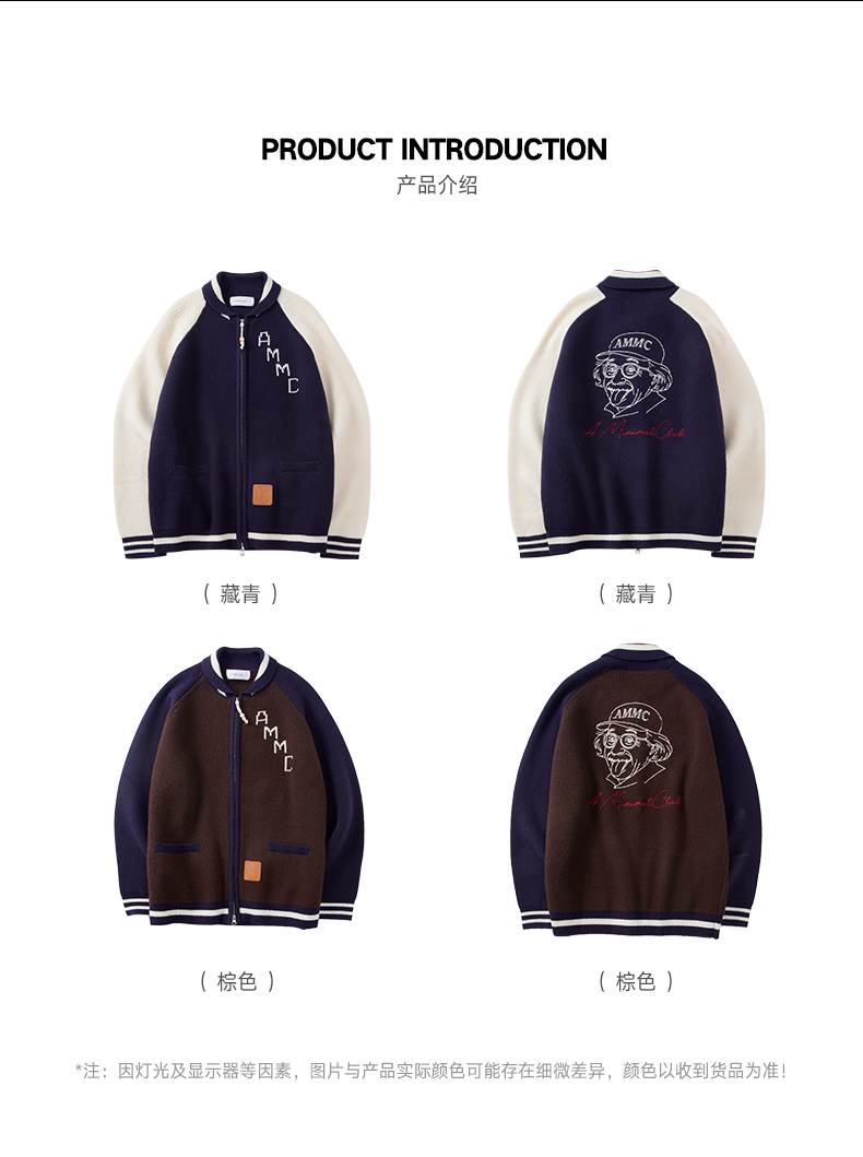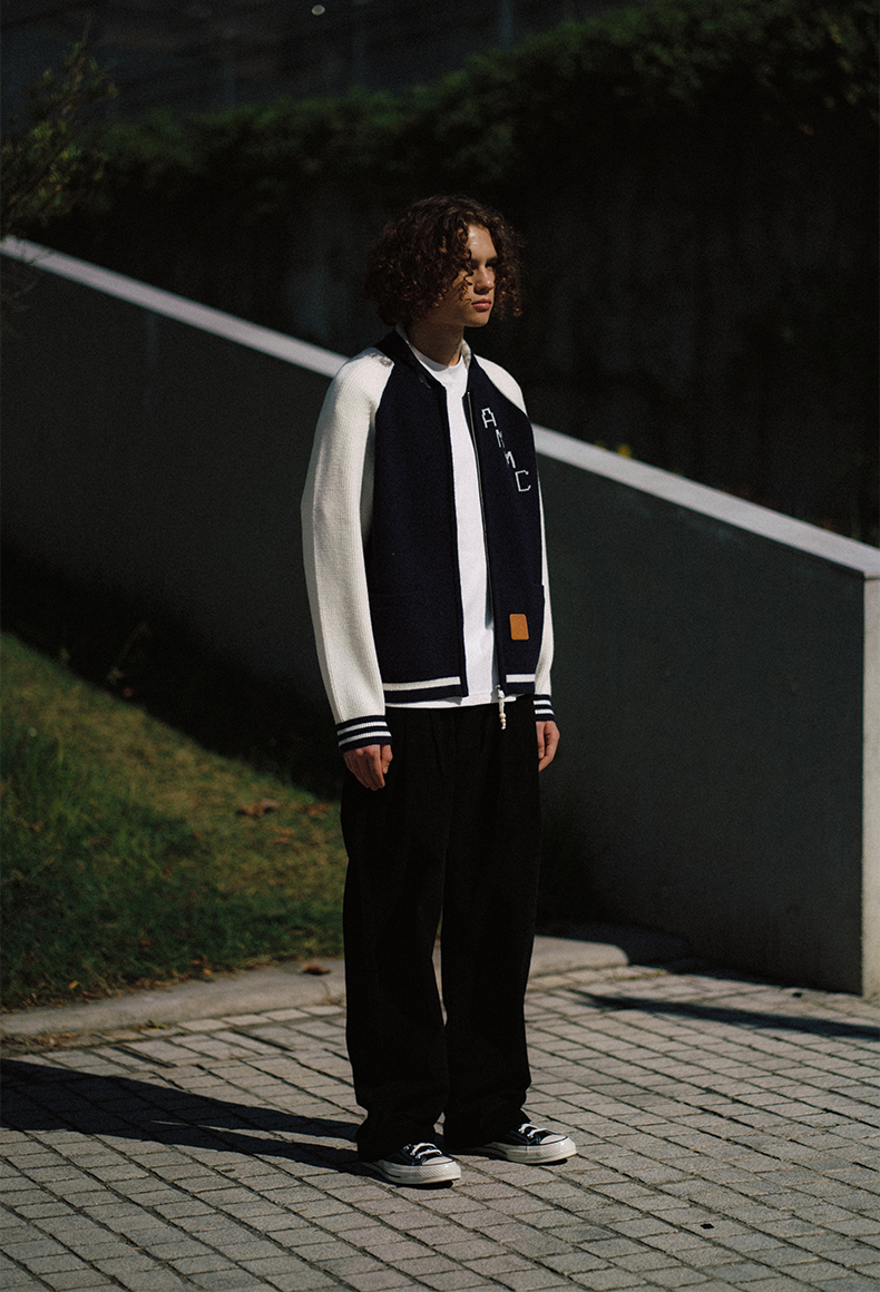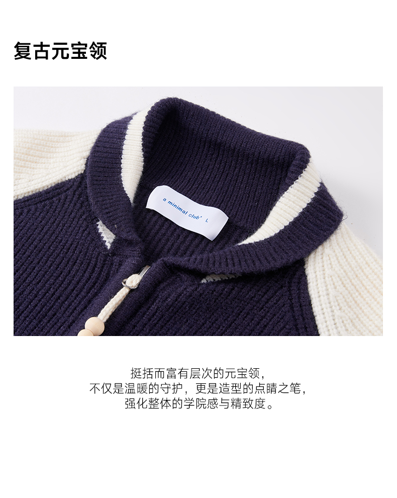 a minimal club复古撞色元宝领针织棒球服定织定染粗针冬AM5BSW01