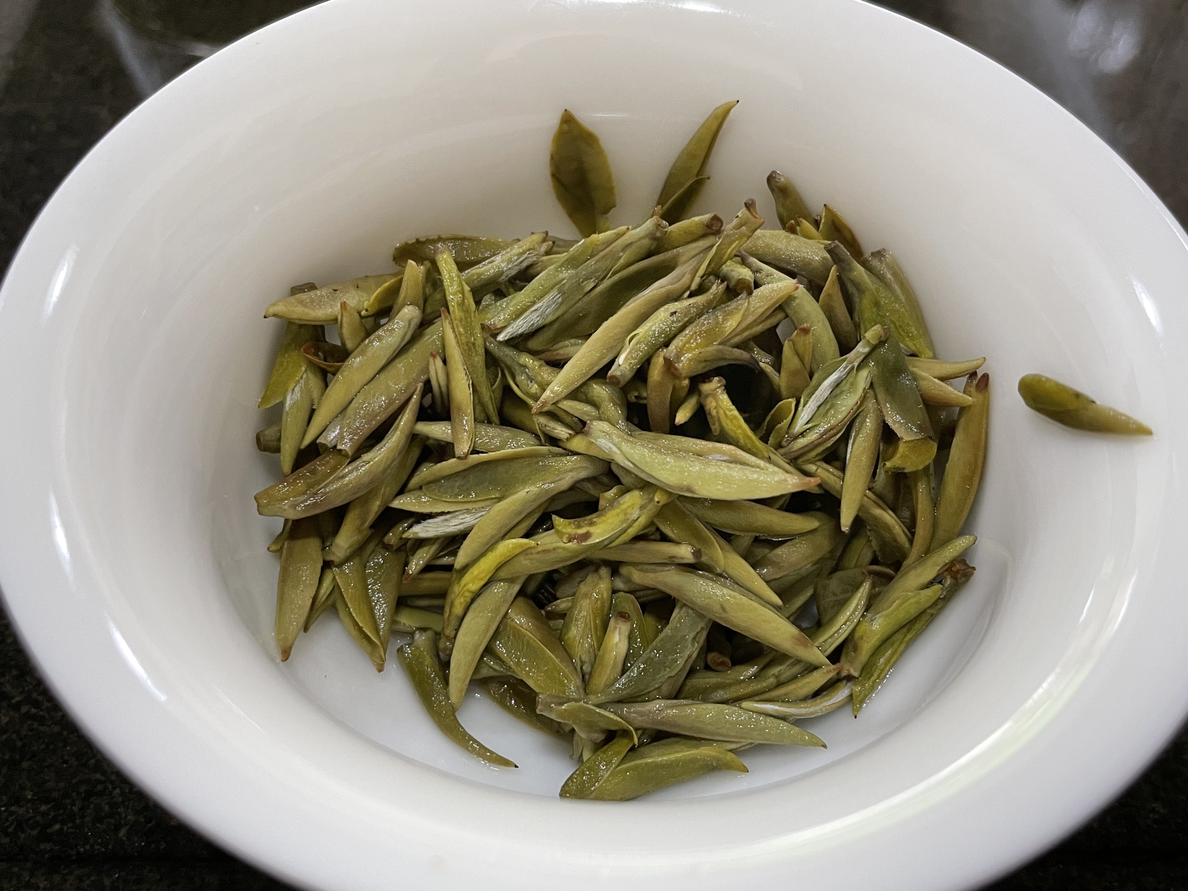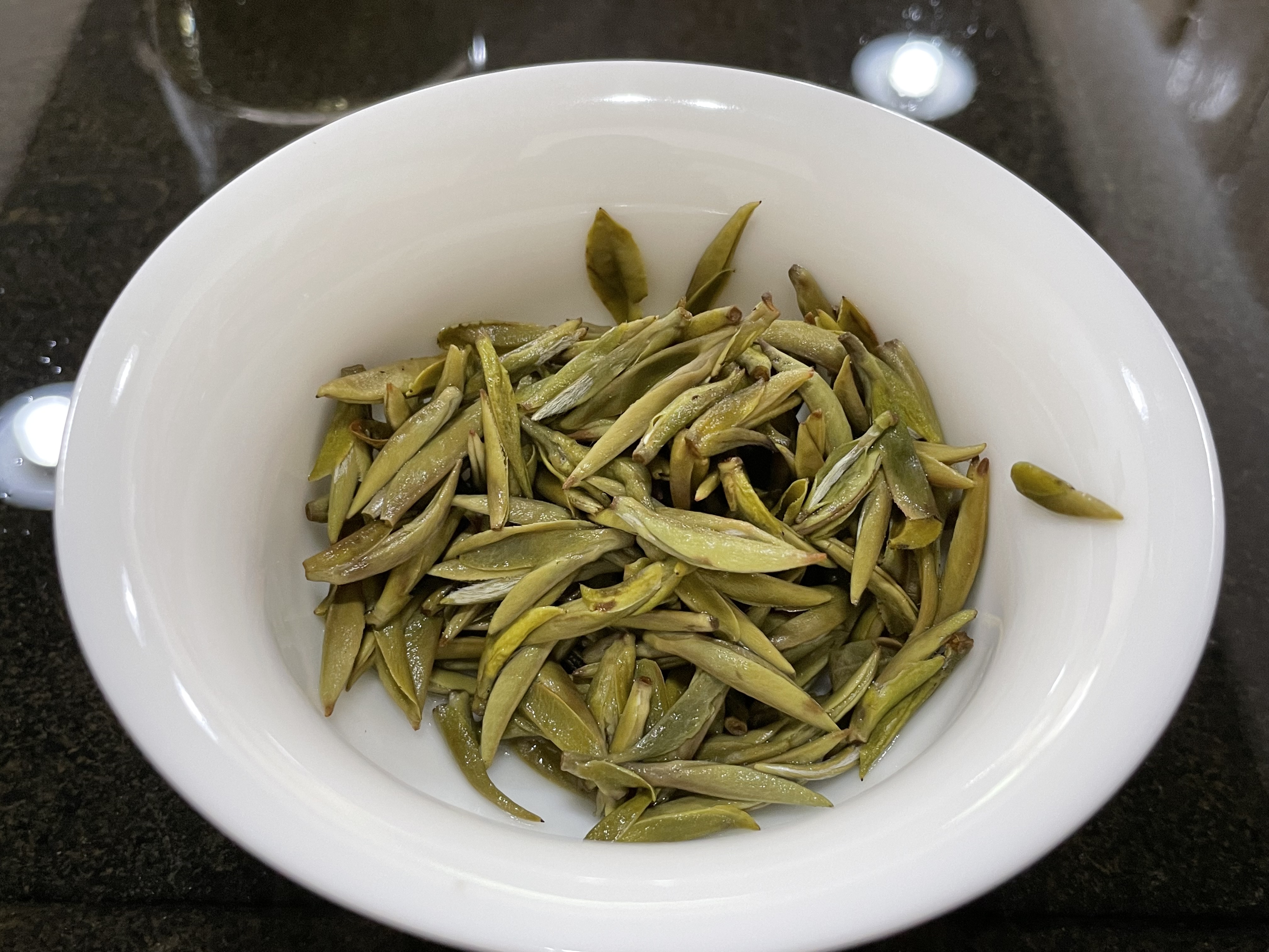 第四道:慢慢冲,慢慢泡,不急于让所有芽头触碰开水,这样的用意就是检查品质,检查是否夹生,