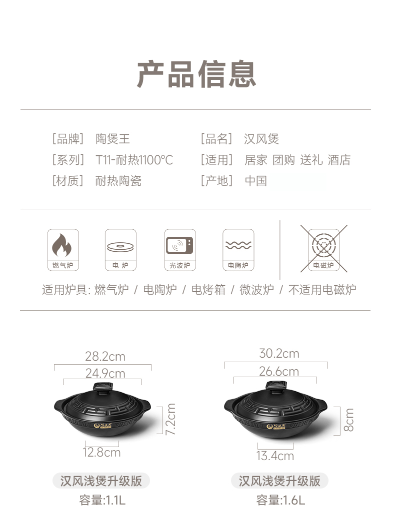 【陶煲王汉风浅煲深煲】可干烧陶瓷耐热煲仔饭沙锅家用炖汤砂锅煲汤煲