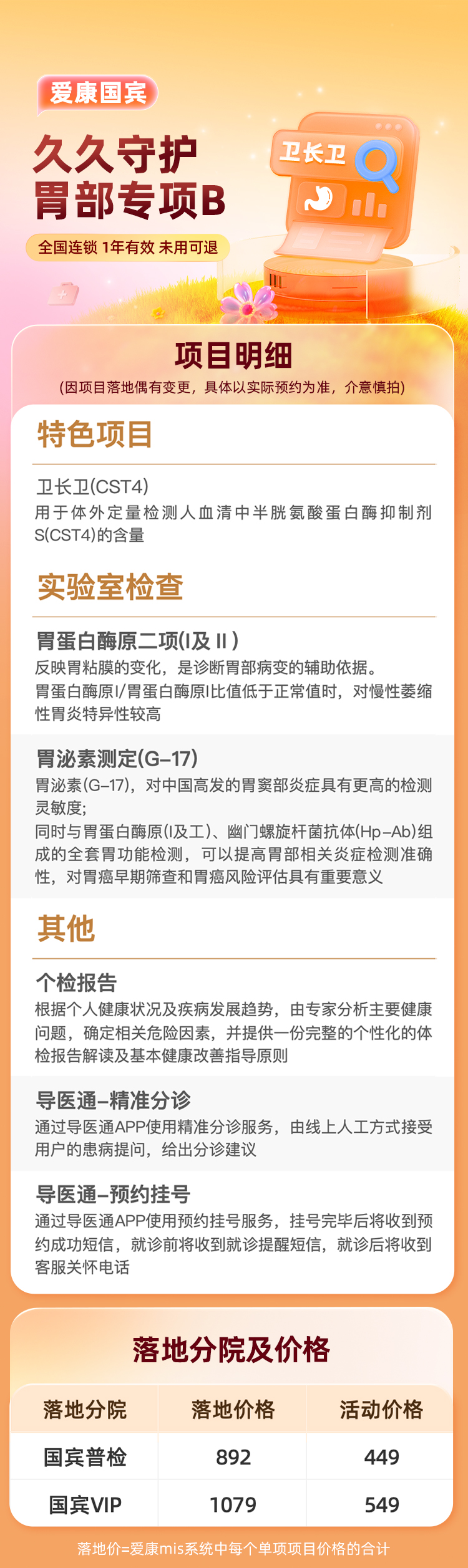 【卫长卫+胃蛋白酶原二项+胃泌素】爱康 久久守护胃部专项B