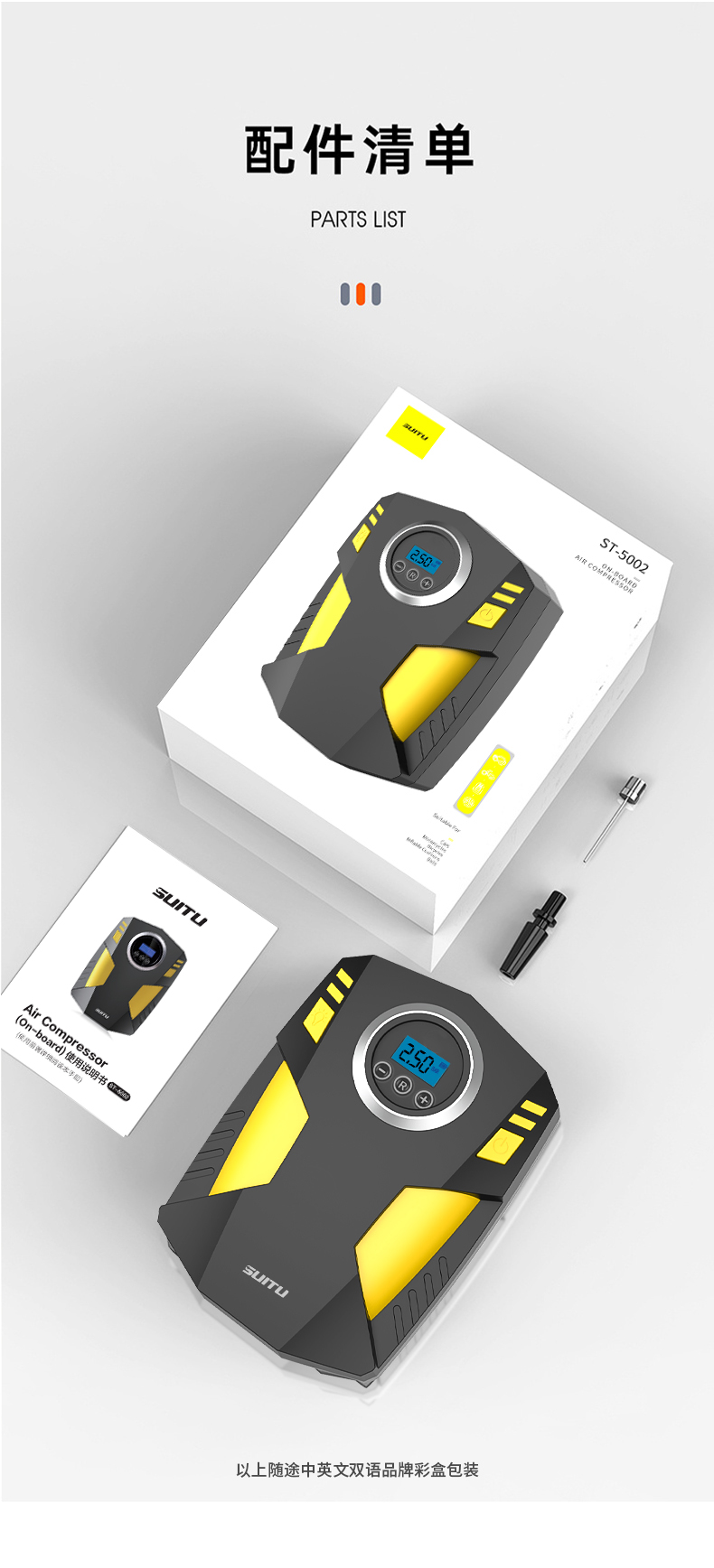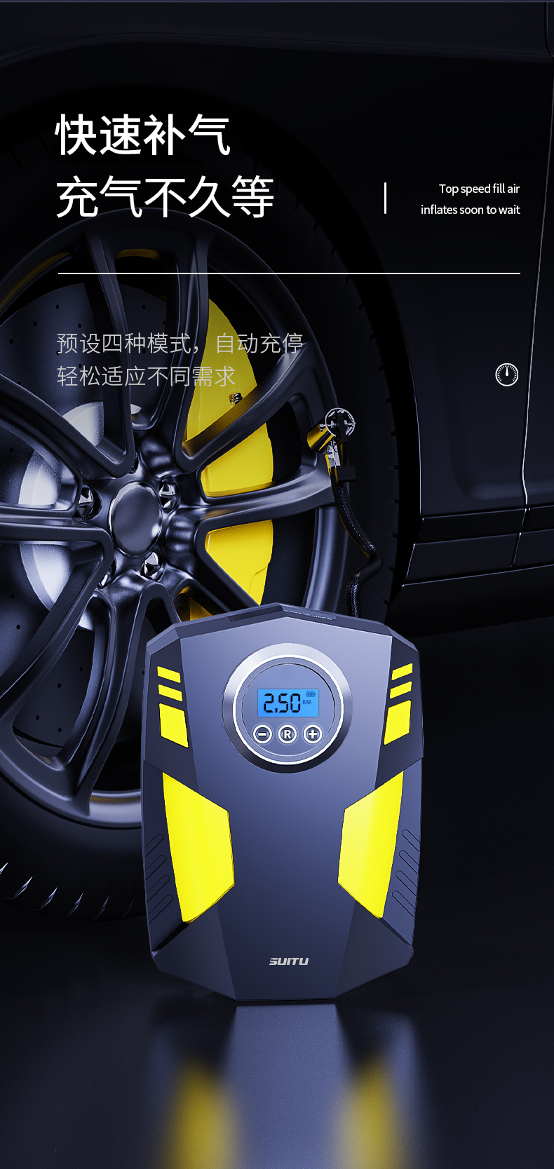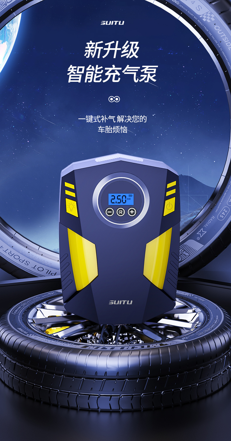 SUITU随途 汽车充气泵便携智能数显充气泵 手持式打气泵 ST5002