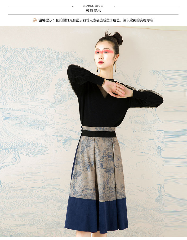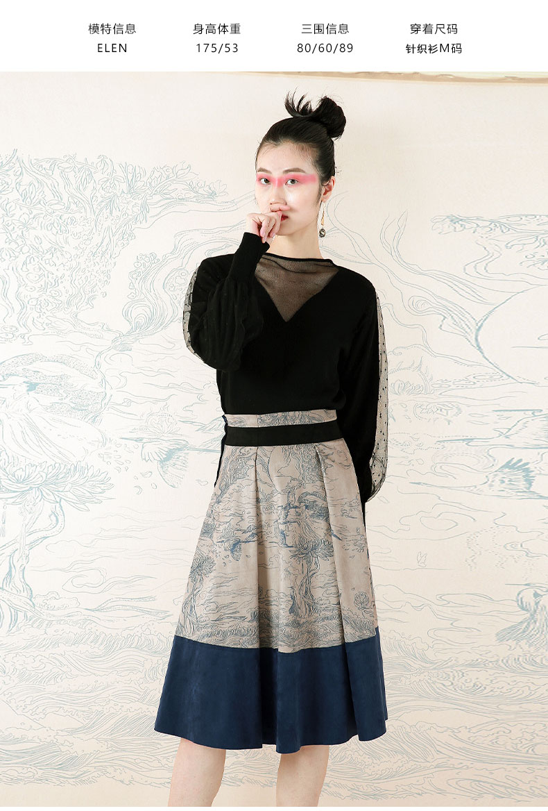 【伯妮斯茵】V领通透网纱飘逸泡泡袖针织衫--修姱--浪漫觉醒《离骚》1E5282