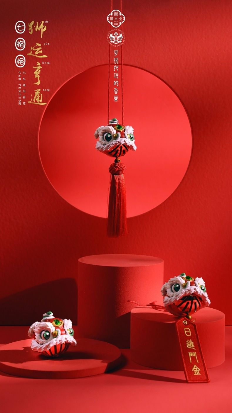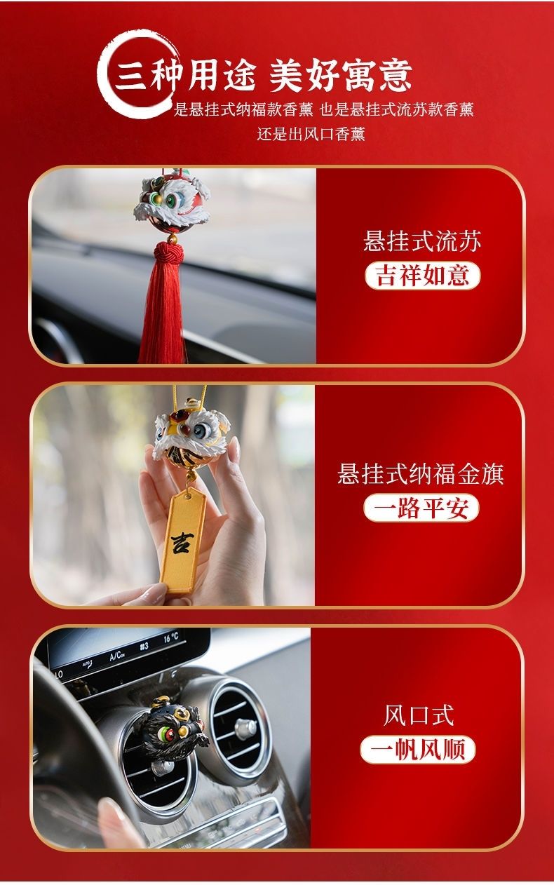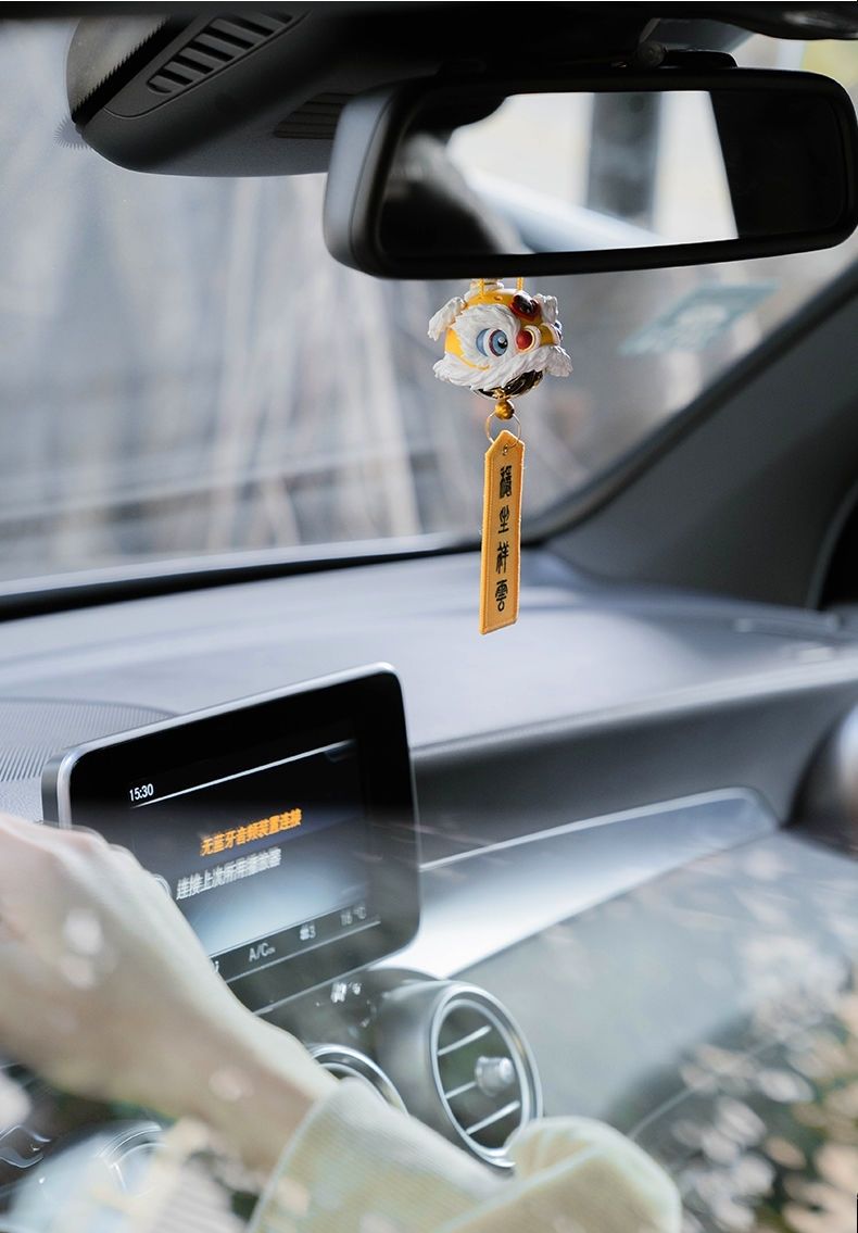 汽车挂件醒狮貔貅后视镜吊坠高档车载香薰香水车内车饰挂礼盒套装