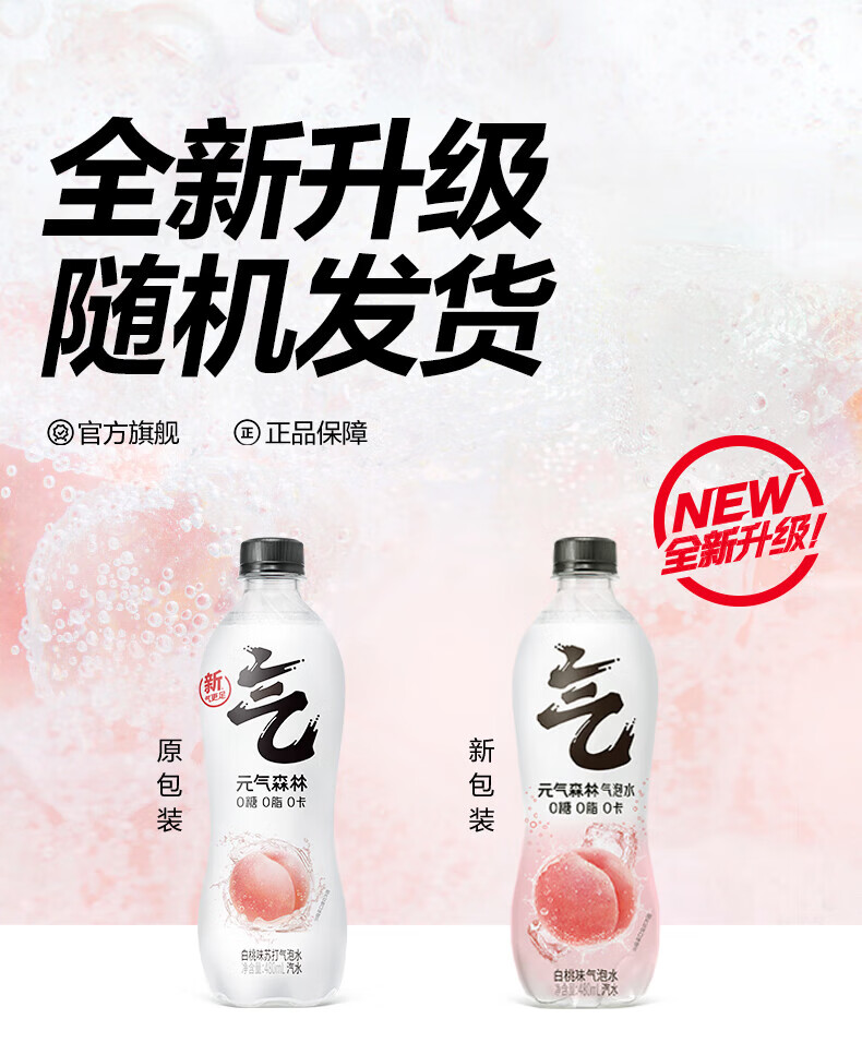 元气森林白桃味气泡水0糖0脂0卡汽水饮料480mL