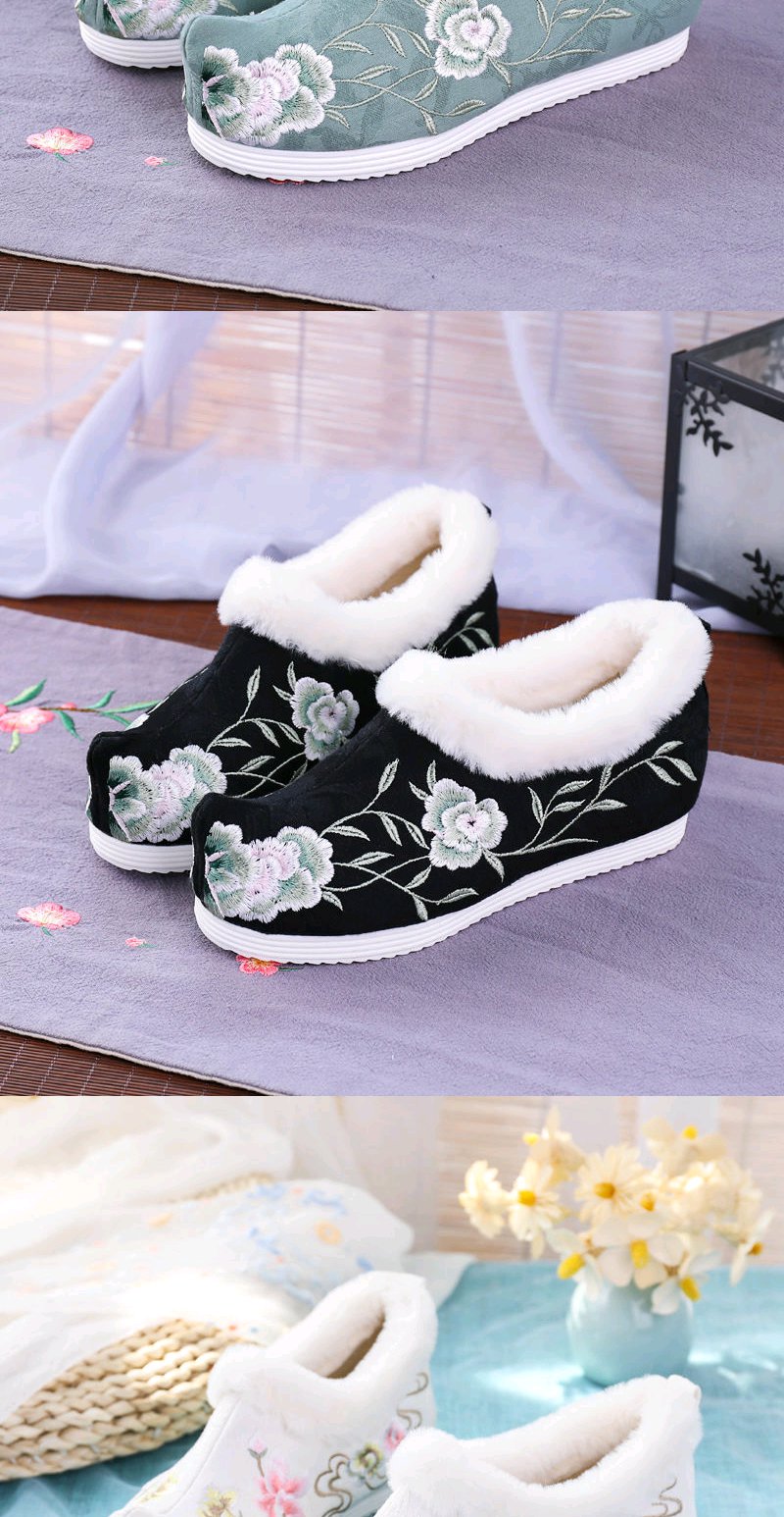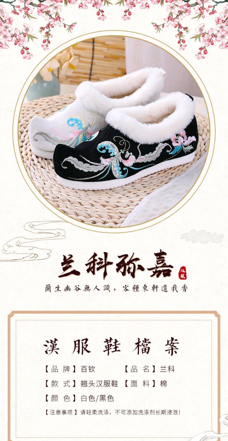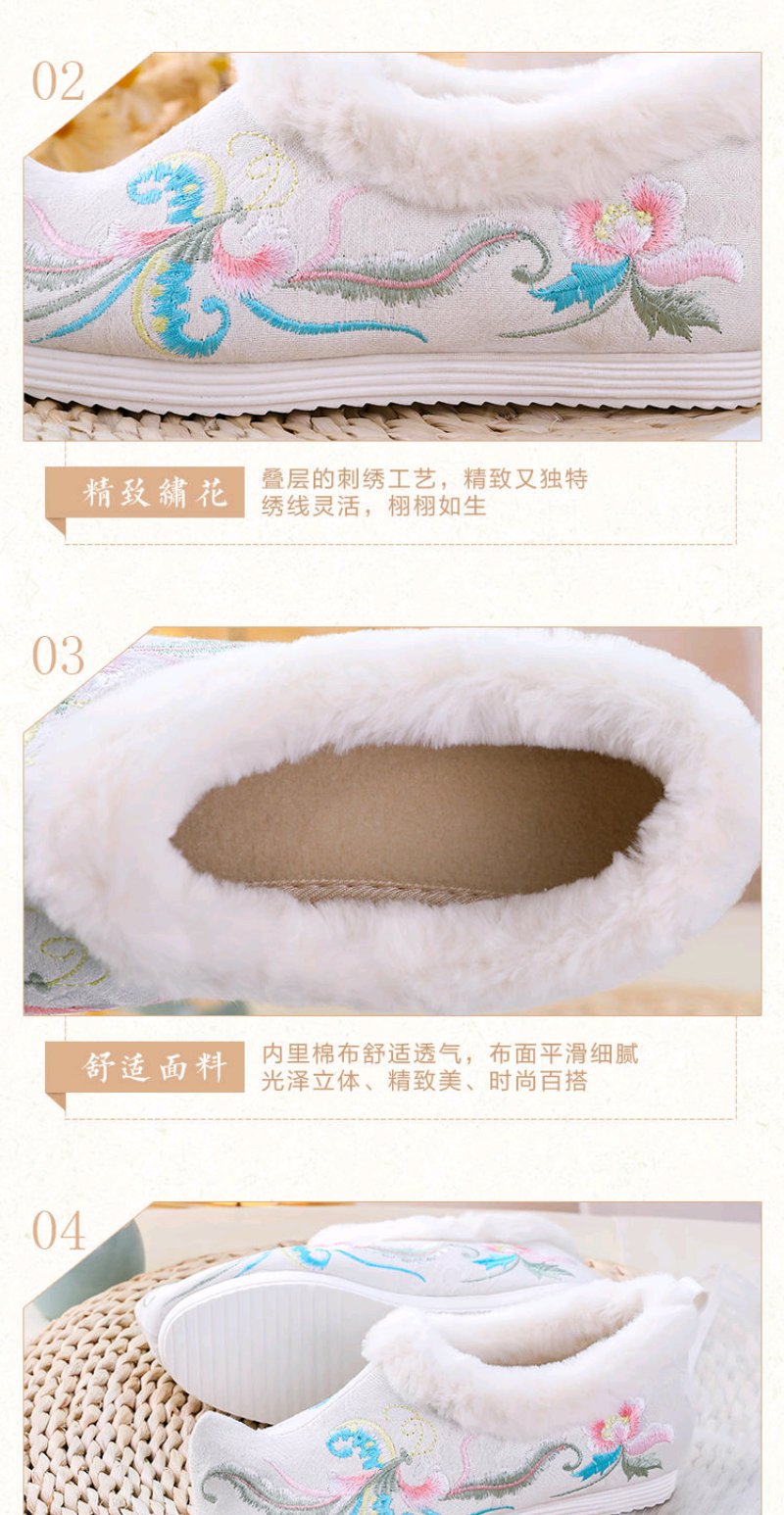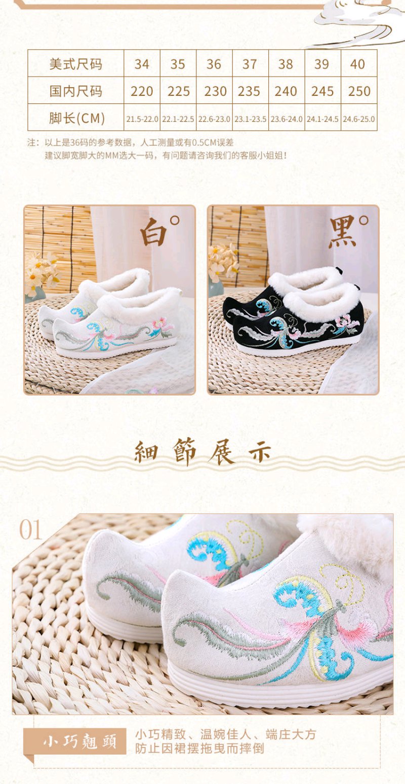 古风汉服鞋子女冬季加绒加厚内增高翘头汉鞋女学生保暖绣花鞋棉鞋