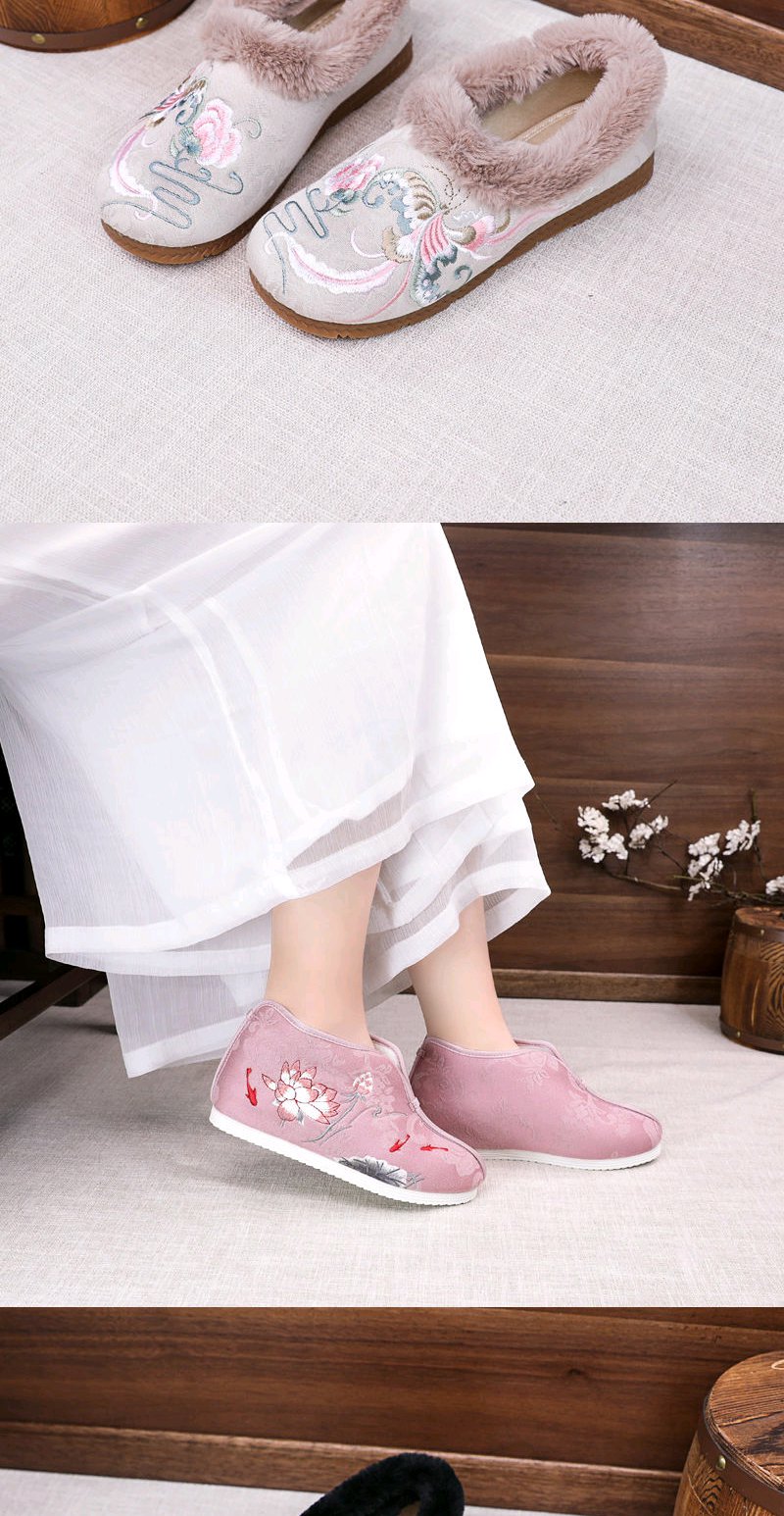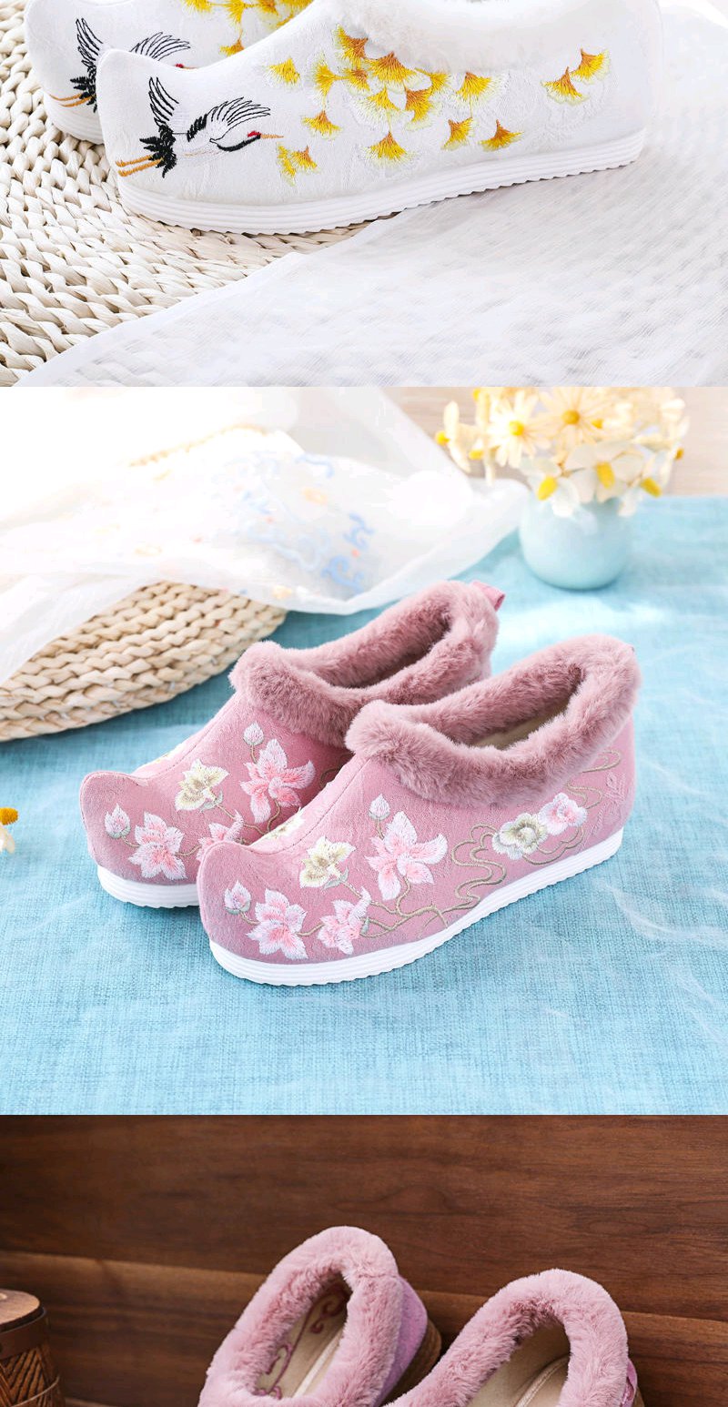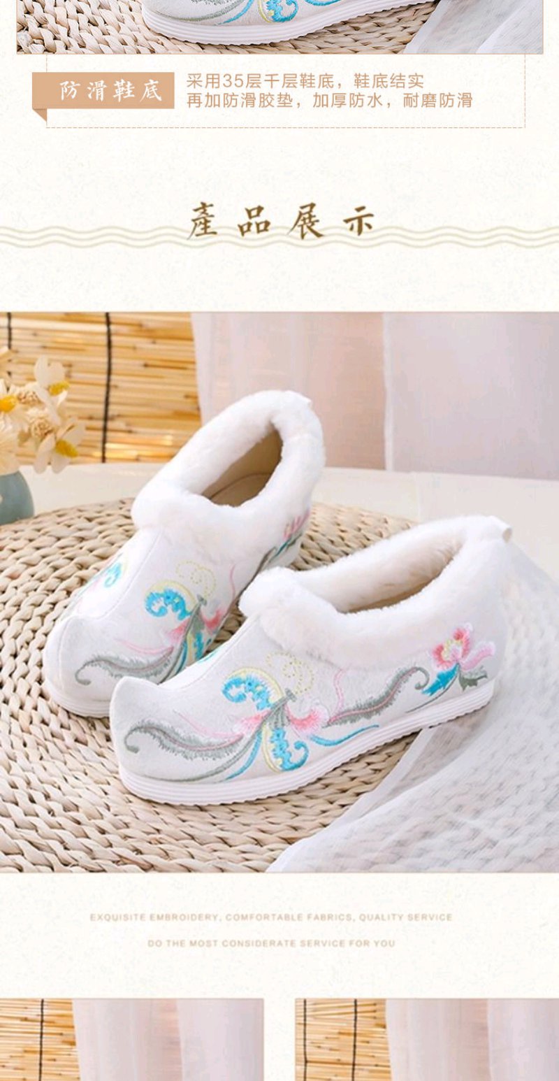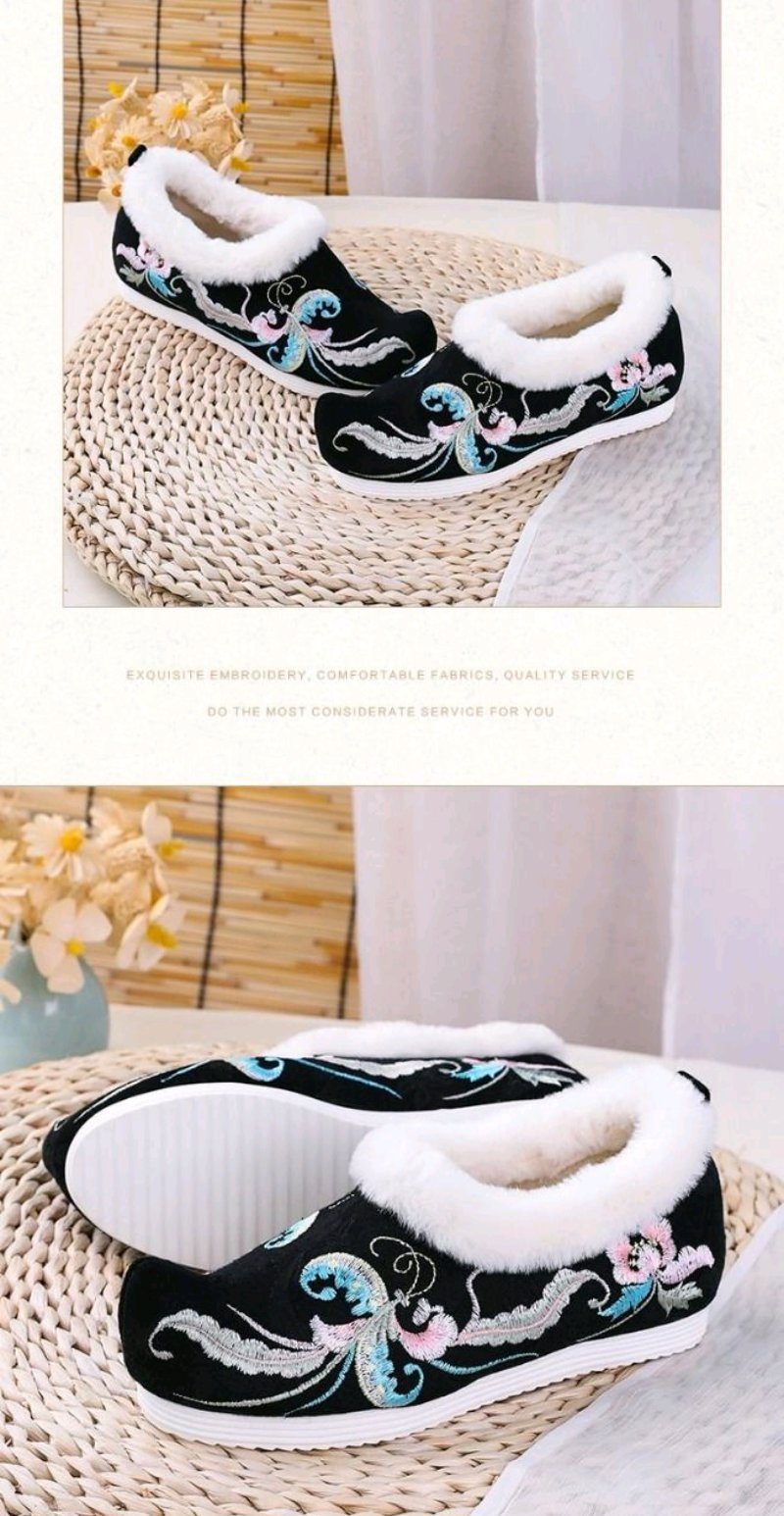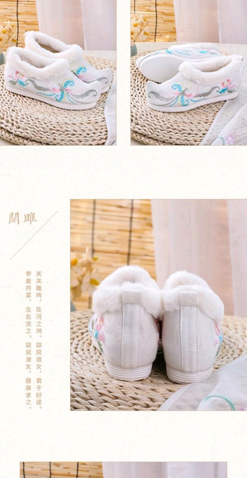 古风汉服鞋子女冬季加绒加厚内增高翘头汉鞋女学生保暖绣花鞋棉鞋
