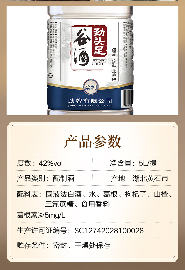 5L42度劲头足谷酒(原毛铺纯谷酒)