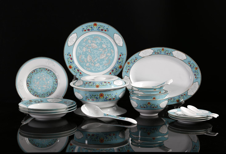 景德镇陶瓷 国瓷红叶 32头苏格兰调中餐具